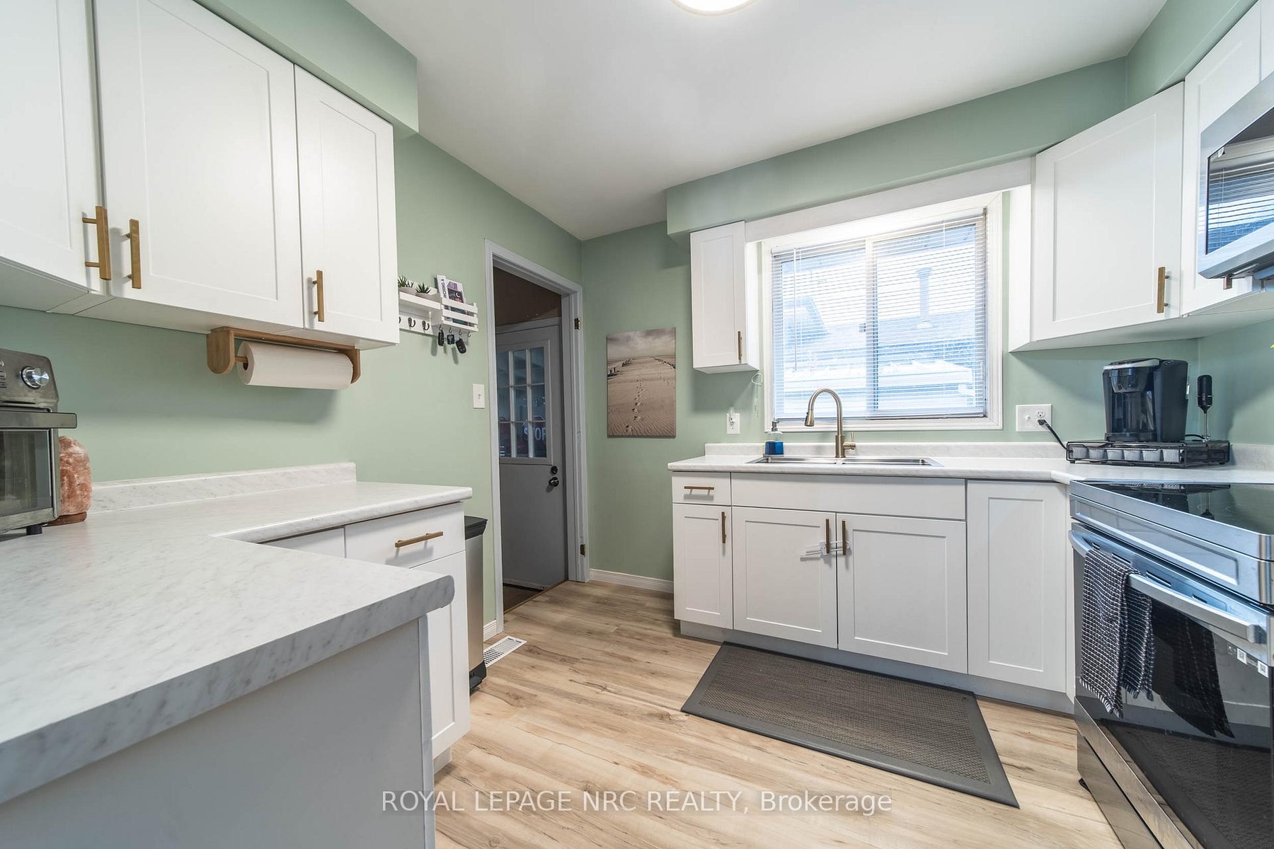 Updated 3-bedroom semi-detached back split in desirable North-End Niagar. This well-maintained home features an updated kitchen, newer vinyl flooring, and recent major improvements including the roof, furnace, and air conditioner.The lower level offers excellent in-law suite potential with a second kitchen, 3-piece bath, and spacious rec room that can easily accommodate a fourth bedroom.Additional basement level provides storage, utilities, and laundry. Add on 3 season room is ideal for additional living space. Fully fenced backyard. Close to shopping, schools, churches, parks, and all north-end conveniences.