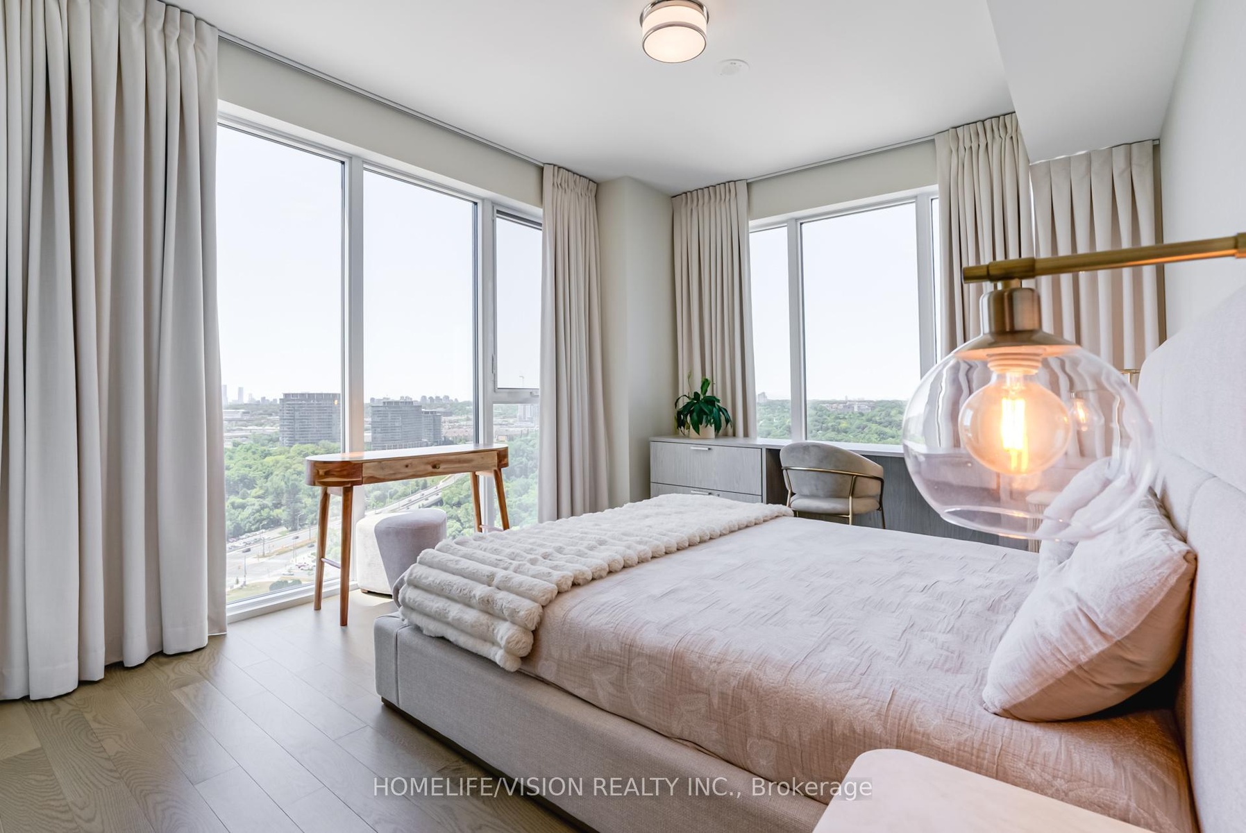 Location, Luxury, Lifestyle Welcome to Unit 1810 at 30 Inn On The Park, Toronto Experience elevated living in this beautifully appointed 3-bedroom, 2-bathroom residence located in one of Torontos most prestigious and sought- fter neighbourhoods. Unit 1810 offers the perfect combination of style, comfort, and breathtaking southwest facing views of the city skyline and Sunnybrook Park. This stunning suite features soaring ceilings, floor-to-ceiling windows, and modern, elegant finishes throughout. The gourmet kitchen is a chefs dream complete with high end appliances, sleek cabinetry, and generous counter space, ideal for both everyday living and entertaining. Custom-designed by a renowned interior designer, the suite showcases curated furniture pieces crafted specifically to enhance a luxury lifestyle. Every detail speaks to refined taste and contemporary design, from the artful upgrades to the seamless flow of the layout. The custom-built closets are both spacious and beautifully designed, offering ample storage while elevating the sense of sophistication. Wake up each morning in the sun-drenched primary bedroom with sweeping south-facing views of downtown Toronto. The spa-inspired bathrooms feature premium fixtures, deep soaking tubs, and frameless glass showers for a relaxing retreat at home. Residents enjoy a wide array of five-star amenities, including a 24-hour concierge, advanced security systems, an outdoor swimming pool, BBQ area, fully equipped fitness and theater rooms, party lounge, guest suites, and a children's play area. Ideally situated steps from Sunnybrook Park with its scenic trails and green spaces, and just minutes from premier shopping, dining, and cultural destinations, Unit 1810 offers an unparalleled opportunity to enjoy the very best of Toronto luxury living.