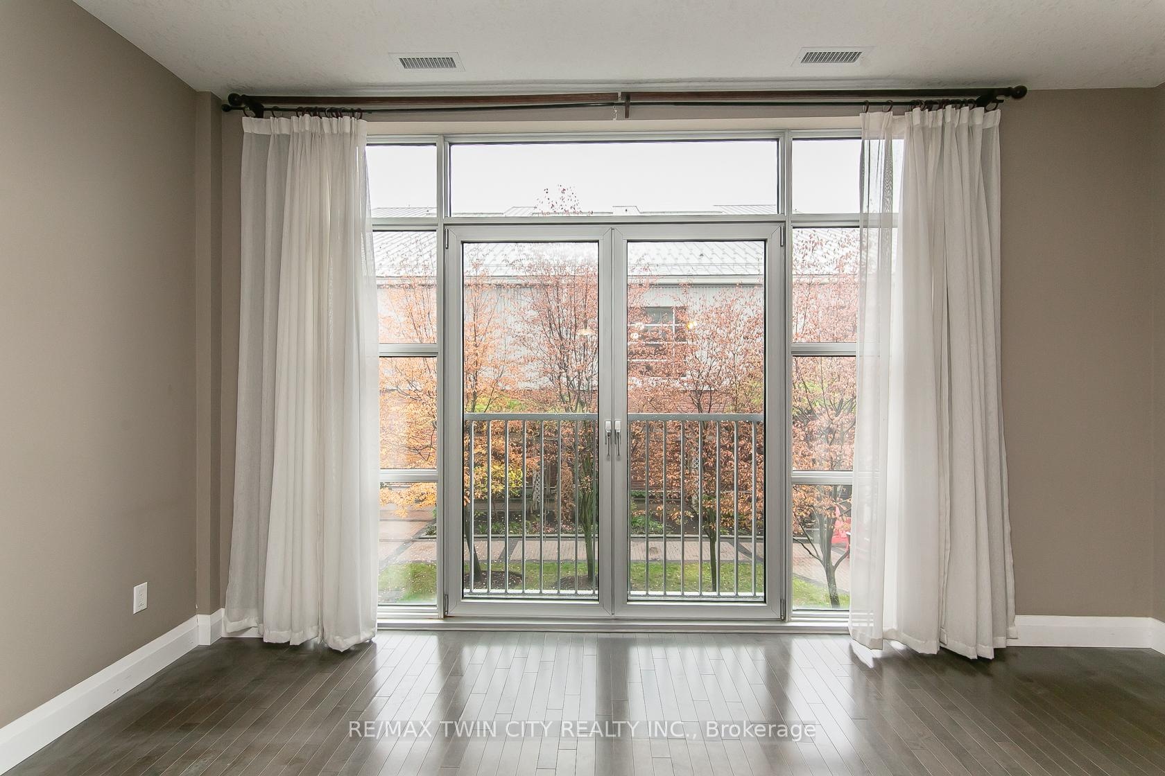 Step into this bright and spacious 1-bedroom, 1 4pc bathroom condo perfectly located in the vibrant core of downtown Kitchener. Enjoy open-concept living, large windows that fill the space with natural light, and a functional layout ideal for professionals or first-time buyers. Gleaming hardwood flooring in the living room and dining area and carpet in the large primary bedroom. The kitchen features maple cabinets with lots of storage and stone countertops. In-suite laundry with additional storage space and separate locker. Underground parking for one vehicle is also included with this property! Party room and courtyard with gardens for residents personal enjoyment! Just steps away from the Kitchener Market, trendy restaurants, cafes, shopping, and public transit, this condo offers the ultimate in convenience and urban lifestyle. Whether you're commuting, exploring local attractions, or relaxing at home, this is the perfect place to call your own.