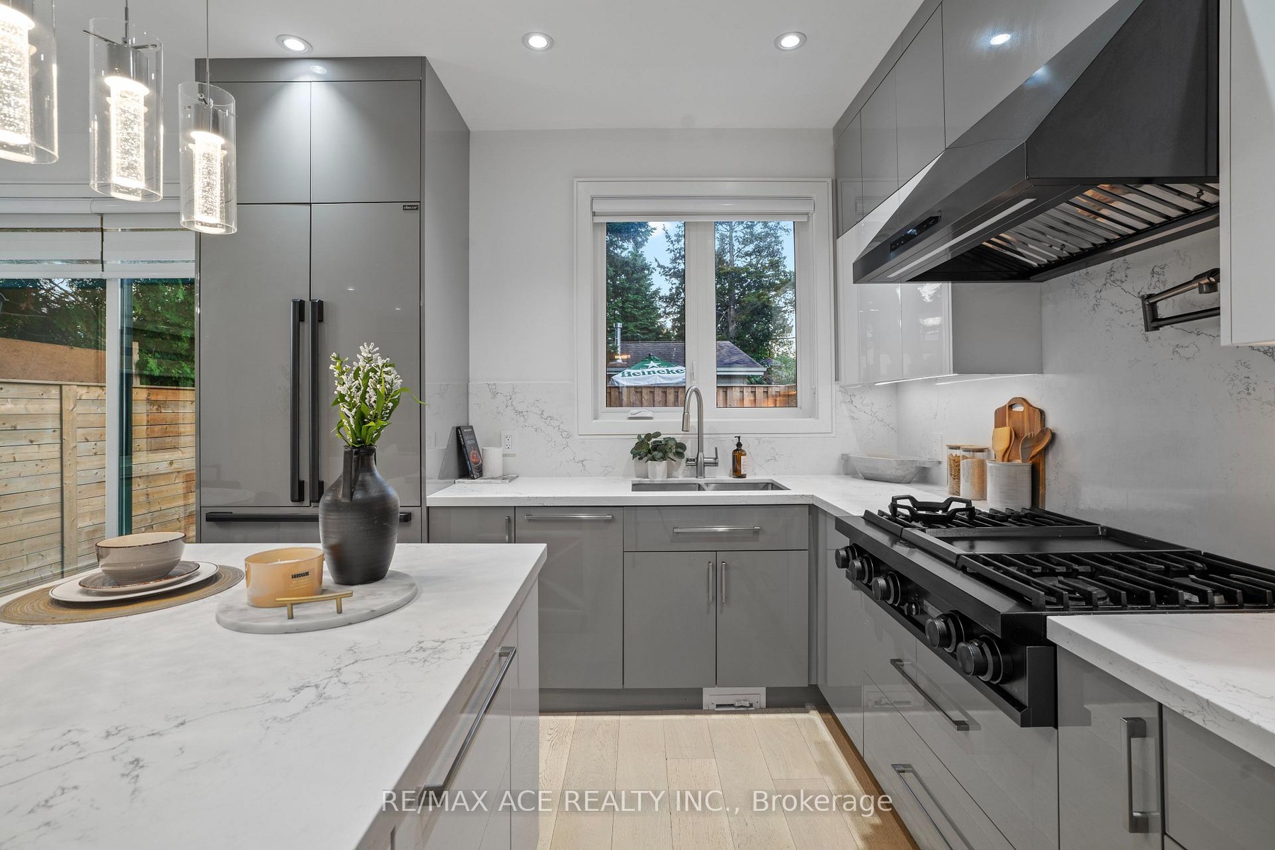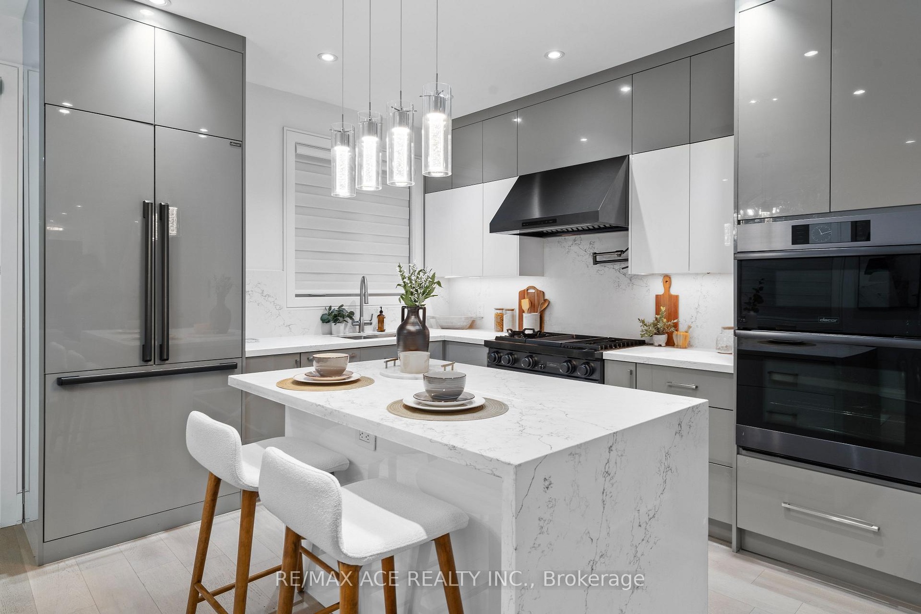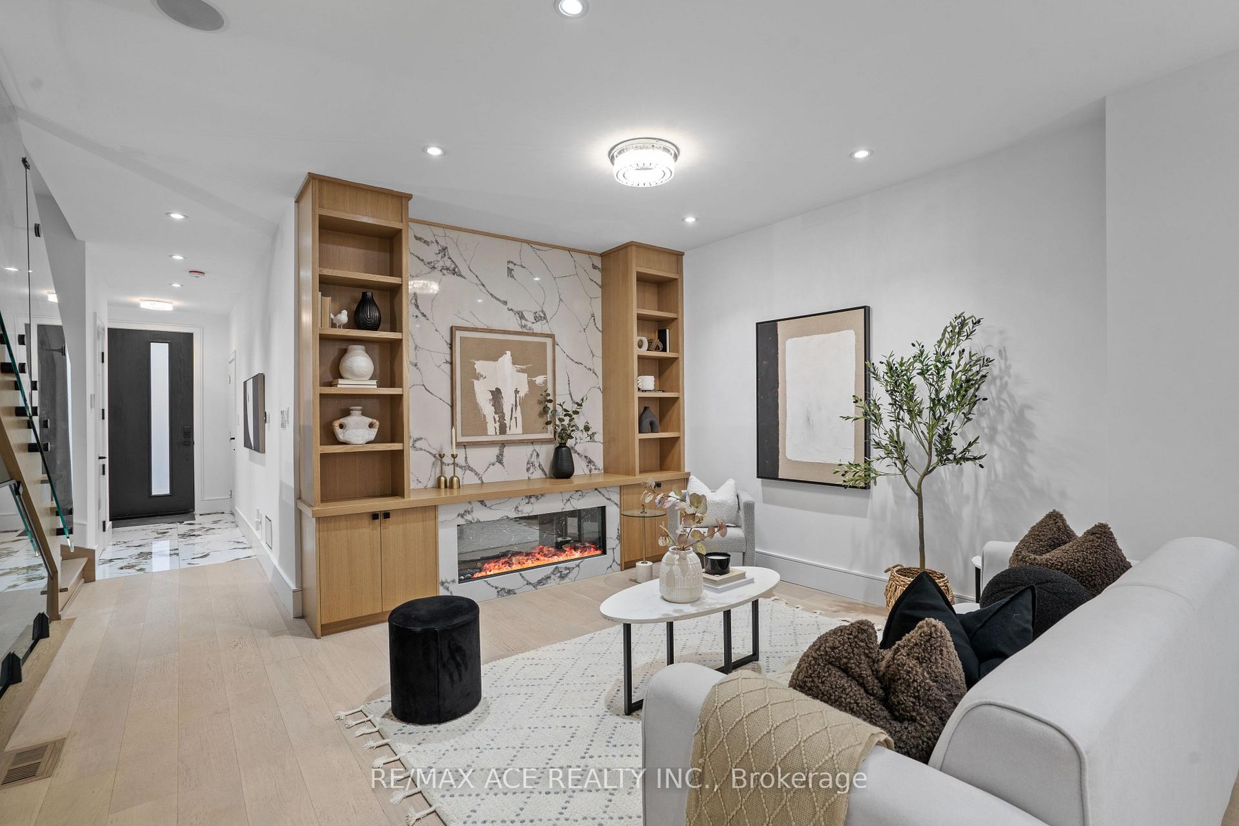 Experience refined living in this newly built family home just steps from Lake Ontario and vibrant Port Credit. Designed with convenience in mind, the residence features a custom-built elevator providing access from the basement to the third floor. Oversized windows and a skylight flood the home with natural light, highlighting the open-concept design. The chef-inspired kitchen is a true centerpiece, complete with a spacious island, premium Decor appliances, and seamless flow into a bright great room featuring custom built-in shelving and an elegant electric fireplace. The private fenced backyard offers the perfect setting for relaxing or entertaining. The primary suite is a retreat of its own with a walk-through closet, spa-like ensuite with heated floors, and a dream soaker tub. Each of the four bedrooms includes its own ensuite and generous closet space. A full-sized laundry room on the second floor adds convenience to everyday living. The fully finished basement provides flexibility with an additional bedroom or office, guest bathroom, bar, and a spacious recreation room with a separate entrance. Heated floors in the powder room and foyer, engineered hardwood throughout, and high-end European/Italian tiles elevate the homes sophisticated style. An EV charger is also included.