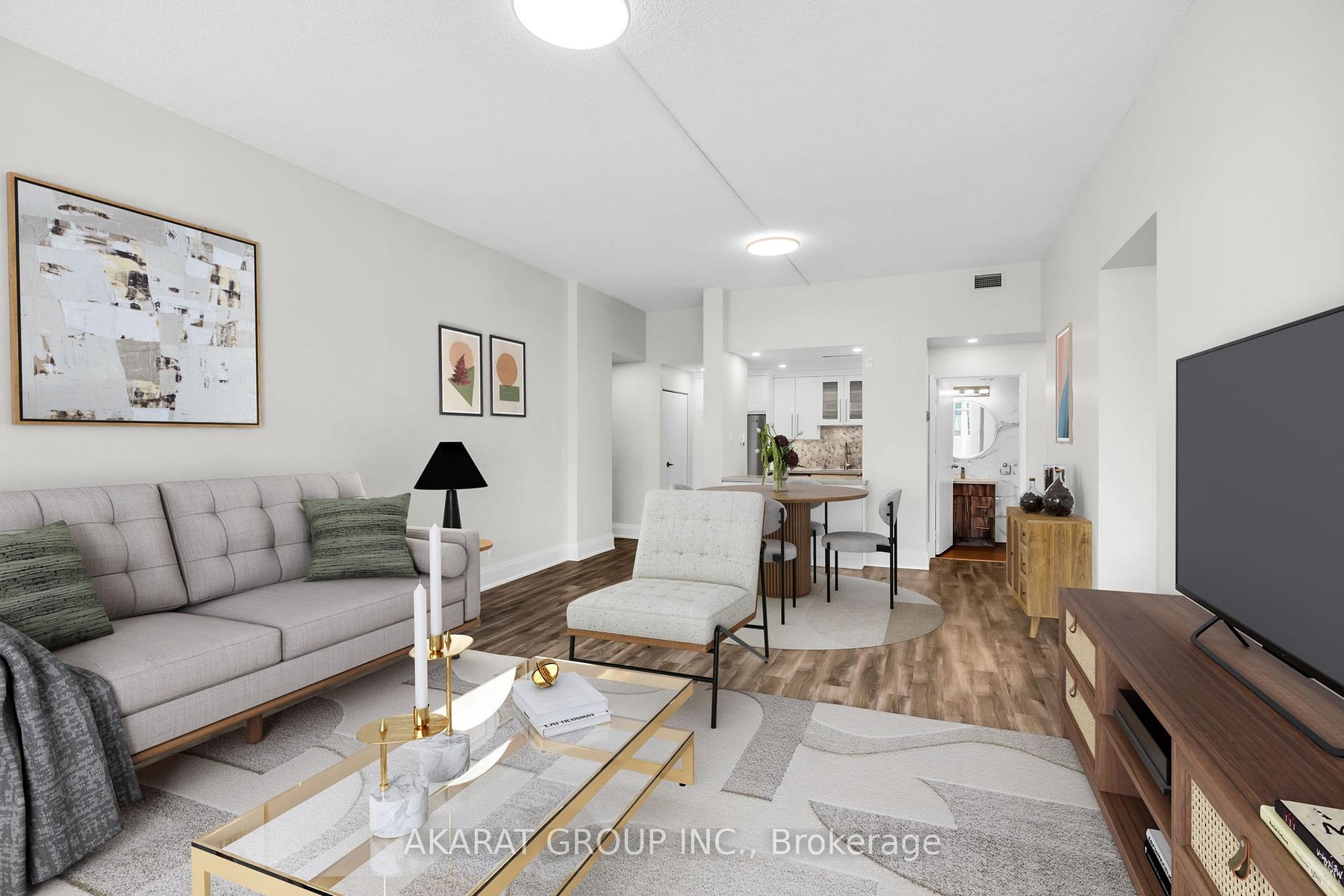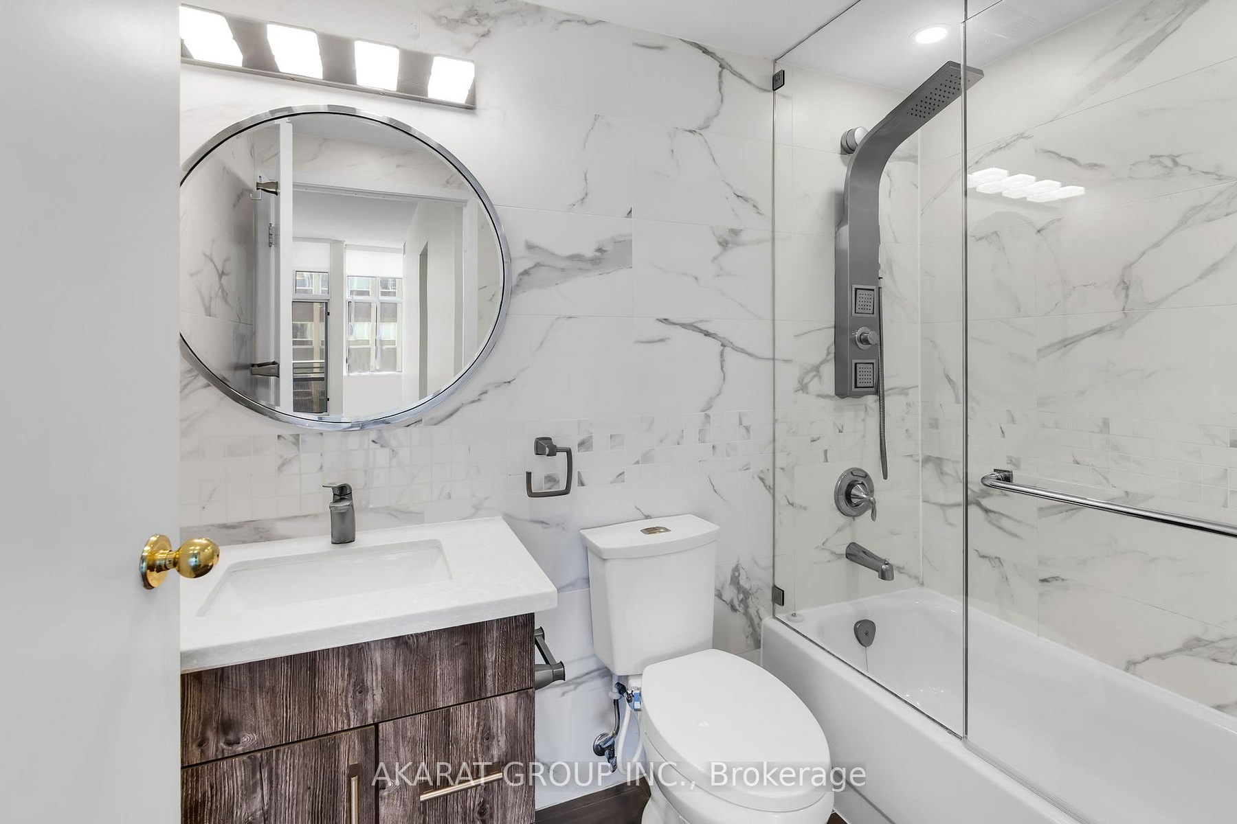 Spacious 1,265 sq ft, 3-bedroom, 2-bathroom condo available for lease in the heart of Midtown Toronto, steps from Davisville Subway Station. Bright, open-concept layout with 10-ft ceilings and modern finishes throughout. A large sitting area has been converted into a third bedroom with its own closet, offering flexibility for a home office or guest space.Updated kitchen with quartz countertops, stainless steel appliances, and sleek cabinetry. Both bathrooms feature stylish upgrades and high-end fixtures. The primary bedroom includes a custom built-in closet, while the living room opens onto a private balcony. Freshly painted, with LED lighting and pot lights throughout.Lease includes one parking space and one locker. Building amenities feature a gym, rooftop terrace with city views, and visitor parking. Professionally managed building with a strong community atmosphere.Prime location in Davisville Village, minutes from shops, cafes, restaurants, parks, and the Beltline Trail. Close to Yonge & Eglinton Centre and within the North Toronto Collegiate school district.Some photos virtually staged.