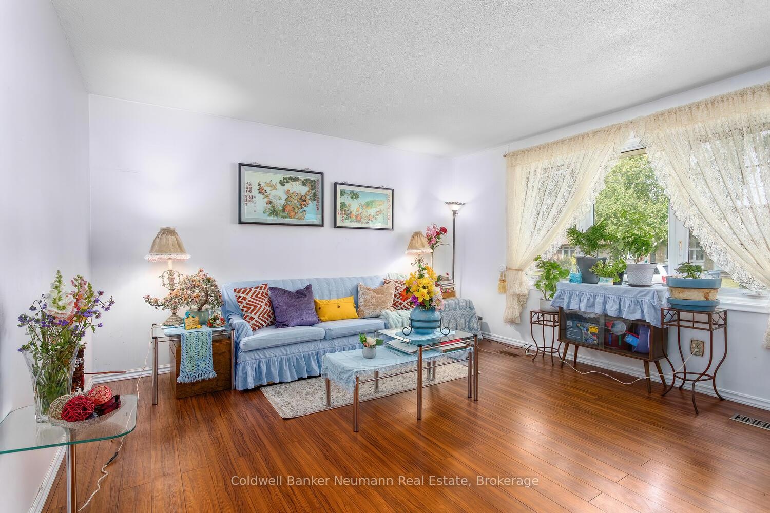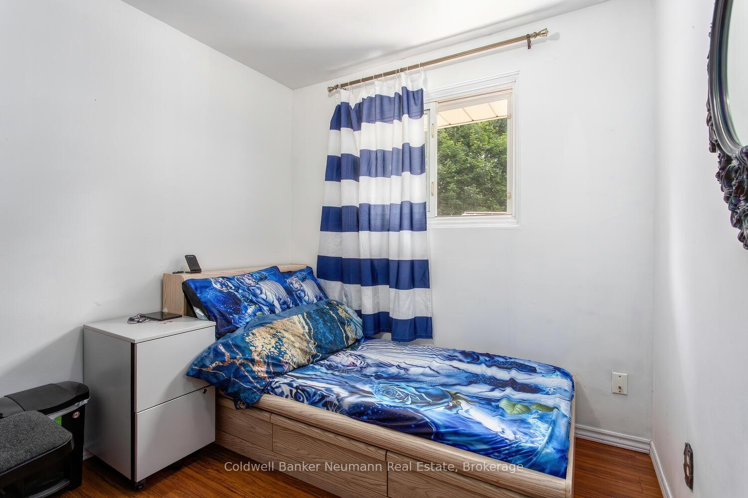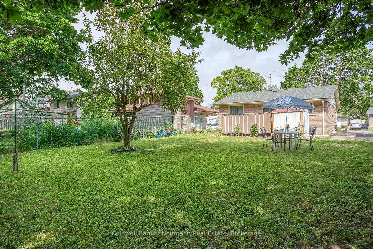 Welcome Home to This Charming 3-Bedroom Bungalow on a Quiet, Family-Friendly Street! Step into comfort and character with this delightful bungalow, perfectly nestled on a peaceful, tree-lined street ideal for families or anyone seeking tranquility and convenience. The main floor boasts three generously sized bedrooms, each filled with natural light streaming through newer windows installed throughout the home. Enjoy low-maintenance living with attractive laminate flooring (installed just five years ago) and durable vinyl, creating a bright and welcoming atmosphere from the moment you enter. Downstairs, the fully finished basement offers incredible additional living space. A fourth bedroom, a spacious family room, and a built-in bar provide the perfect setup for entertaining friends or hosting cozy movie nights. The large laundry/furnace room offers both functionality and extra storage, something this home has in abundance on every level. Recently updated in June 2025, the main 4-piece bathroom features new tile flooring, a modern vanity, and a brand-new toilet, adding fresh style and comfort to your daily routine. This home has been meticulously maintained, with numerous big-ticket updates for peace of mind, including: New roof shingles (2018) Brand-new furnace and central air conditioning (2025) New tankless water heater (2025) Culligan water softener system (2023).Step outside into your private, deep backyard oasis. Lush and green with mature trees, including your very own pear tree that promises delicious seasonal fruit.This space is perfect for relaxation or weekend BBQs with friends and family. Whether you're a first-time homebuyer, downsizer, or investor, this property offers unbeatable value, comfort, and location. Conveniently located near parks, public transit, Guelph Lake and beach, and just a short drive to a shopping plaza featuring Walmart, Home Depot, banks, and more.
