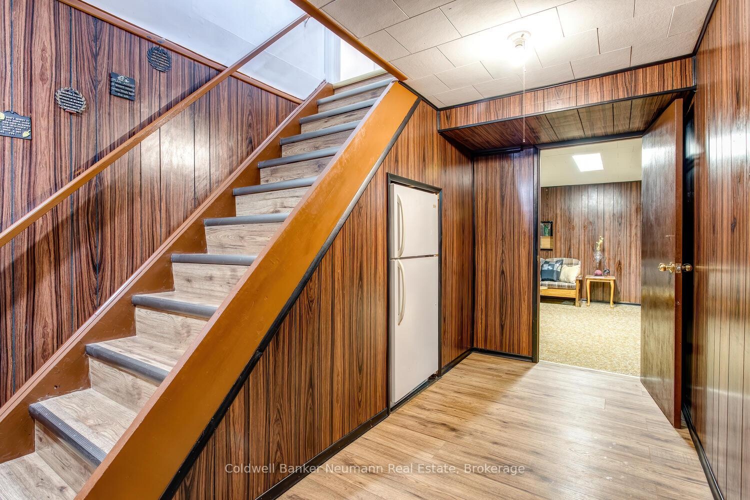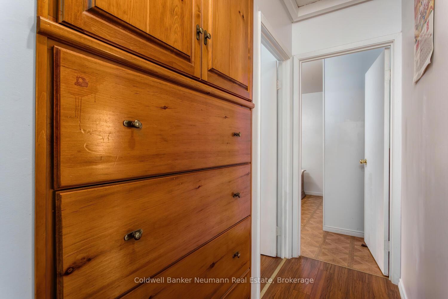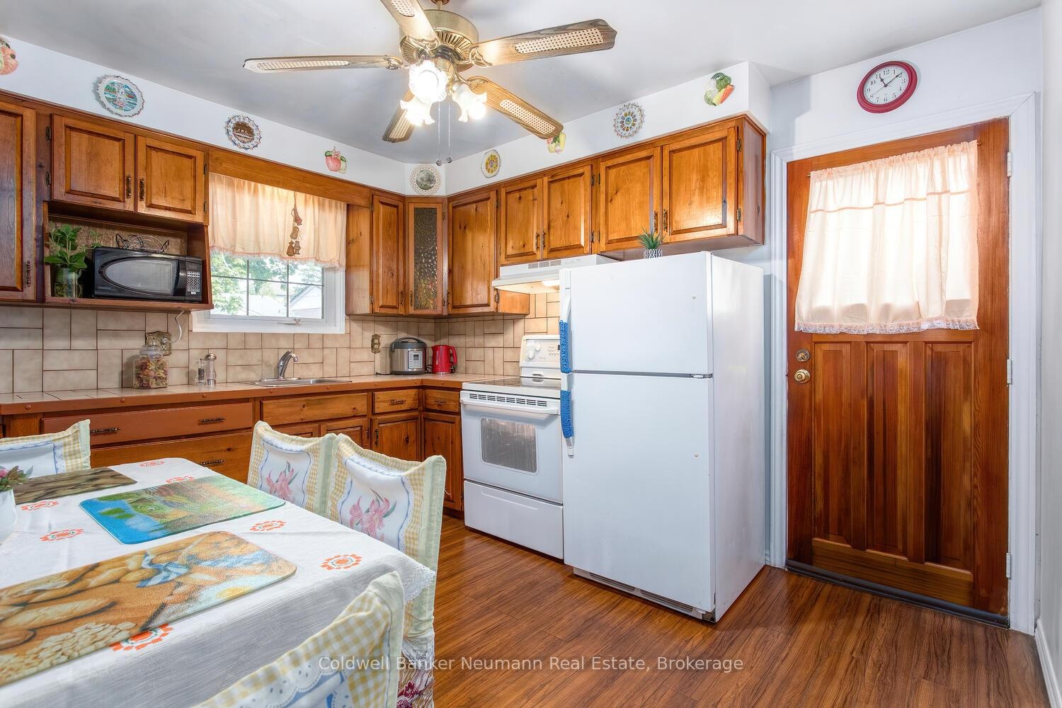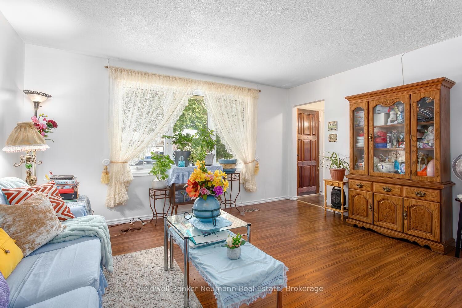 Welcome Home to This Charming 3-Bedroom Bungalow on a Quiet, Family-Friendly Street! Step into comfort and character with this delightful bungalow, perfectly nestled on a peaceful, tree-lined street ideal for families or anyone seeking tranquility and convenience. The main floor boasts three generously sized bedrooms, each filled with natural light streaming through newer windows installed throughout the home. Enjoy low-maintenance living with attractive laminate flooring (installed just five years ago) and durable vinyl, creating a bright and welcoming atmosphere from the moment you enter. Downstairs, the fully finished basement offers incredible additional living space. A fourth bedroom, a spacious family room, and a built-in bar provide the perfect setup for entertaining friends or hosting cozy movie nights. The large laundry/furnace room offers both functionality and extra storage, something this home has in abundance on every level. Recently updated in June 2025, the main 4-piece bathroom features new tile flooring, a modern vanity, and a brand-new toilet, adding fresh style and comfort to your daily routine. This home has been meticulously maintained, with numerous big-ticket updates for peace of mind, including: New roof shingles (2018) Brand-new furnace and central air conditioning (2025) New tankless water heater (2025) Culligan water softener system (2023).Step outside into your private, deep backyard oasis. Lush and green with mature trees, including your very own pear tree that promises delicious seasonal fruit.This space is perfect for relaxation or weekend BBQs with friends and family. Whether you're a first-time homebuyer, downsizer, or investor, this property offers unbeatable value, comfort, and location. Conveniently located near parks, public transit, Guelph Lake and beach, and just a short drive to a shopping plaza featuring Walmart, Home Depot, banks, and more.