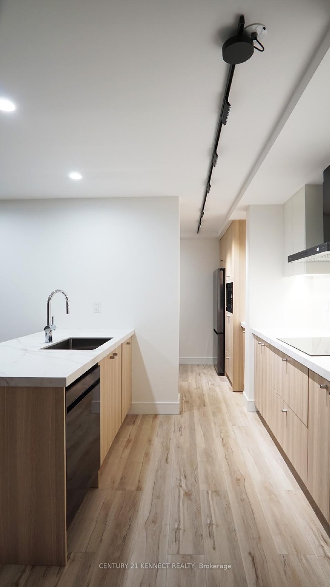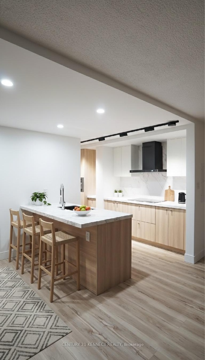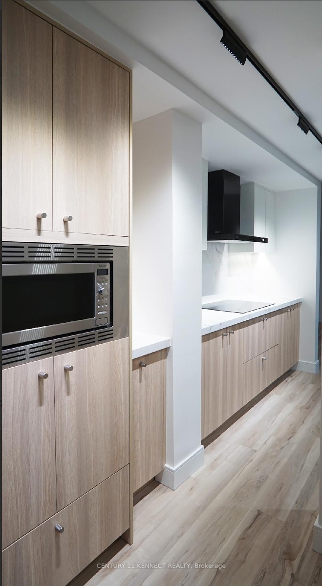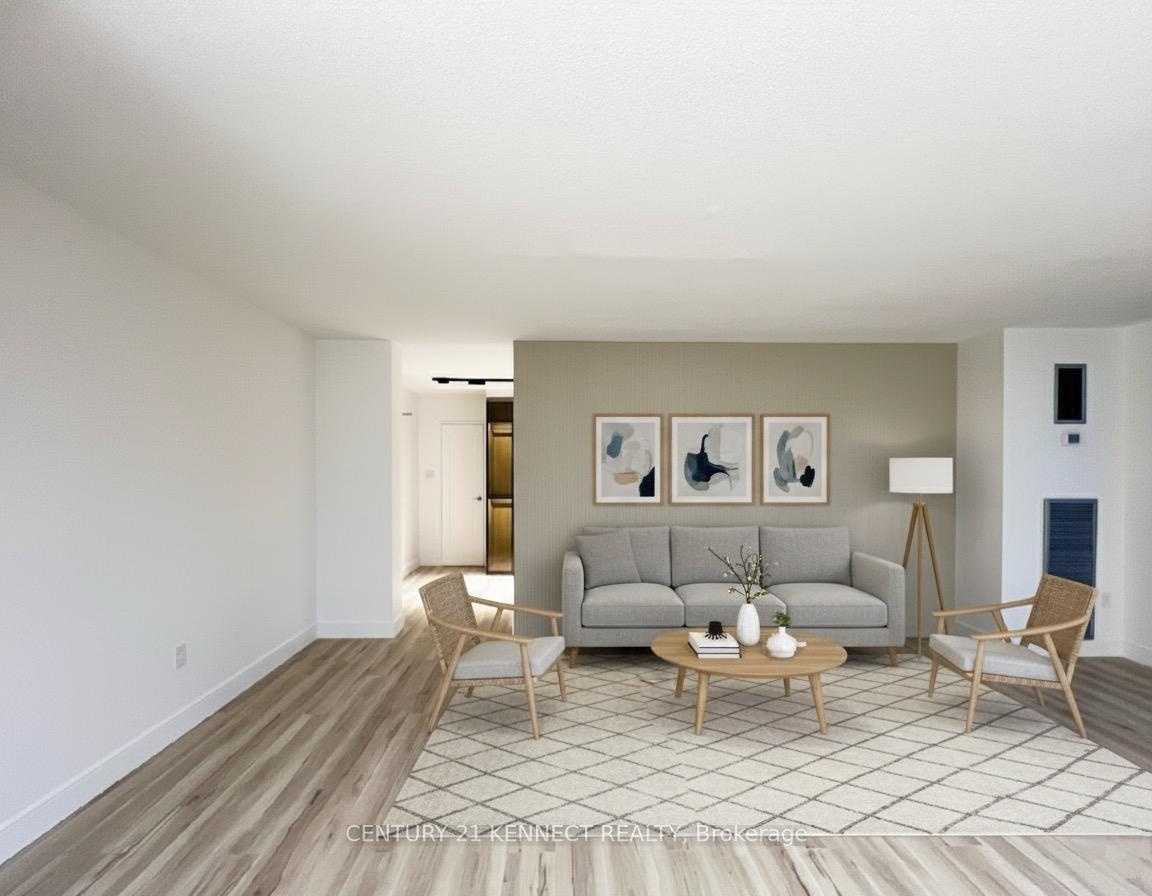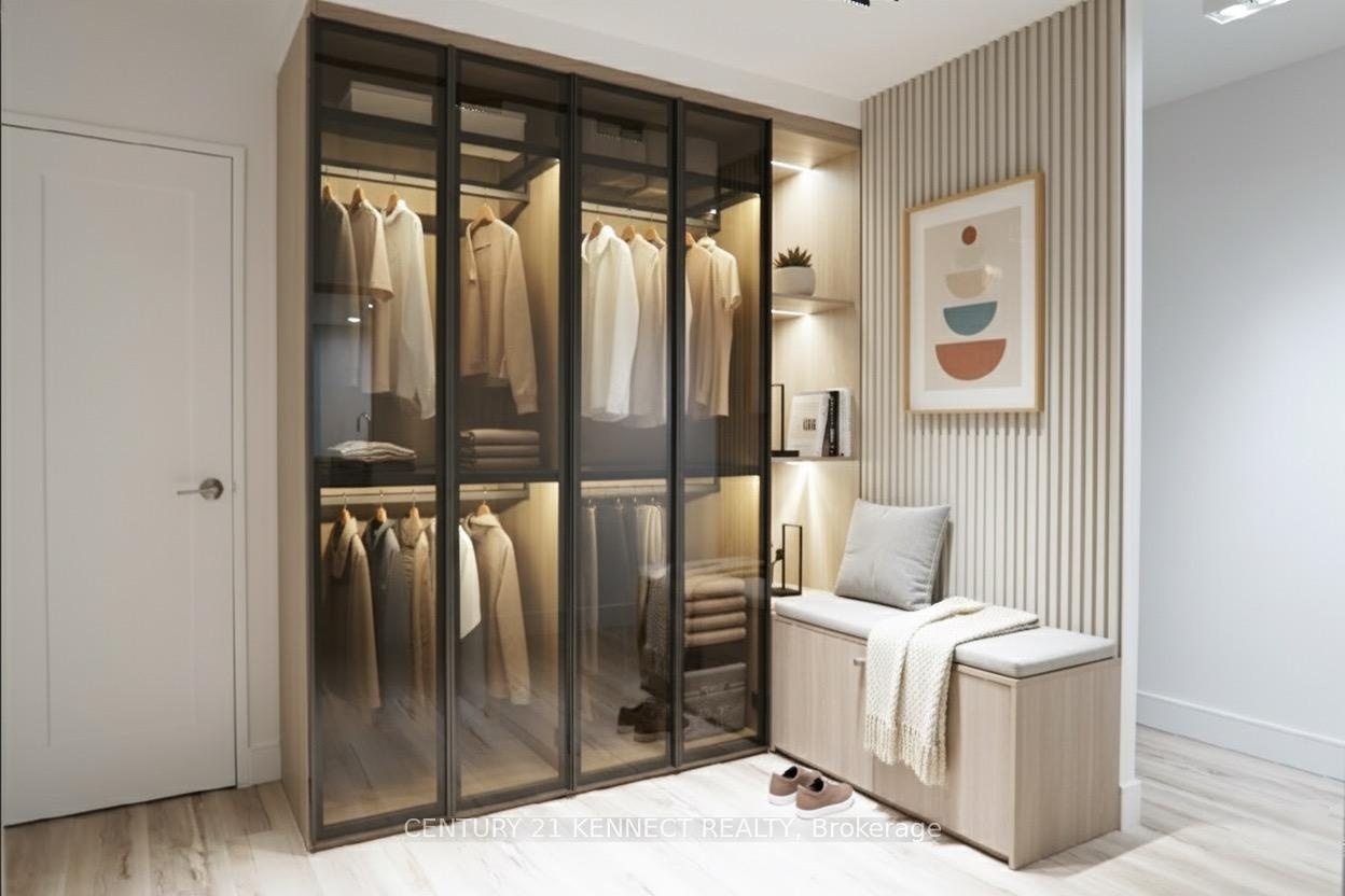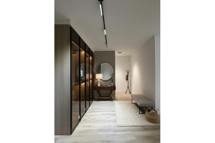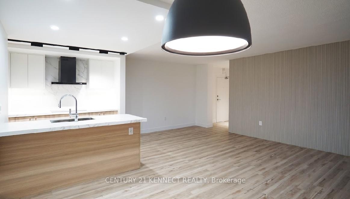 Breathtaking top-to-bottom designer reno in the heart of Mississauga! This stunning open-concept 3 Bed + Den, 2 Bath unit is a true turn-key home. The star is the brand-new custom kitchen, featuring sleek flat-panel cabinets, quartz counters, a matching backsplash, and a statement waterfall island. It's finished with new S/S appliances, pot lights, and modern track lighting. High-quality, wide-plank vinyl flooring flows seamlessly throughout, complemented by smooth ceilings and new baseboards. Storage is a highlight, with a custom smoked-glass wardrobe and a chic fluted wood accent wall. All-Inclusive Maintenance Fees! This is a rare find-your monthly fee covers Heat, Hydro, Water, Cable TV, AND WiFi. Budgeting has never been easier. Amenities include an outdoor pool, gym, and sauna. Perfectly located just a short walk from the GO Station and public transit. This is an incredible opportunity for a first-time buyer or investor. Don't miss out!