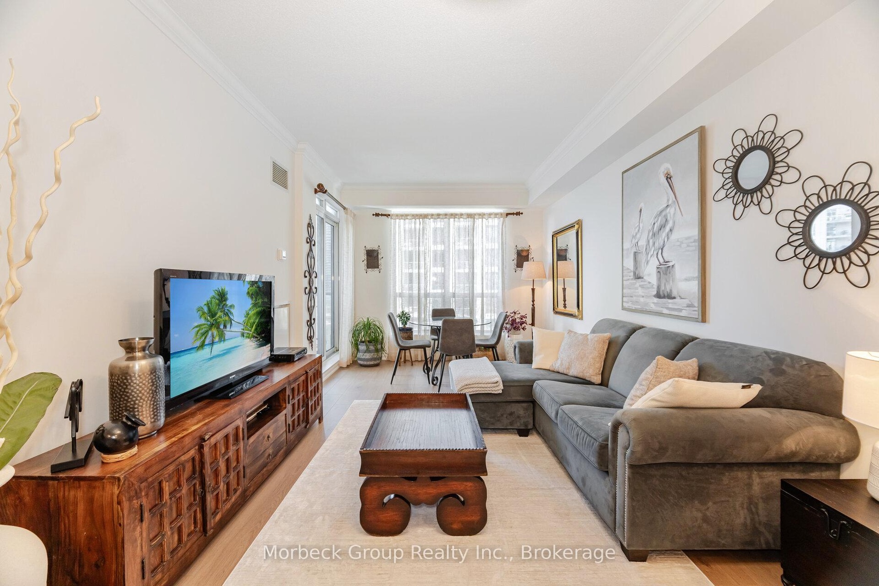 This Sophisticated One Bedroom + Den In Waterford Towers Offers Breathtaking Lake Ontario Views From Your Private Balcony. The Open-Concept Layout Features A Gourmet Kitchen With Granite Counters, Stainless Appliances & Slate Flooring, Flowing Seamlessly To Living Areas With Laminate Flooring And Crown Moldings. The Spa-Like 4-Pc Bath Boasts Stone Flooring And Pot Lights, While The Bedroom Includes California Shutters, W/O To Balcony & Closet Organizer. Building Amenities Like A Rooftop Party Room With Panoramic Views, Indoor Pool, Gym & Much More. Includes 1 Parking + Locker, With Unbeatable Access To TTC, Gardiner/QEW , And Trendy Waterfront Dining. Luxury Living In One Of Toronto's Most Desirable Lakefront Communities.