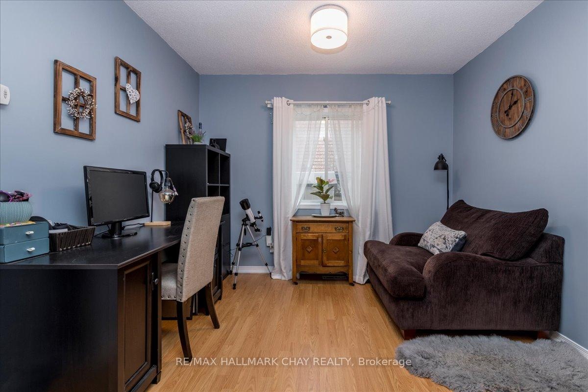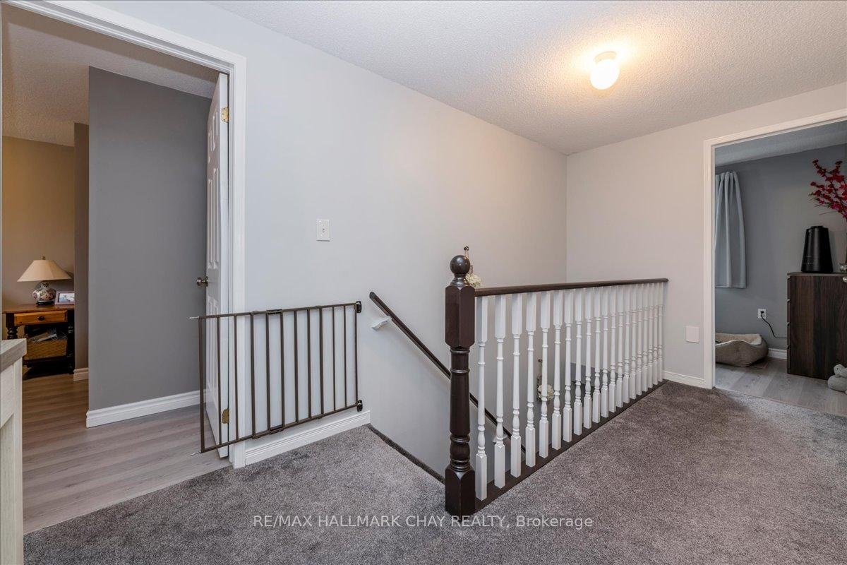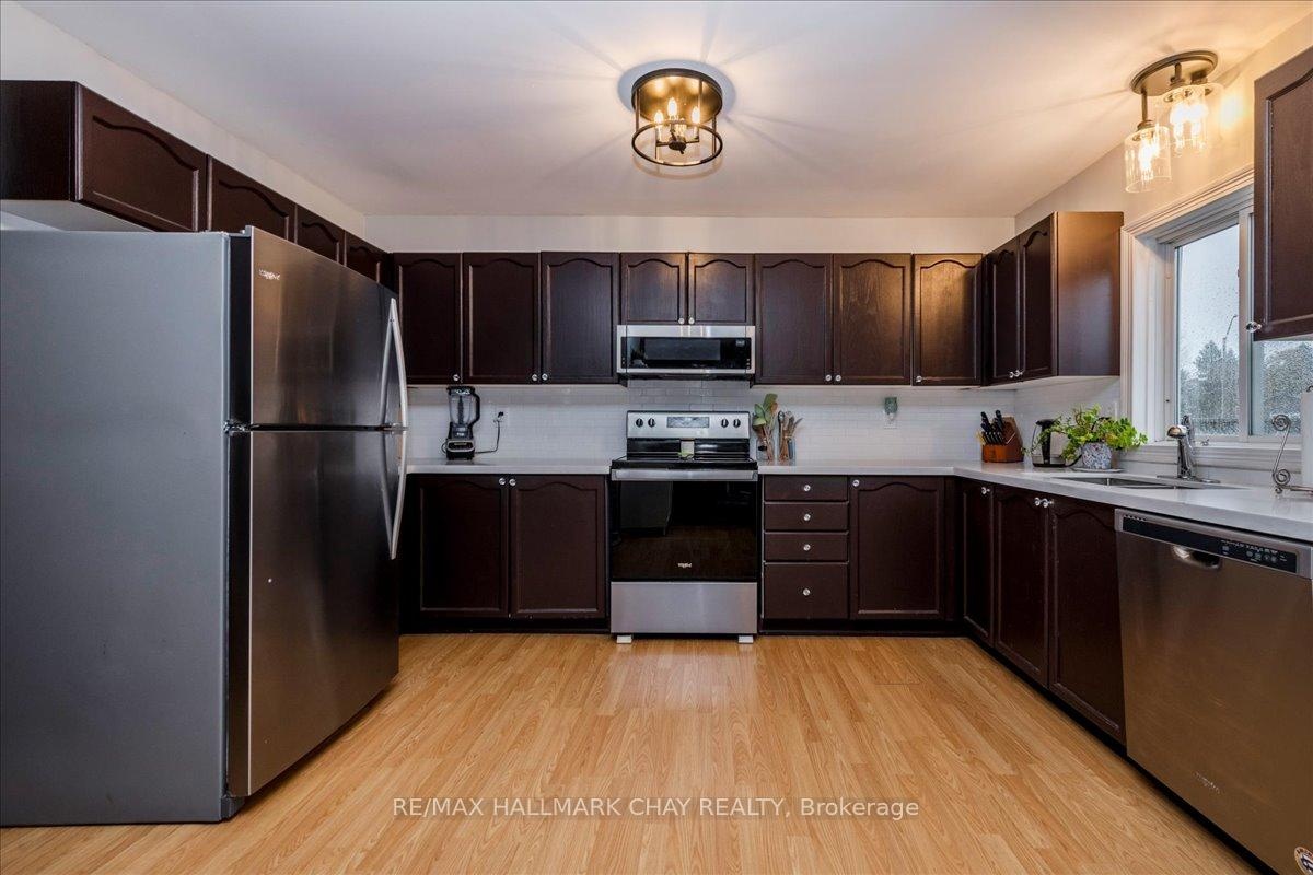 Great Layout & Prime Location! Beautiful 4 Bedroom, 3 Bathroom Family Home in Barrie's highly desirable South End. This well-maintained property offers a functional layout and stylish upgrades throughout. Step into the inviting living room featuring a modern feature wall. The fully equipped eat-in kitchen boasts quartz countertops, a timeless backsplash, stainless steel appliances, and a walkout to the 2-tiered back deck. A spacious formal dining room offers a cozy fireplace, an additional walkout, and an open-concept flow to both the kitchen and living room-perfect for gatherings. The main floor also includes a convenient den/home office and a powder room. Upstairs, the secluded primary suite features a full ensuite bath and walk-in closet. Three generous secondary bedrooms share a beautifully updated main bathroom. The mostly finished lower level offers an expansive family/recreation room with a second fireplace, plus a versatile bonus room ideal for a guest room, playroom, or home gym. KEY UPDATES: Air conditioner, front windows, central vac, 2 bathroom vanities, lighting, insulated garage door with opener, paved driveway, upper-level flooring, basement flooring, 2-tiered deck, heated garage. Located on a quiet, low-traffic street close to excellent schools, parks, a rec centre, shopping, and minutes to Highway 400 & 27. Your home sweet home awaits!