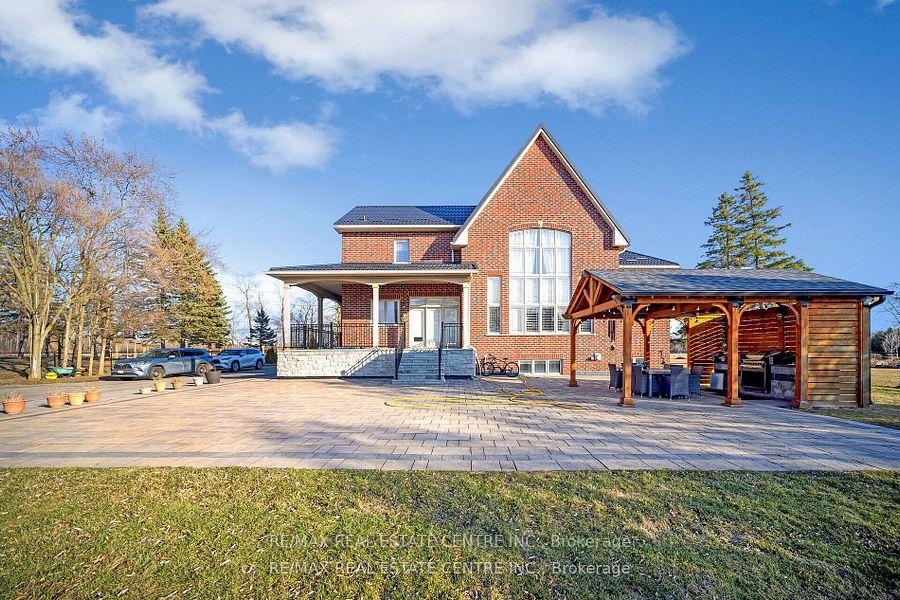 Your Search Ends Here .This Custom Built Beauty Is Situated On 3 Sprawling Acres In Georgetown South Just Minutes From 401/407 Hwy. Over 5000 Square Feet Of Finished Space Above Grade on a Premium Lot with 134.58 Feet Front & 976 Ft Depth , This Elegantly Appointed Home Has Soaring Ceilings, Open Concept Living Areas, A Master Retreat With His& Hers Ensuites, Walk-Ins And Built-Ins, Ensuites In All Bedrooms, A Main Floor has Separate Living Room , Dining and Open Concept Living Area , Hickory Hardwood & California Shutters Throughout! All Bathroom Floors are Heated. 9Ft Celling On 2nd Floor & Basement .3 Garage Areas .Recent Upgrades are done Permanent Roof (2022) 100k Spent on it. Backyard Gazebo 2021 , Interlocking done in 2019. It Has Finished Basement with Separate Entrance From Garage With 1 Bed & 1 Bath with Huge Living room , Dining Room and Kitchen with a Lot of windows