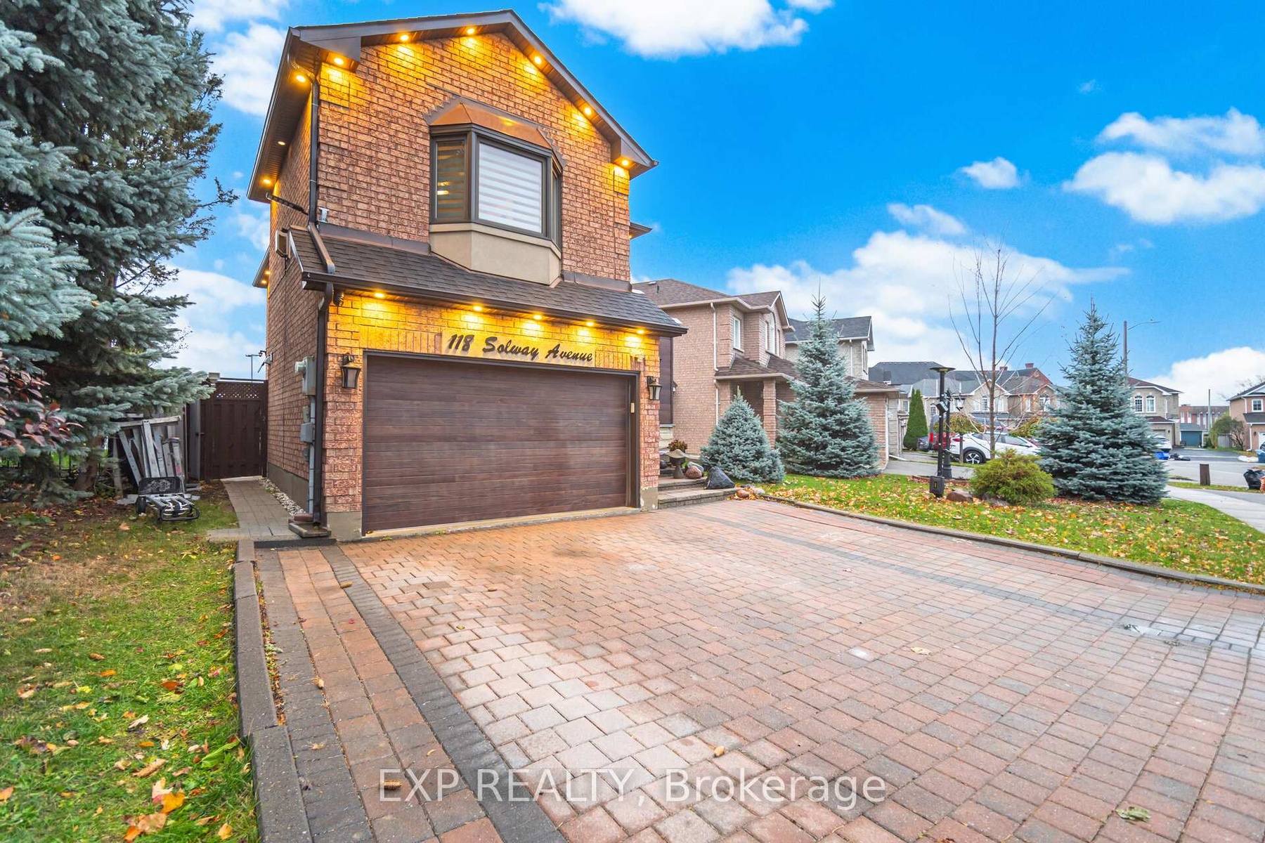 Welcome to 118 Solway Ave in Vaughan. This beautifully renovated detached brick home features a large pattern interlock driveway with 3 parking spaces and 1 garage parking. Custom designs throughout, starting at the front entrance, with a floor-to-ceiling glass door enclosure and modern front doors. Main floor boasts pot lights, barn-style doors, built-in speakers and accent walls. The large eat-in kitchen features stainless steel appliances, gas stove, granite countertops, an oversized island and plenty of storage. Walk out from the kitchen to the stunningly designed backyard with pergolas, a hot tub and a built-in BBQ area, perfect for entertaining. Second-level family room, stone wall gas fireplace, custom built-in closet. Primary bedroom 3-piece ensuite and double closets. Basement with a separate entrance, electric fireplace, a kitchen, 2 bedrooms, 3 pc bath, separate laundry and extra storage. Fantastic location in Maple - Vaughan near community centres, Maple Nature Reserve, Maple Regional Park, Cortellucci Vaughan Hospital, Canada's Wonderland, Vaughan Mills Shopping and All amenities. Access to public transit and highways.