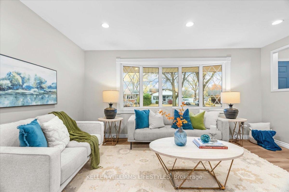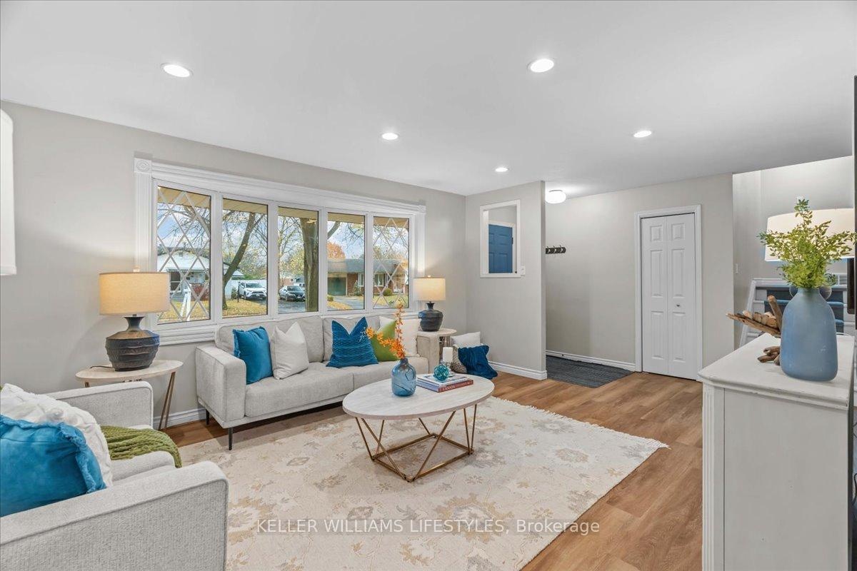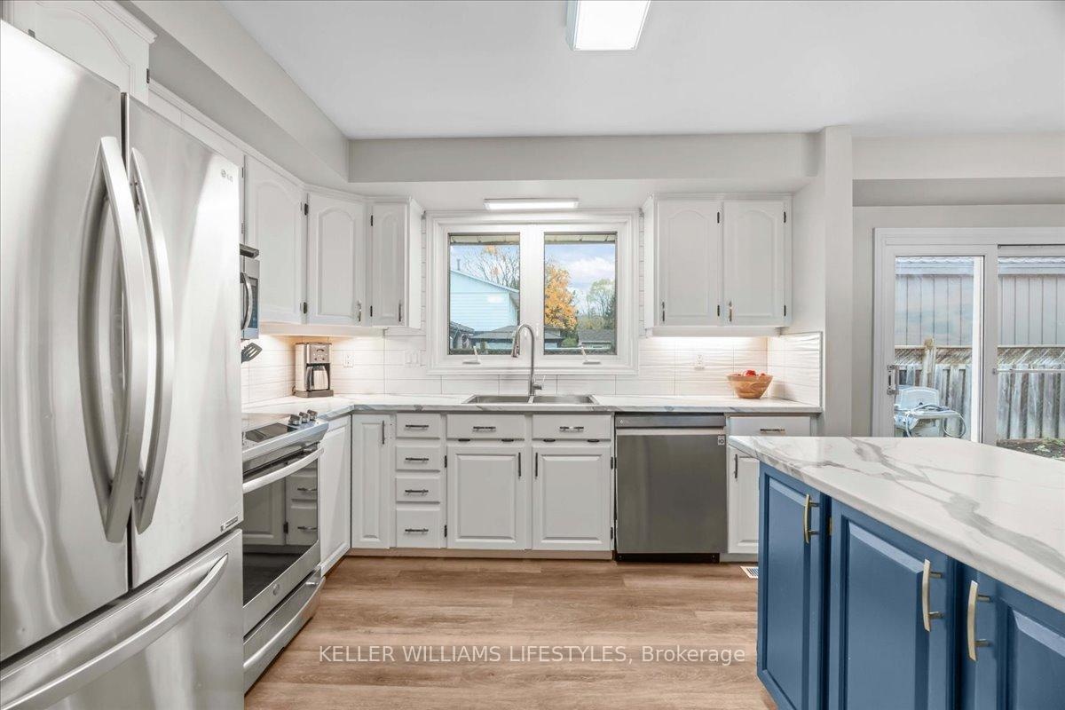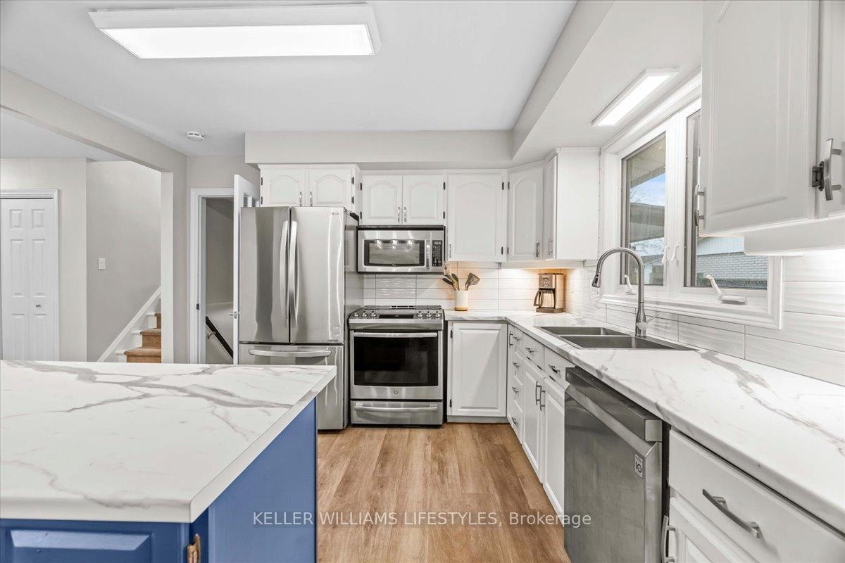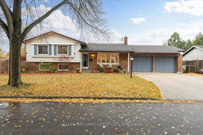 Opportunities like this don't come often. This stunning four-level side split has been beautifully updated and delivers everything, from an open-concept layout filled with natural light to a private backyard retreat designed for entertaining. The heart of the home is the updated kitchen with solid oak cabinetry, modern finishes, and a movable island, while patio doors connect seamlessly to stamped concrete patios and a fully fenced yard. Upstairs, three spacious bedrooms and a sleek four-piece bath provide comfort and style, while the lower levels offer incredible versatility with a second living room, walkout access, a two-piece bath, and a generous primary suite with plenty of storage. An additional level adds even more space for a home office, or playroom, the options are endless. What truly sets this property apart is the rare drive-through double-car garage with a triple-wide driveway, giving you unmatched parking and storage options in this neighbourhood. With fresh lighting, new paint, and thoughtful updates throughout, this charming home sits proudly on a beautifully landscaped corner lot with a relaxing on the covered front porch. Perfectly positioned near schools, shopping, and quick highway access, this home is your chance to secure a move-in ready gem!