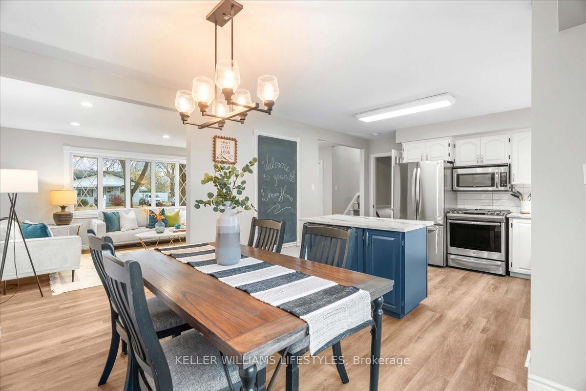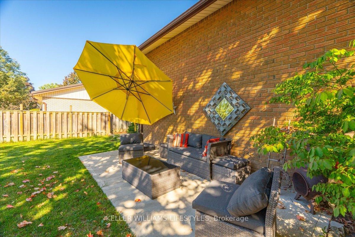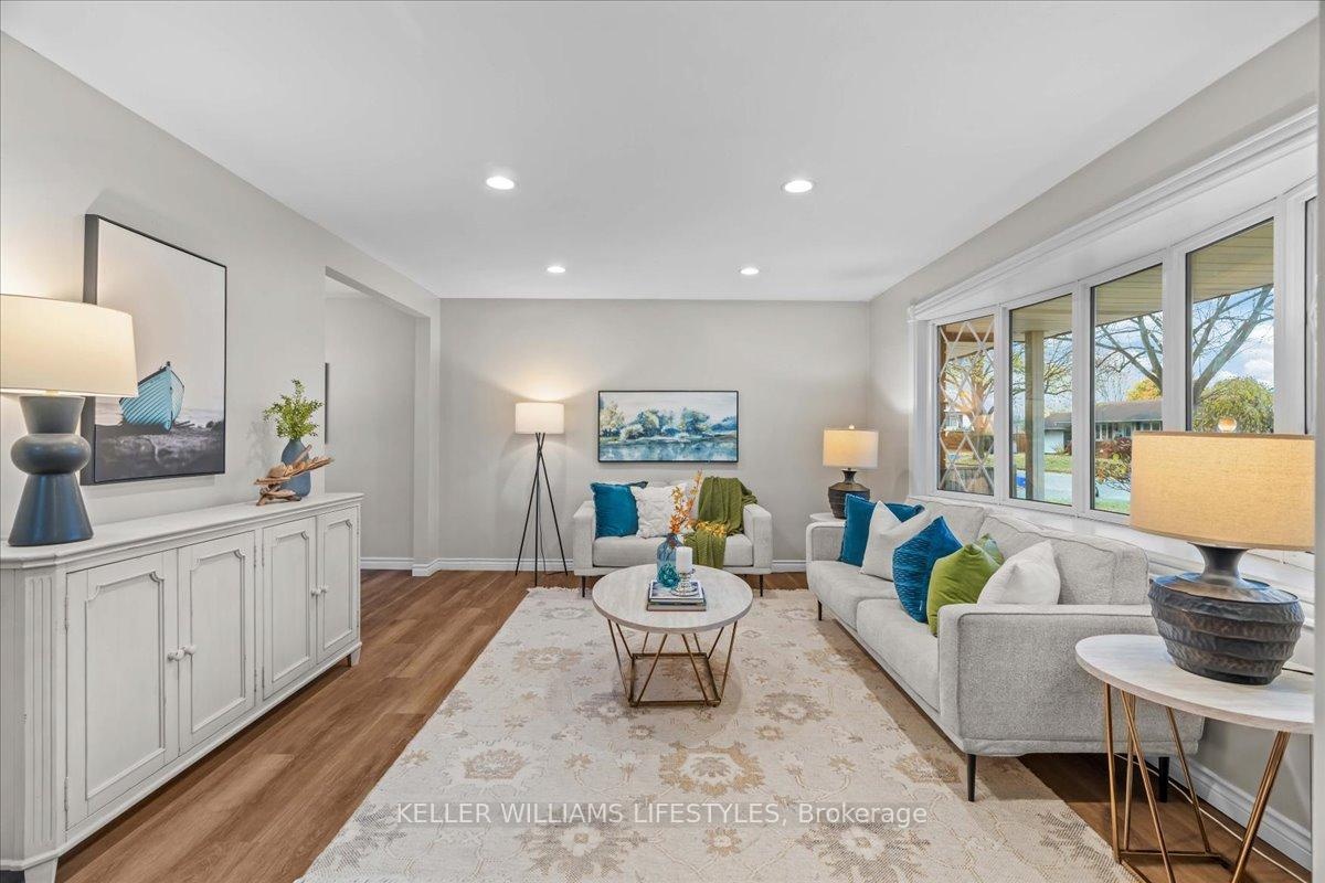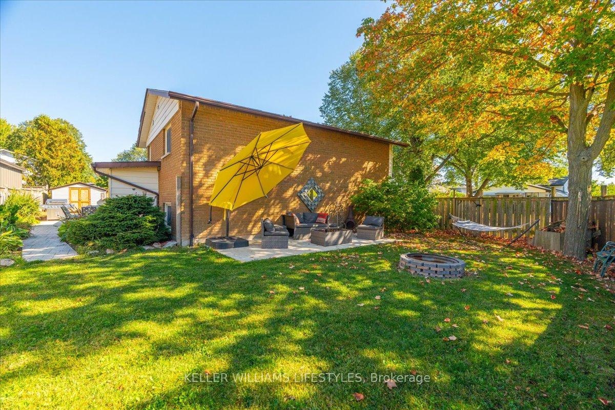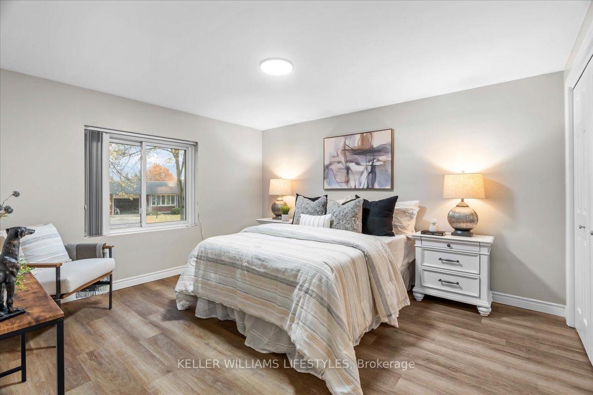 Opportunities like this don't come often. This stunning four-level side split has been beautifully updated and delivers everything, from an open-concept layout filled with natural light to a private backyard retreat designed for entertaining. The heart of the home is the updated kitchen with solid oak cabinetry, modern finishes, and a movable island, while patio doors connect seamlessly to stamped concrete patios and a fully fenced yard. Upstairs, three spacious bedrooms and a sleek four-piece bath provide comfort and style, while the lower levels offer incredible versatility with a second living room, walkout access, a two-piece bath, and a generous primary suite with plenty of storage. An additional level adds even more space for a home office, or playroom, the options are endless. What truly sets this property apart is the rare drive-through double-car garage with a triple-wide driveway, giving you unmatched parking and storage options in this neighbourhood. With fresh lighting, new paint, and thoughtful updates throughout, this charming home sits proudly on a beautifully landscaped corner lot with a relaxing on the covered front porch. Perfectly positioned near schools, shopping, and quick highway access, this home is your chance to secure a move-in ready gem!