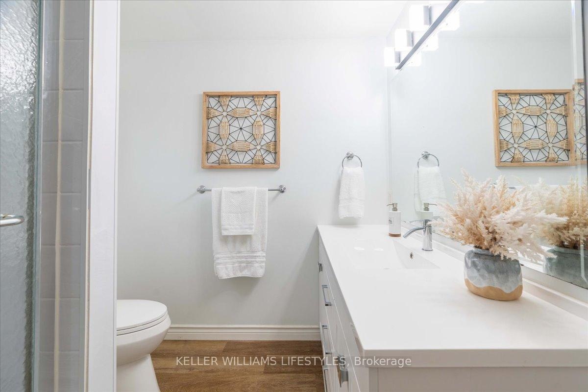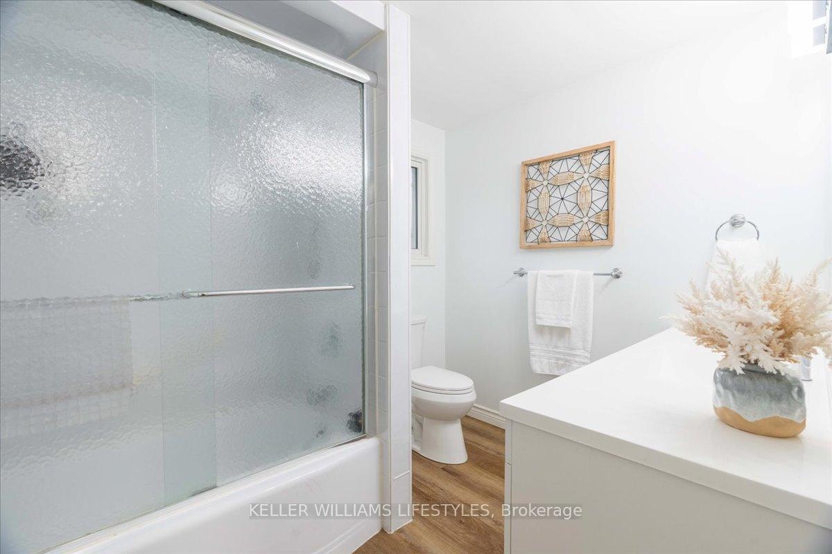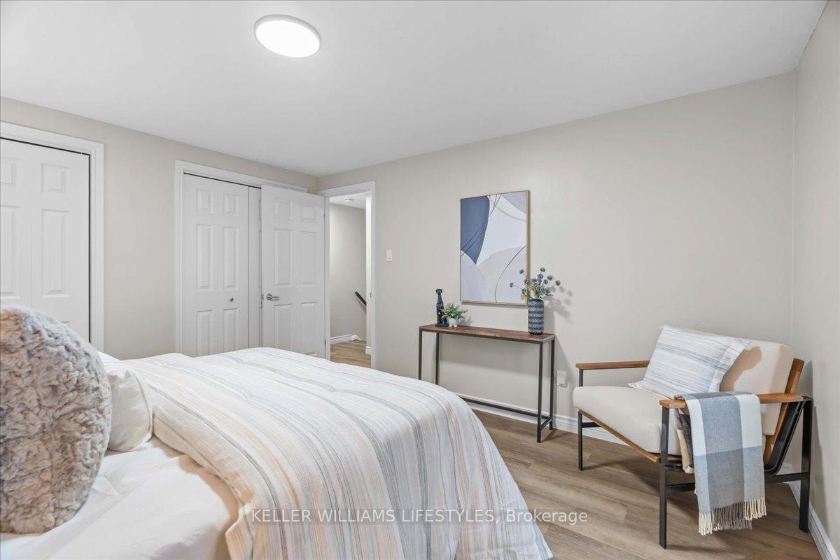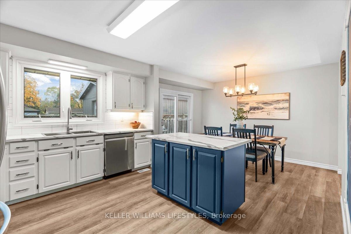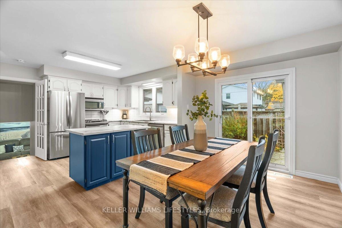 Opportunities like this don't come often. This stunning four-level side split has been beautifully updated and delivers everything, from an open-concept layout filled with natural light to a private backyard retreat designed for entertaining. The heart of the home is the updated kitchen with solid oak cabinetry, modern finishes, and a movable island, while patio doors connect seamlessly to stamped concrete patios and a fully fenced yard. Upstairs, three spacious bedrooms and a sleek four-piece bath provide comfort and style, while the lower levels offer incredible versatility with a second living room, walkout access, a two-piece bath, and a generous primary suite with plenty of storage. An additional level adds even more space for a home office, or playroom, the options are endless. What truly sets this property apart is the rare drive-through double-car garage with a triple-wide driveway, giving you unmatched parking and storage options in this neighbourhood. With fresh lighting, new paint, and thoughtful updates throughout, this charming home sits proudly on a beautifully landscaped corner lot with a relaxing on the covered front porch. Perfectly positioned near schools, shopping, and quick highway access, this home is your chance to secure a move-in ready gem!