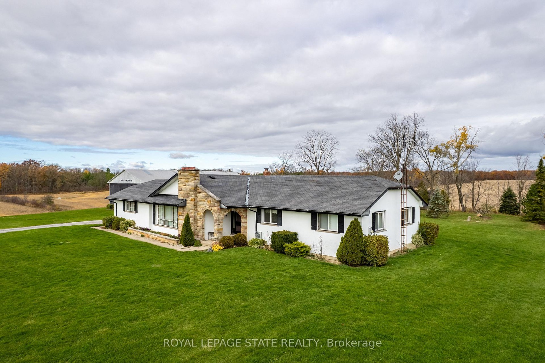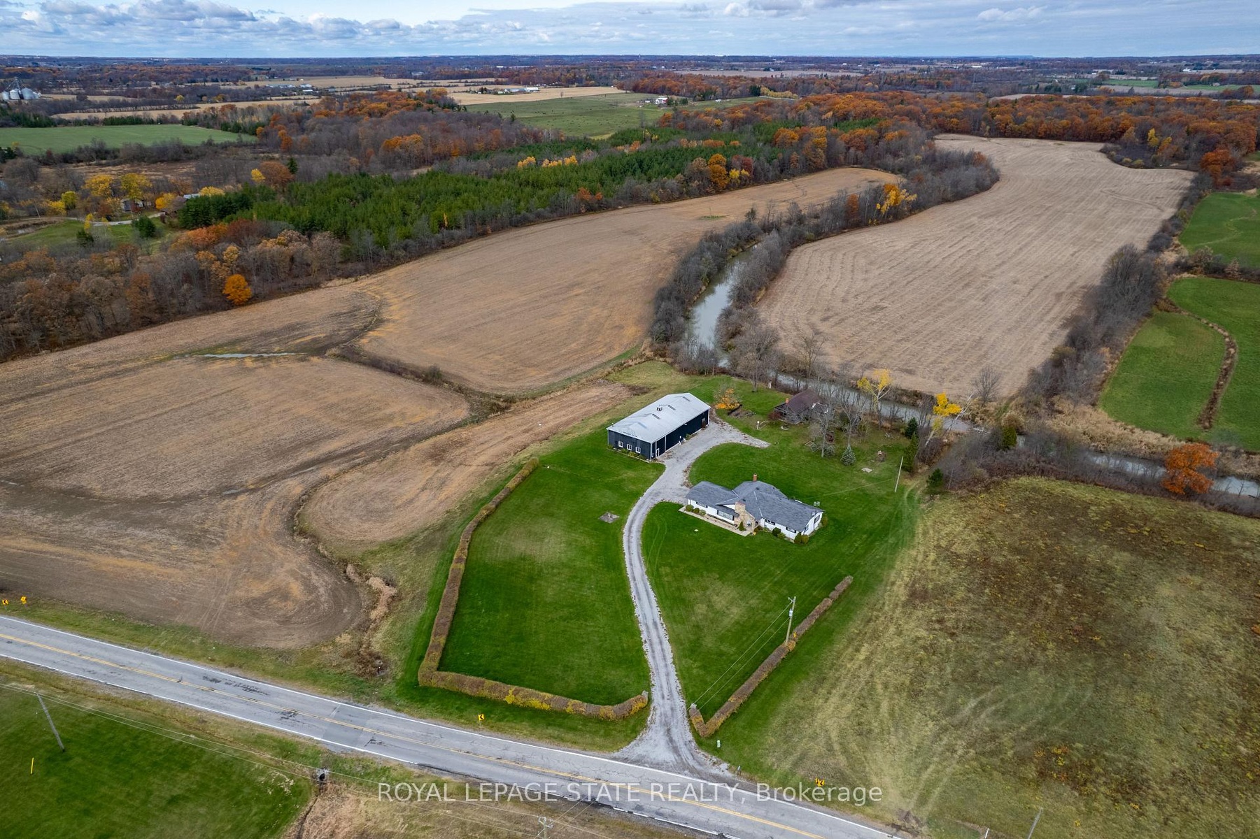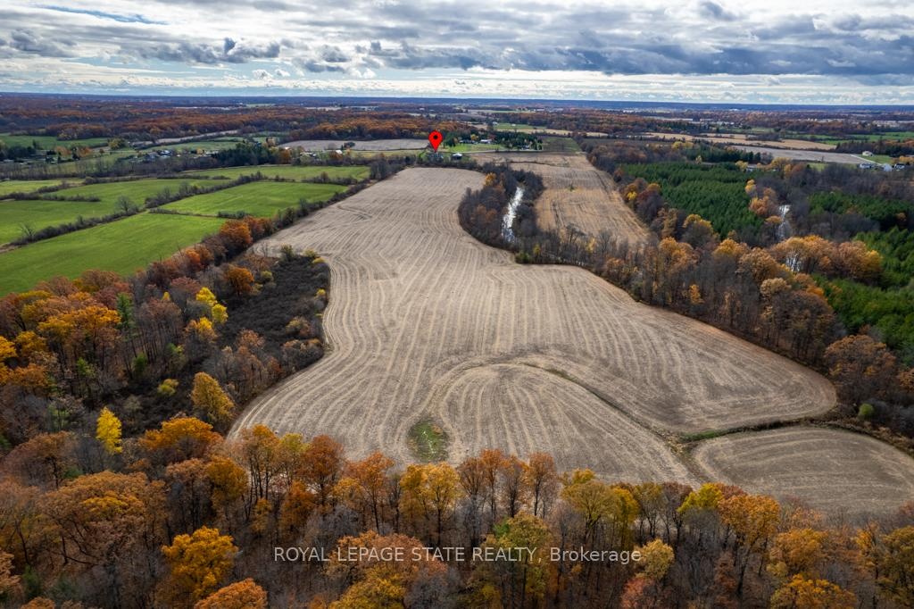 Exceptional 78-acre property, showcasing rolling farmland, creek, and forested area with sugar maples at the back of the property. 49 acres tillable / workable. The residence features an attached two-car garage, an inviting back deck, spacious 40 x 80 detached shop/ barn with hydro and ample parking. Inside, you'll find generous principal rooms, including a bright living room with large windows that flood the space with natural light and a wood-burning fireplace (AS IS). The separate dining area, main floor family room, and a large kitchen with dinette make entertaining effortless. The master bedroom boasts double closets, accompanied by two additional bedrooms, a welcoming front foyer, and a practical mudroom for convenience. The unfinished basement offers loads of potential. The original homestead, dating back to the early 1900s, offers character and charm overlooking the creek. This unique property presents an outstanding opportunity for those seeking privacy, space, and rural charm just minutes from town amenities.