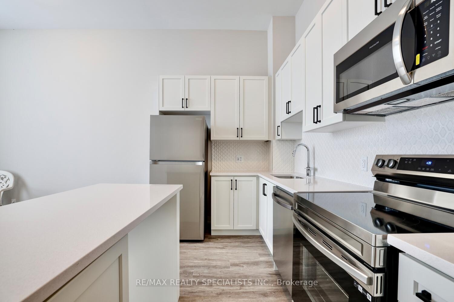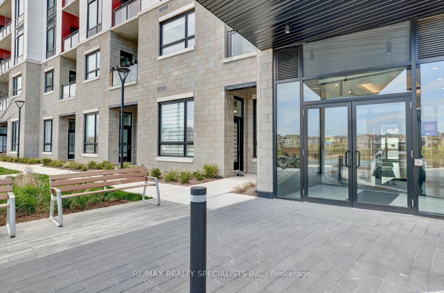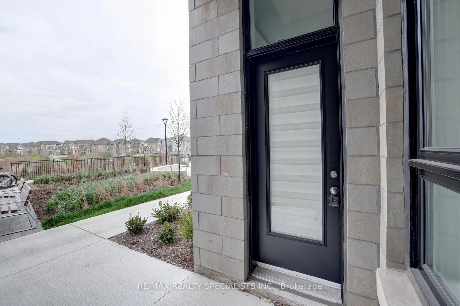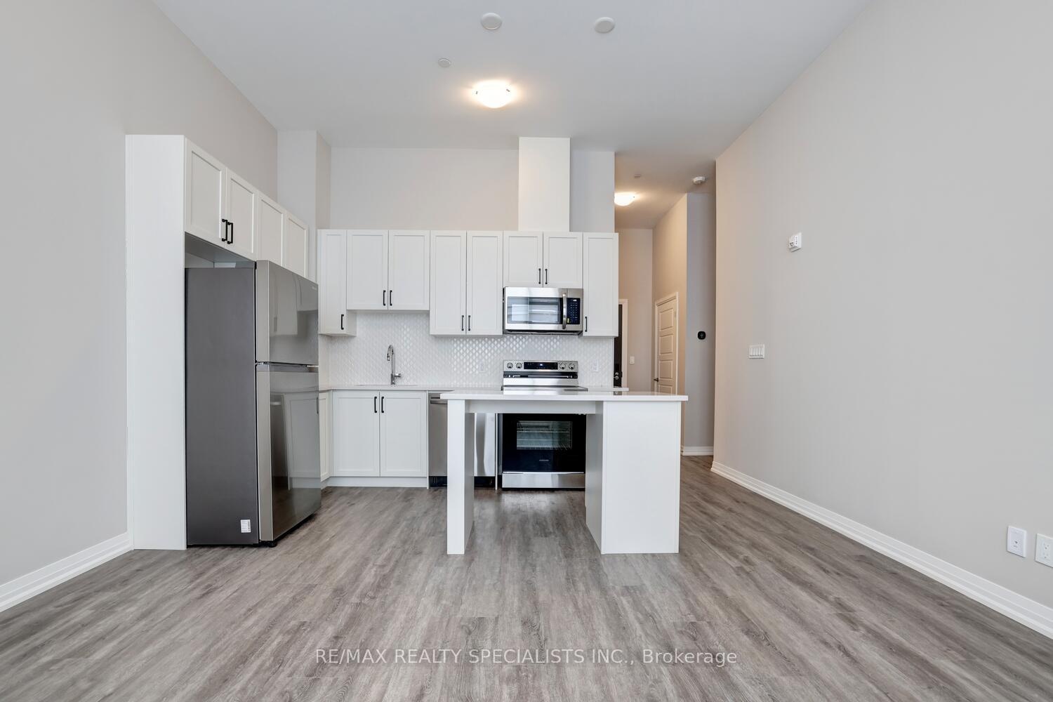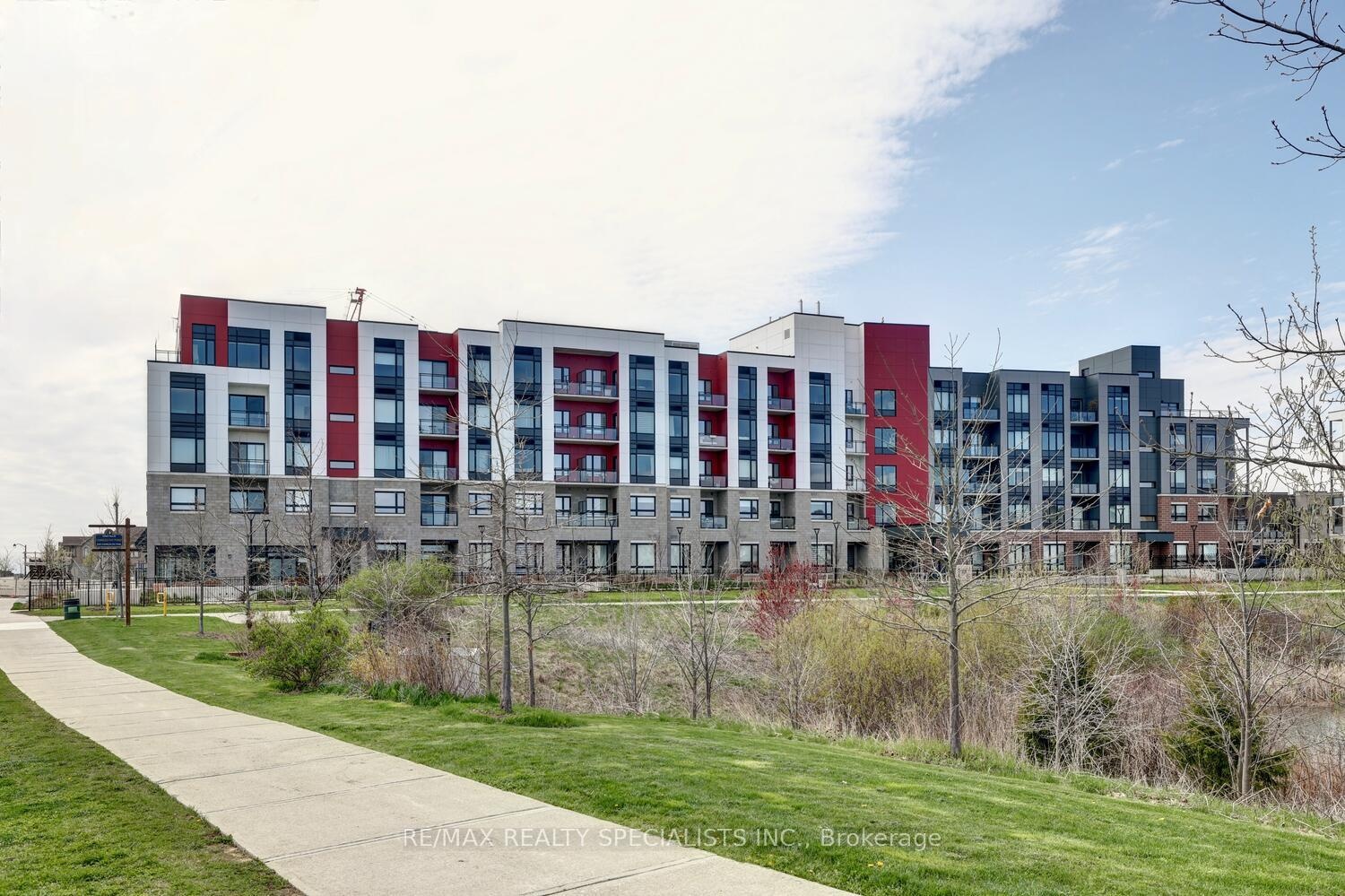 Gorgeous ground floor Mattamy built apartment with thousands spent on upgrades and located in the sought after community of "Preserve". Premium location with walk-out to covered porch area overlooking "Charles Fay Pond" and an outside lounge area. Modern open concept design with 11 foot ceilings throughout. Spacious living/dining room area with vinyl plank floors. Modern kitchen with stainless steel appliances, centre island with breakfast area, quartz counter tops, ceramic backsplash, under mount sink, soft closing cabinetry and drawers. Convenient separate den area with open concept storage/closet space. Primary bedroom retreat with vinyl floors and large double closet. Stunning 3 piece main bathroom with walk-in glass shower. Lots of natural light with towering windows and remote blinds. Apartment comes with an extra large parking spot and locker. Fantastic building facilities with security concierge, keyless entry, high speed internet, roof top party room and fitness area. Just minutes away to shopping, trails, hospital, transit, and highways.