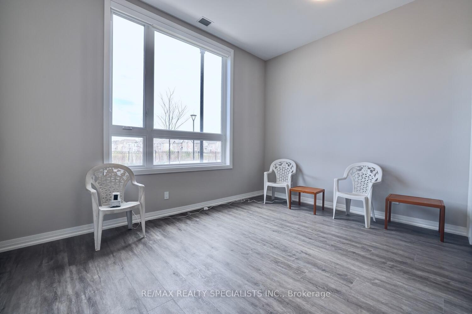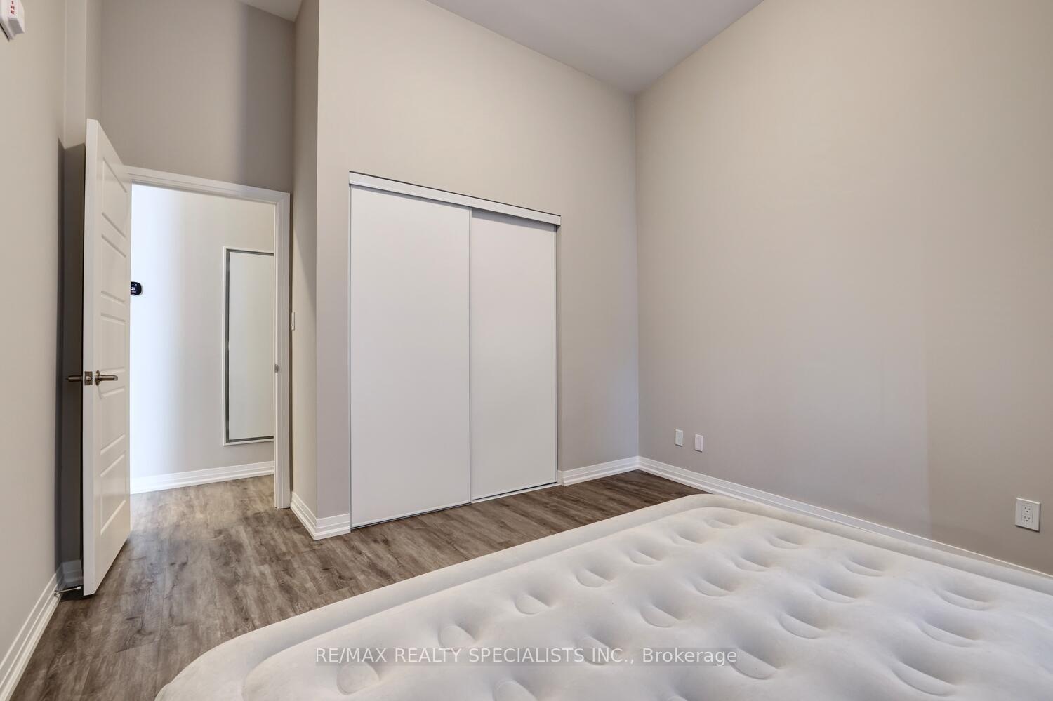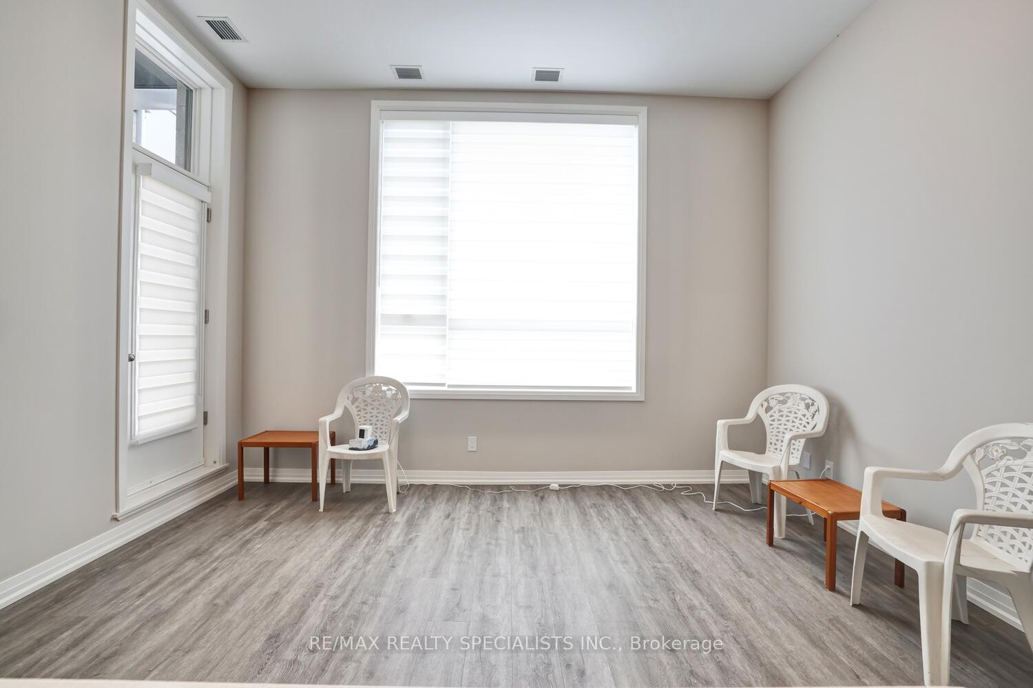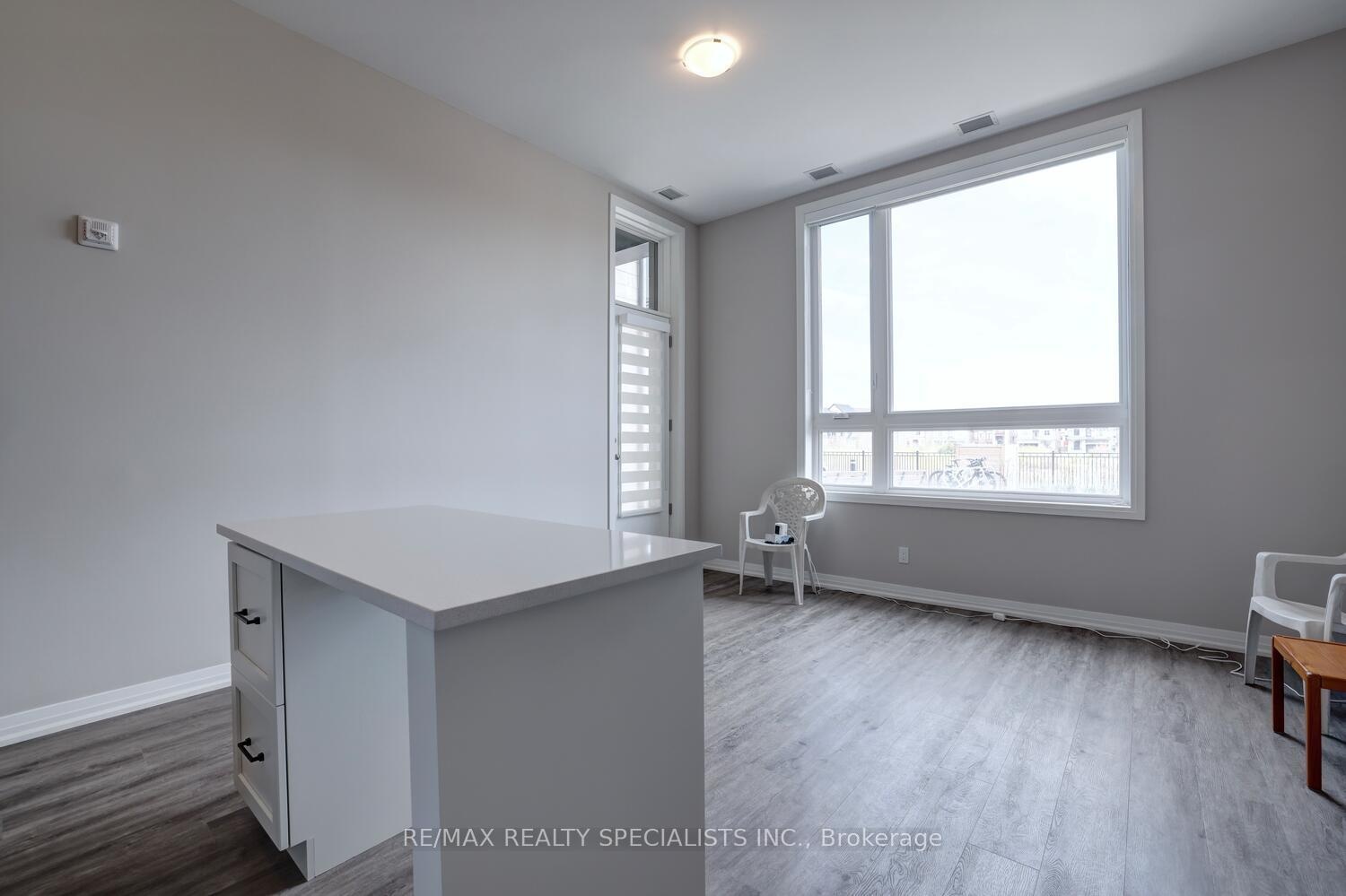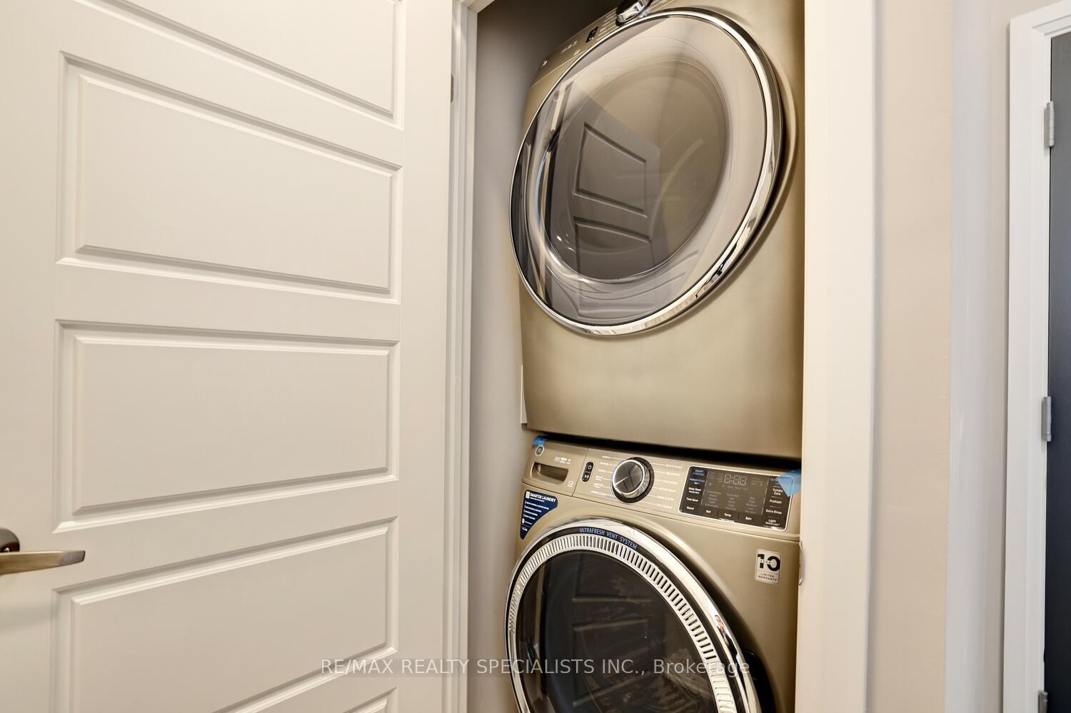 Gorgeous ground floor Mattamy built apartment with thousands spent on upgrades and located in the sought after community of "Preserve". Premium location with walk-out to covered porch area overlooking "Charles Fay Pond" and an outside lounge area. Modern open concept design with 11 foot ceilings throughout. Spacious living/dining room area with vinyl plank floors. Modern kitchen with stainless steel appliances, centre island with breakfast area, quartz counter tops, ceramic backsplash, under mount sink, soft closing cabinetry and drawers. Convenient separate den area with open concept storage/closet space. Primary bedroom retreat with vinyl floors and large double closet. Stunning 3 piece main bathroom with walk-in glass shower. Lots of natural light with towering windows and remote blinds. Apartment comes with an extra large parking spot and locker. Fantastic building facilities with security concierge, keyless entry, high speed internet, roof top party room and fitness area. Just minutes away to shopping, trails, hospital, transit, and highways.