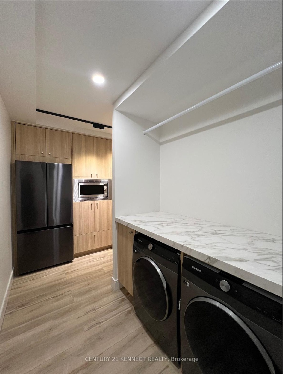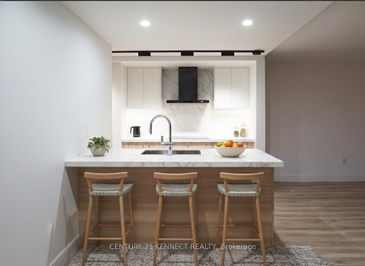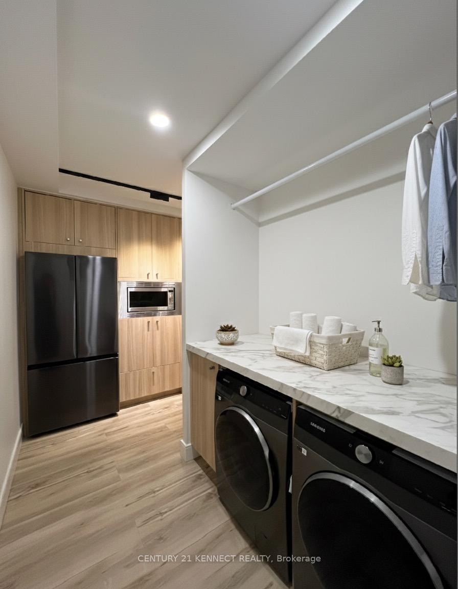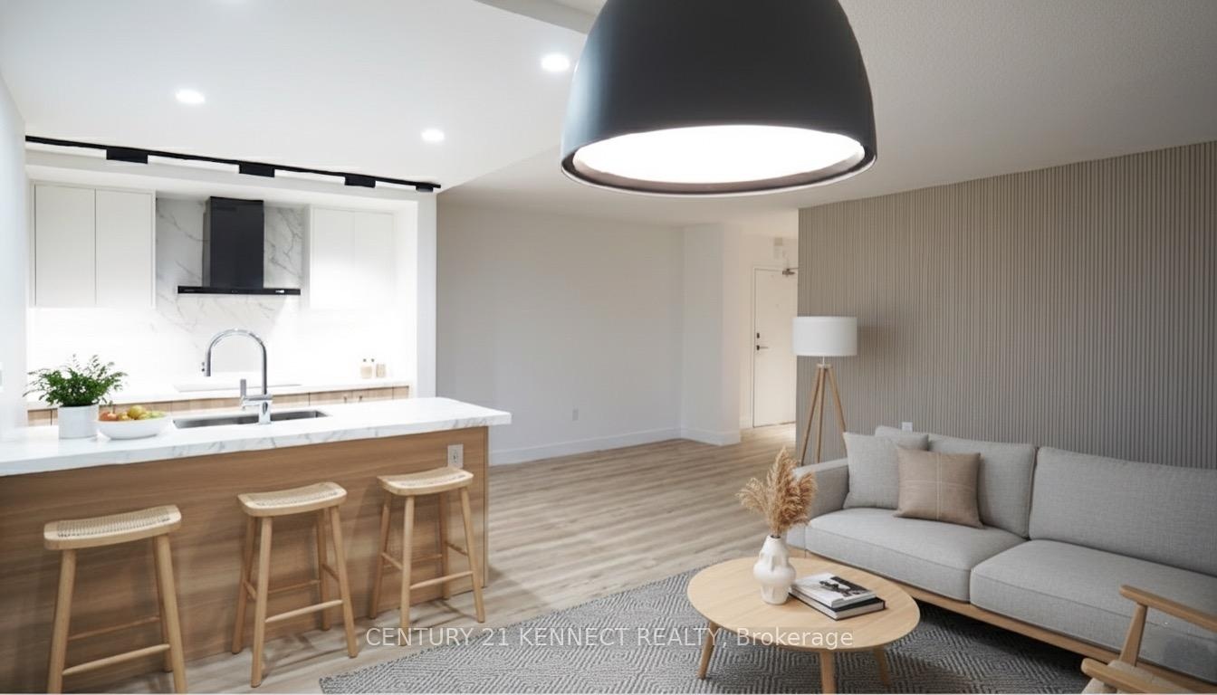 Breathtaking top-to-bottom designer reno in the heart of Mississauga! This stunning open-concept 3 Bed + Den, 2 Bath unit is a true turn-key home. The star is the brand-new custom kitchen, featuring sleek flat-panel cabinets, quartz counters, a matching backsplash, and a statement waterfall island. It's finished with new S/S appliances, pot lights, and modern track lighting. High-quality, wide-plank vinyl flooring flows seamlessly throughout, complemented by smooth ceilings and new baseboards. Storage is a highlight, with a custom smoked-glass wardrobe and a chic fluted wood accent wall. All-Inclusive Maintenance Fees! This is a rare find-your monthly fee covers Heat, Hydro, Water, Cable TV, AND WiFi. Budgeting has never been easier. Amenities include an outdoor pool, gym, and sauna. Perfectly located just a short walk from the GO Station and public transit. This is an incredible opportunity for tenant to move in to this luxury condo living. Don't miss out!