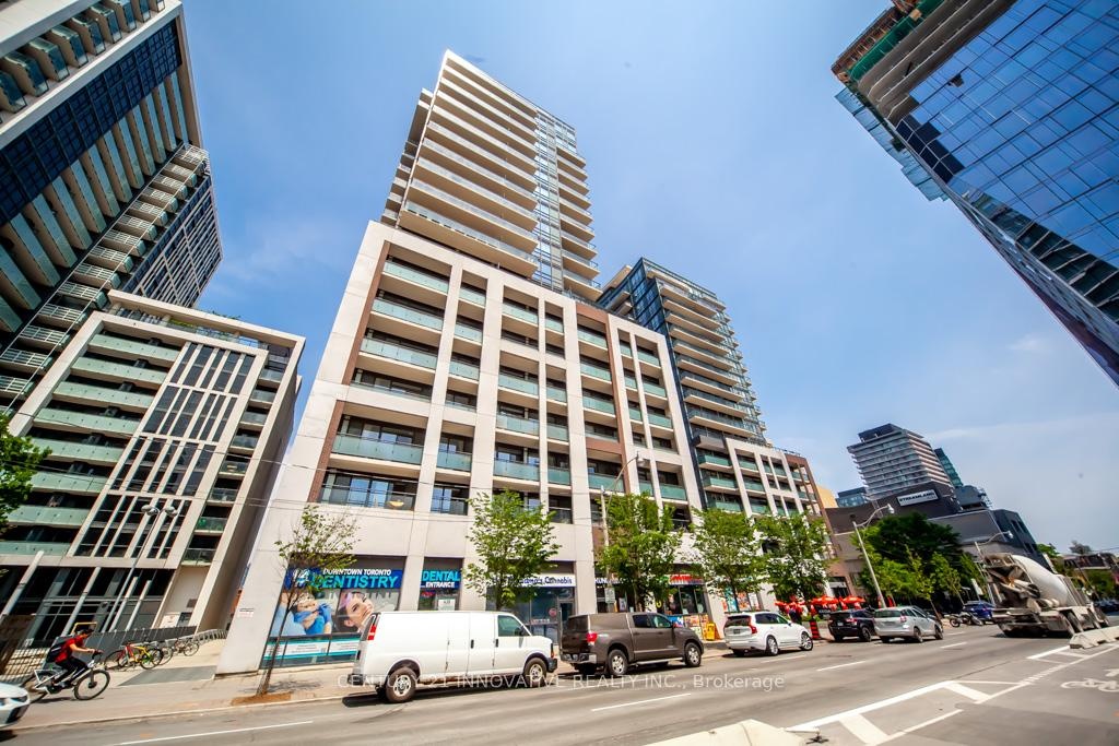 Axiom Condo! Luxurious 1+1 Bedroom Suite! 10 Ft. High Ceilings. Features to name a few: Magnificent Views Through Floor To Ceiling Windows, REAL Hardwood Floors Throughout, Kitchen Quartz Countertop & Backsplash, Large Living Room Walking Out To Balcony. 2Hr Concierge/Security, Stunning Main Floor Lobby Lounge, Steps To St. Lawrence Market, T.T.C., Ryerson, George Brown, Shopping, Cafes/Diners & Much More. 1 Storage Locker And 1 Bicycle Locker included. Walk Score Of 97!