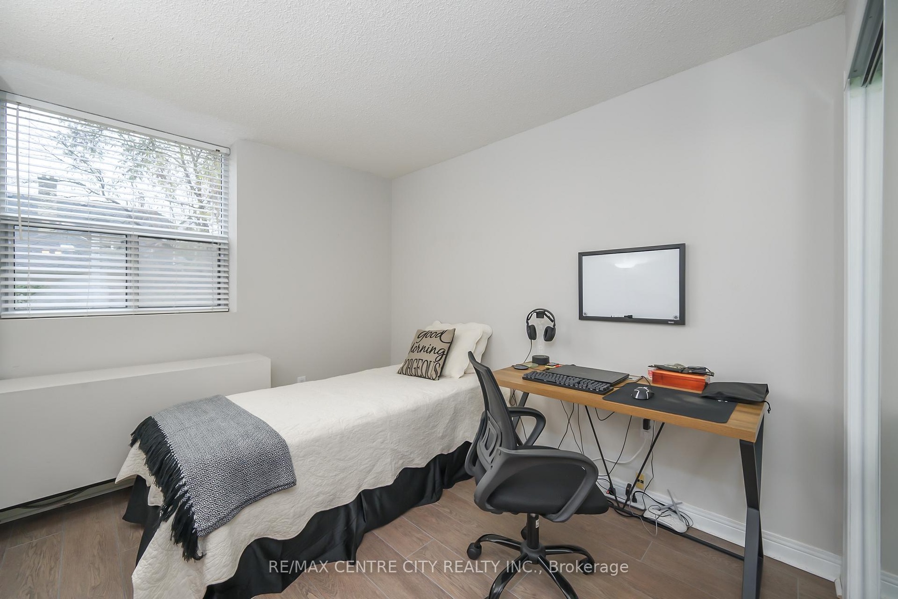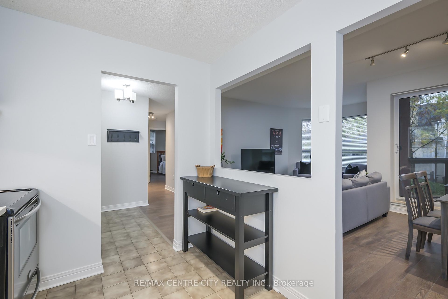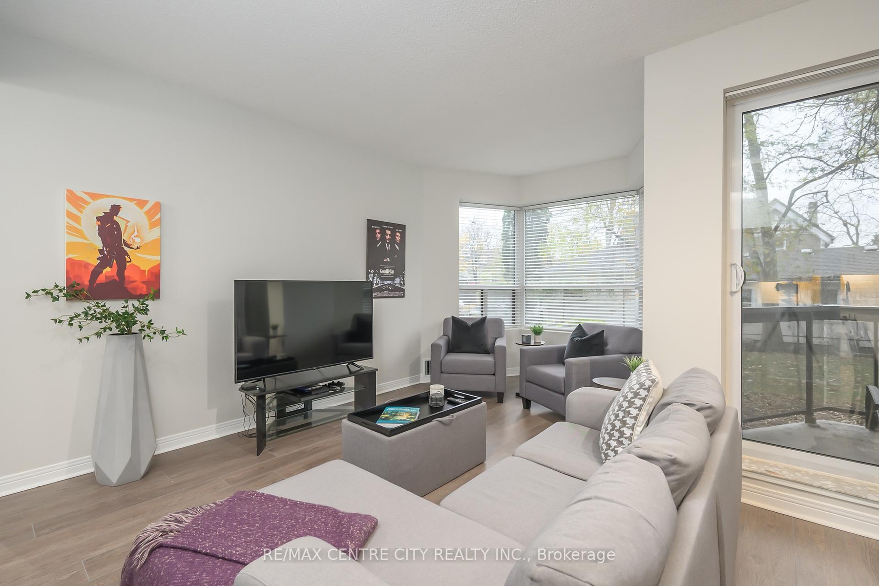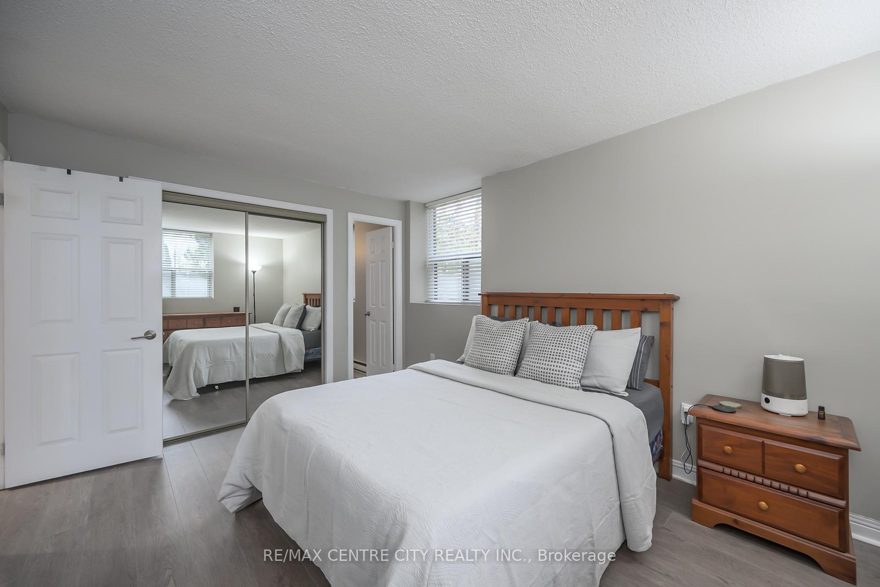 Ideal downtown location for those seeking a premier urban lifestyle. Enjoy the buzz of downtown London while residing in a peaceful, recently renovated building. This first-floor, Garden View, 1100-square-foot condo offers 2 bedrooms and 2 updated bathrooms, with an updated kitchen featuring newer appliances & quartz counter tops. The unit is walking distance to Richmond Row, Victoria Park, Canada Life Place, The Grand Theatre, Covent Garden Market and London's Best Restaurants, with easy access to major transit routes to UWO and Fanshawe College. This adult-oriented, pet-free condo is perfect for downtown professionals or seniors looking to be close to amenities. The building is fully equipped with underground parking plus tons of guest parking, storage locker, an indoor pool, jacuzzi, fitness room, party room, BBQ area, and outdoor entertaining space.