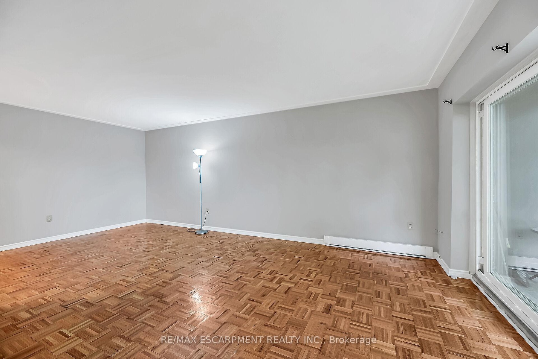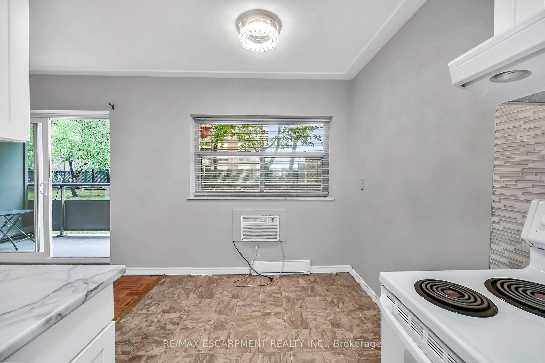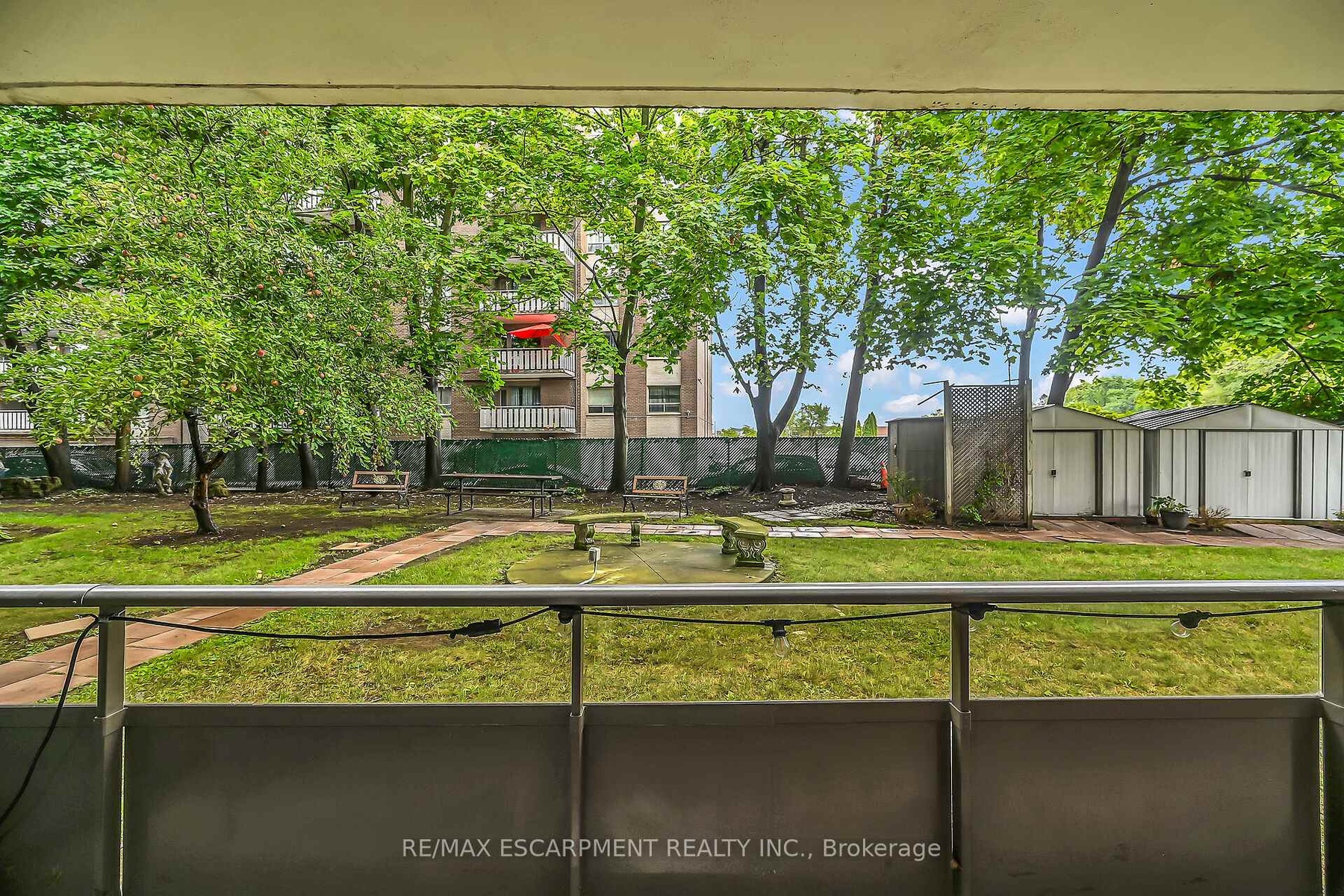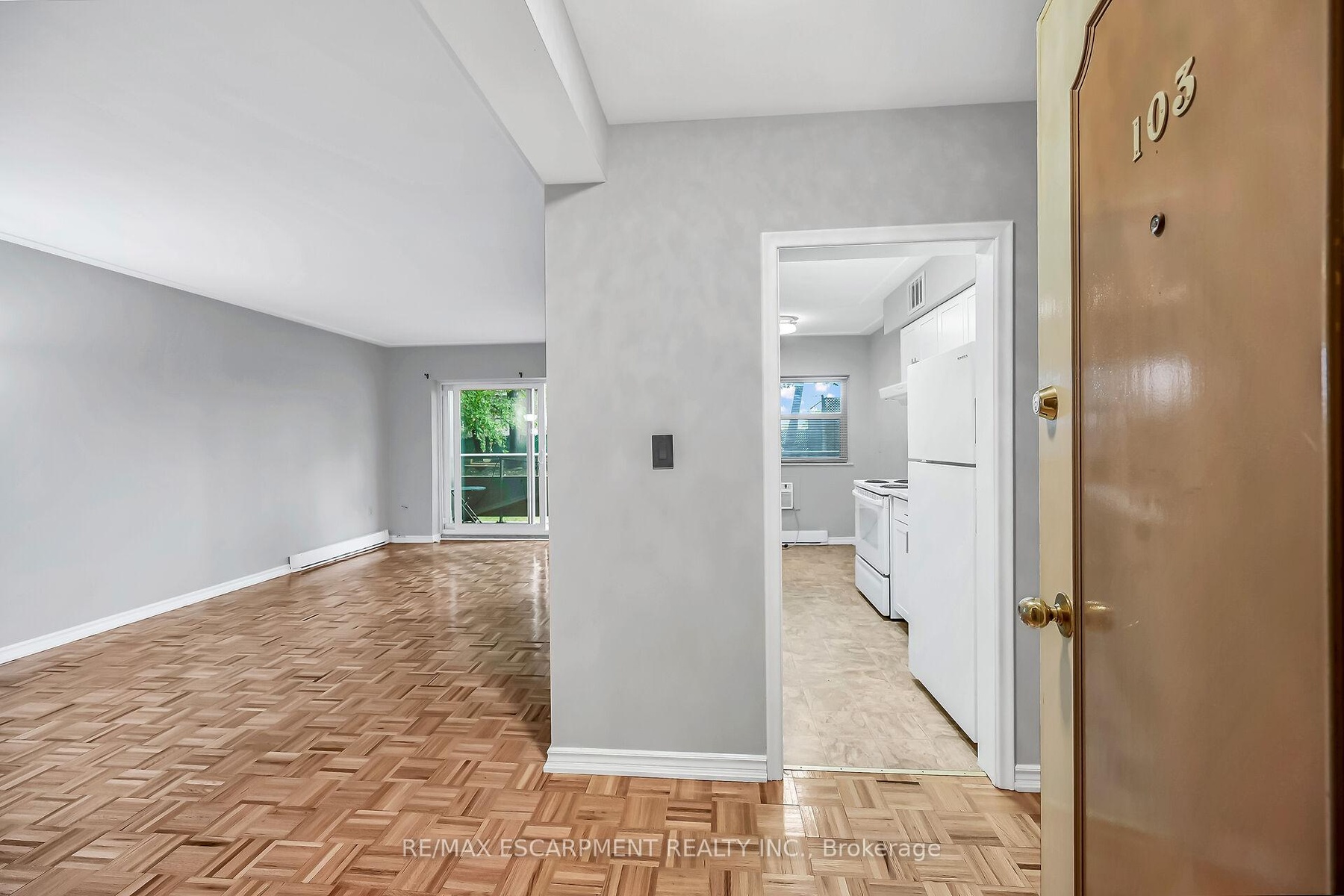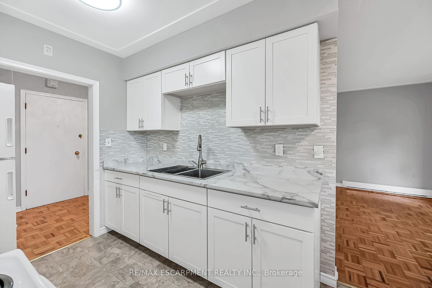 Beautifully Renovated Ground-Floor Unit in East Hamilton Well-maintained home located in a quiet, safe East Hamilton neighborhood. This renovated ground-floor unit offers a garden view and features parquet flooring, updated kitchen with new cabinets and sink, and a fully renovated bathroom. Freshly painted throughout. Spacious and bright living room with access to an oversized balcony. Locker and laundry room conveniently located on the same floor. Includes one parking space (#39). Excellent opportunity for first-time buyers, downsizers, or investors. Prime location just minutes from the Q.E.W. and Red Hill Parkway, with public transit, shopping, and amenities within walking distance.