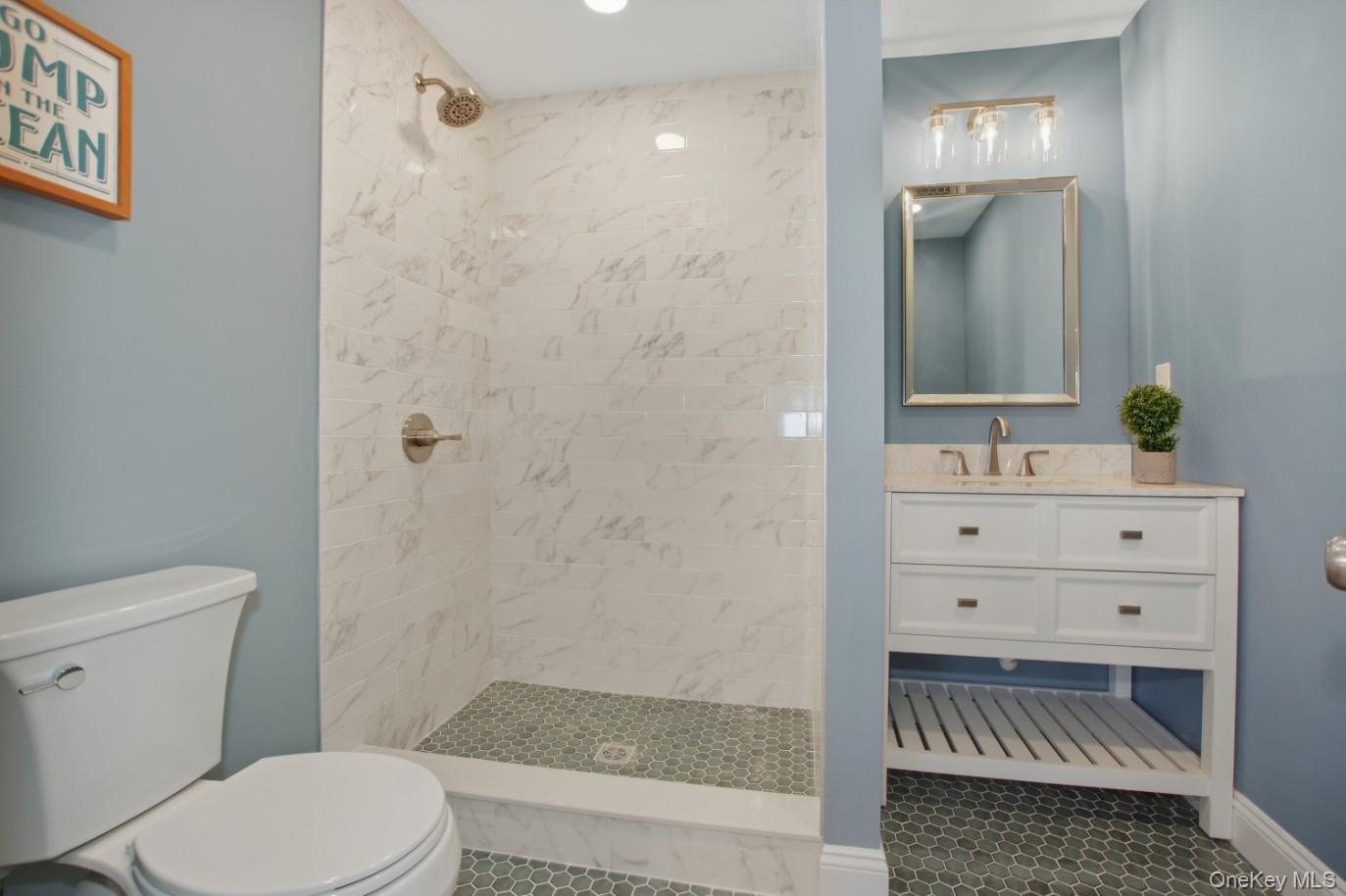 Introducing an completly renovated Colonial home that is truly move in ready. This residence features four spacious bedrooms and two well-appointed bathrooms. The first floor showcases a generously sized eat-in kitchen equipped with quartz countertops and stainless steel appliances, a dining room, an oversized family room, and a living room adorned with a cozy wood-burning fireplace. Additionally, it includes a secluded laundry area, 2 bedrooms and a beautifully designed full bathroom with a stand-up shower, all contributing to an open, bright, and airy atmosphere. The second floor offers the primary bedroom, an additional bedroom, and an elegantly designed full bathroom featuring a full bathtub. Throughout the home, hardwood floors, recessed lighting, and contemporary fixtures reflect the meticulous renovation, making it truly move-in ready. Outside, enjoy a welcoming front porch and a back deck, all set on a private lot where no construction is permitted behind the property. Ideally located near the water, residents have exclusive access to a private beach in Bellport Beach Estates, requiring only a key for entry. This home is conveniently situated within minutes to Bellport Village, known for its old world charm and community spirit, alongside the vibrant lifestyle of Patchogue Village, famed for its diverse dining, shopping, and entertainment options. Great house, Great Location.....Don't Miss it