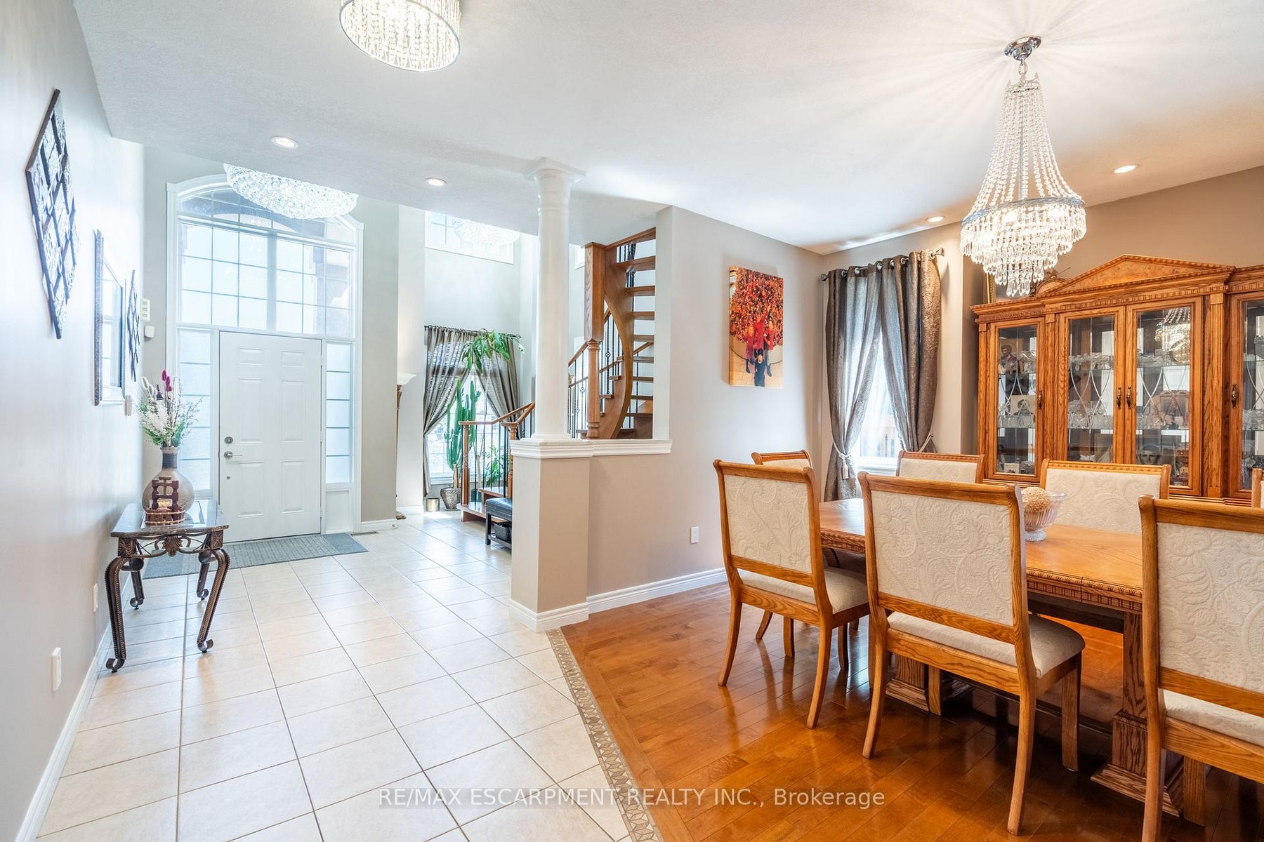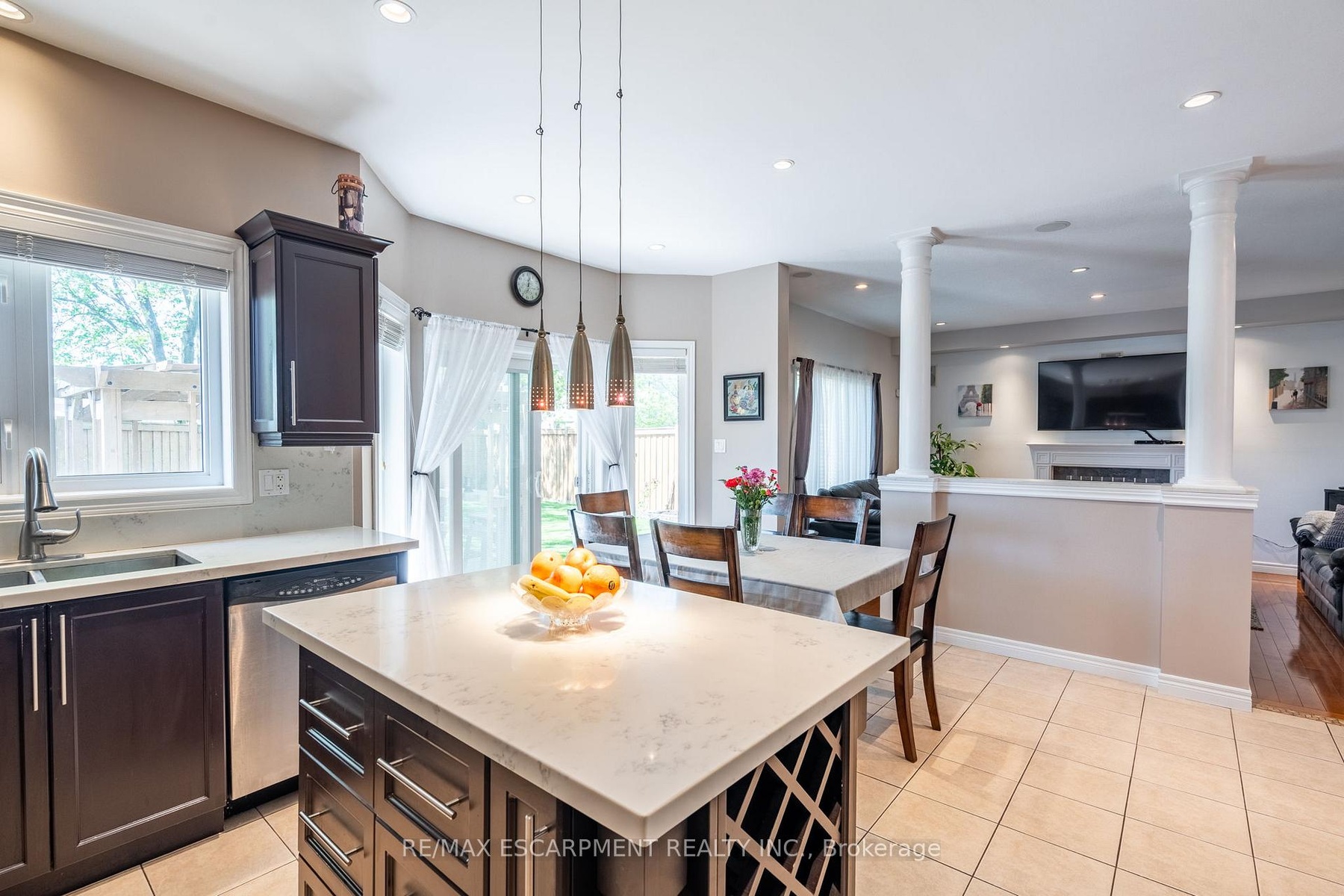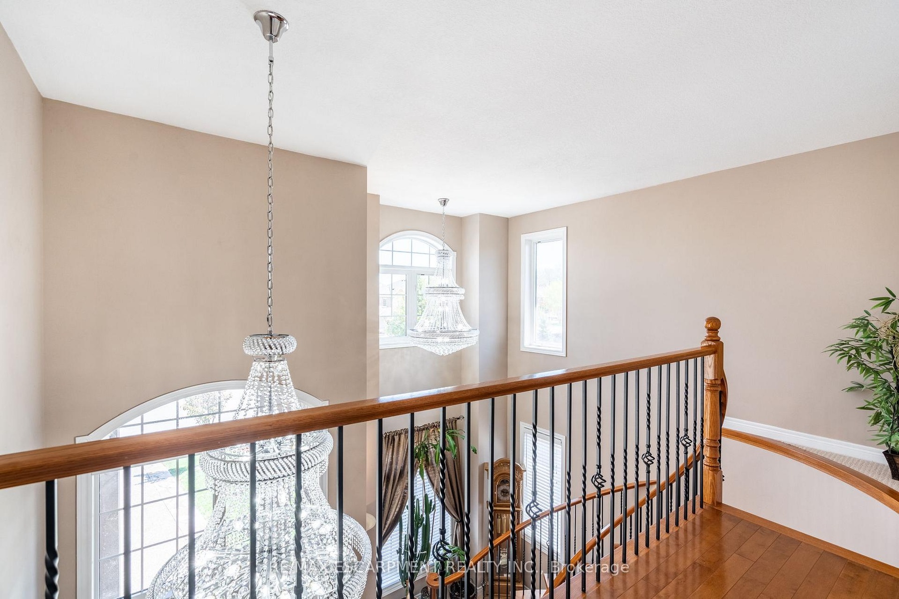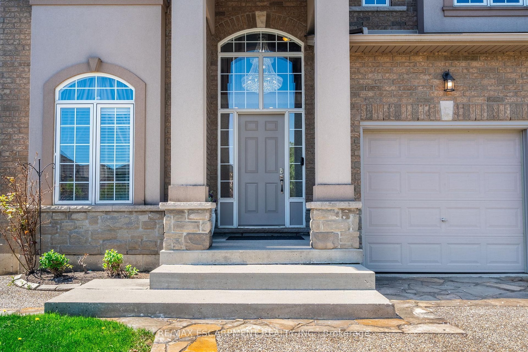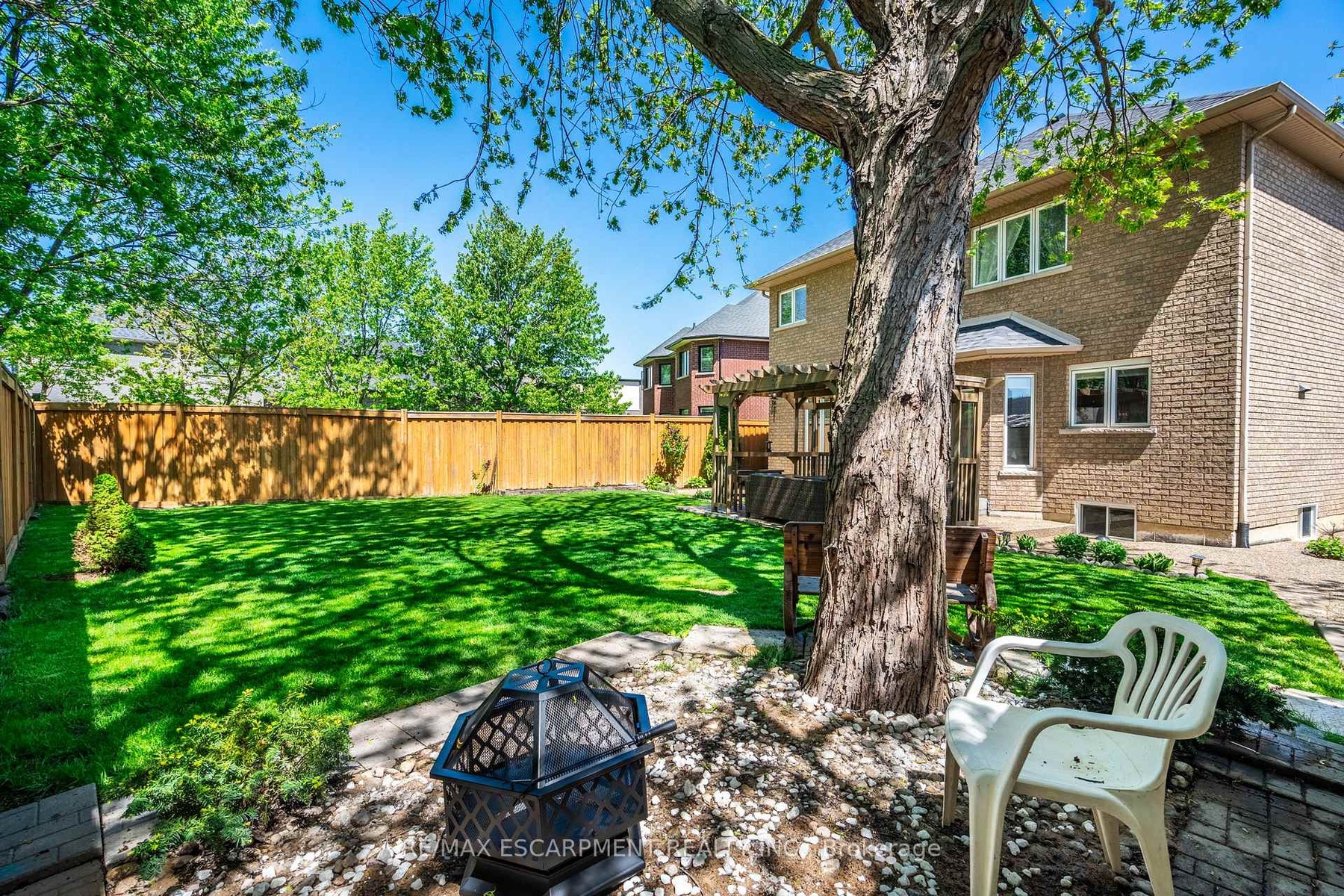 Your dream home awaits at this custom-built 2,655 square foot masterpiece nestled on a generous pie shaped lot. Enter the home to discover an abundance of natural light, with elegant chandeliers and pot lights that illuminate every corner of the home. The front entrance boasts a stunning 17-foot open vaulted ceiling, creating an airy and grand atmosphere perfect for both relaxed living and elevated entertaining. The heart of the home is a beautiful maple kitchen with quartz countertops, island, and extended pantry open to the dinette and family room, featuring a gas fireplace, built in surround sound speakers and wall-to-wall windows that invite the beauty of nature indoors, providing a serene backdrop as you cook and gather with loved ones. Head up the gorgeous open, wooden step, spiral staircase, to retreat to the luxurious primary suite complete with a lavish five-piece ensuite and 12 x 5 walk-in closet. Three additional well-appointed bedrooms and a spacious five-piece bath complete the second floor, ensuring ample space and privacy for family members or guests. The open unspoiled lookout basement offers high ceilings, four large windows, a three piece rough-in, a perfect canvas for your personal touch. Outside, your private backyard oasis awaits with stunning aggregate and stone landscaping around the whole house, lush gardens, an 8ft wooden fence, a welcoming pergola, and a charming campfire spot perfect for evenings under the stars. The 21 ft x 21 ft double car garage and 6 car driveway complete every wish list. This home combines modern comforts with thoughtful design, ensuring a lifestyle that celebrates both indoor luxury and outdoor living. This is your chance to call this exquisite property your own.