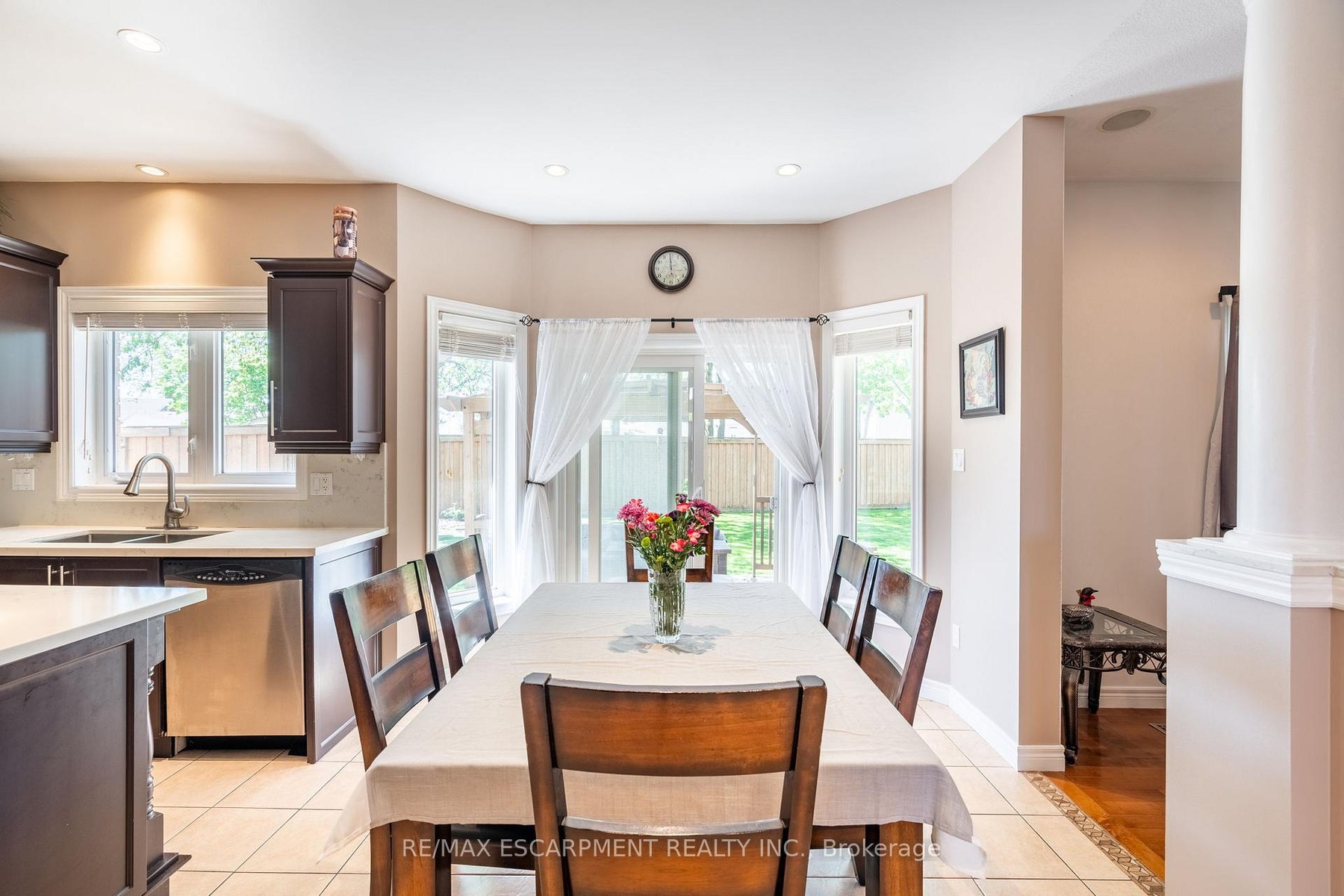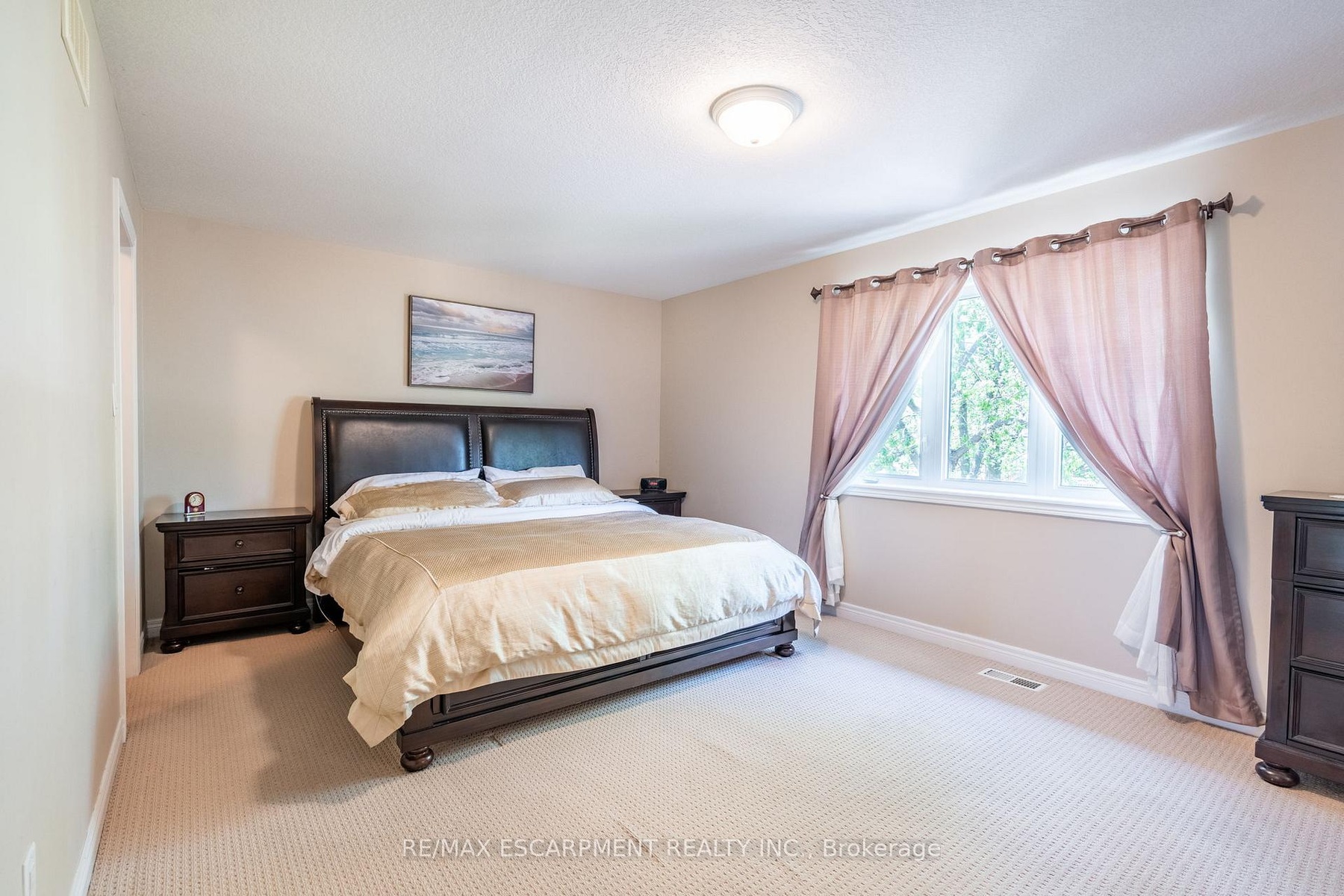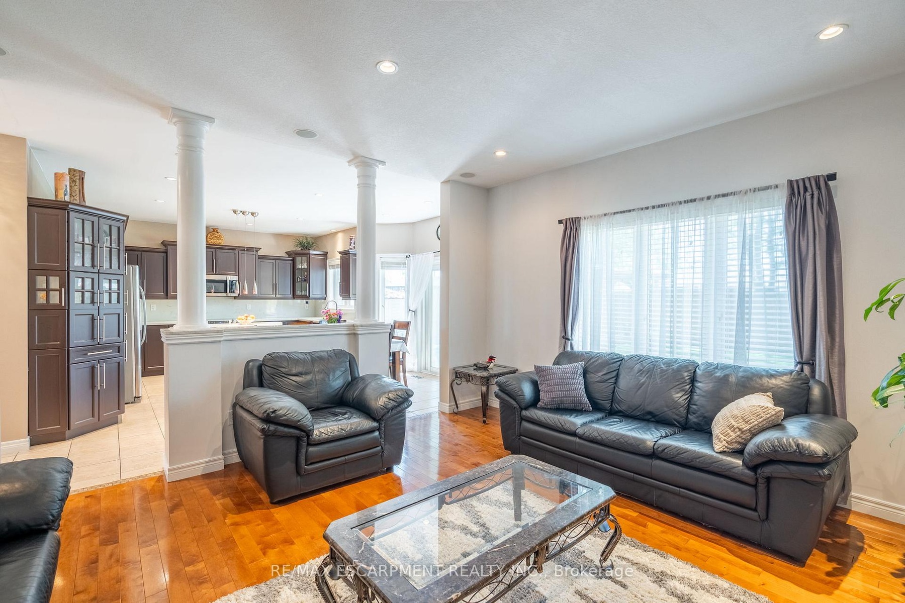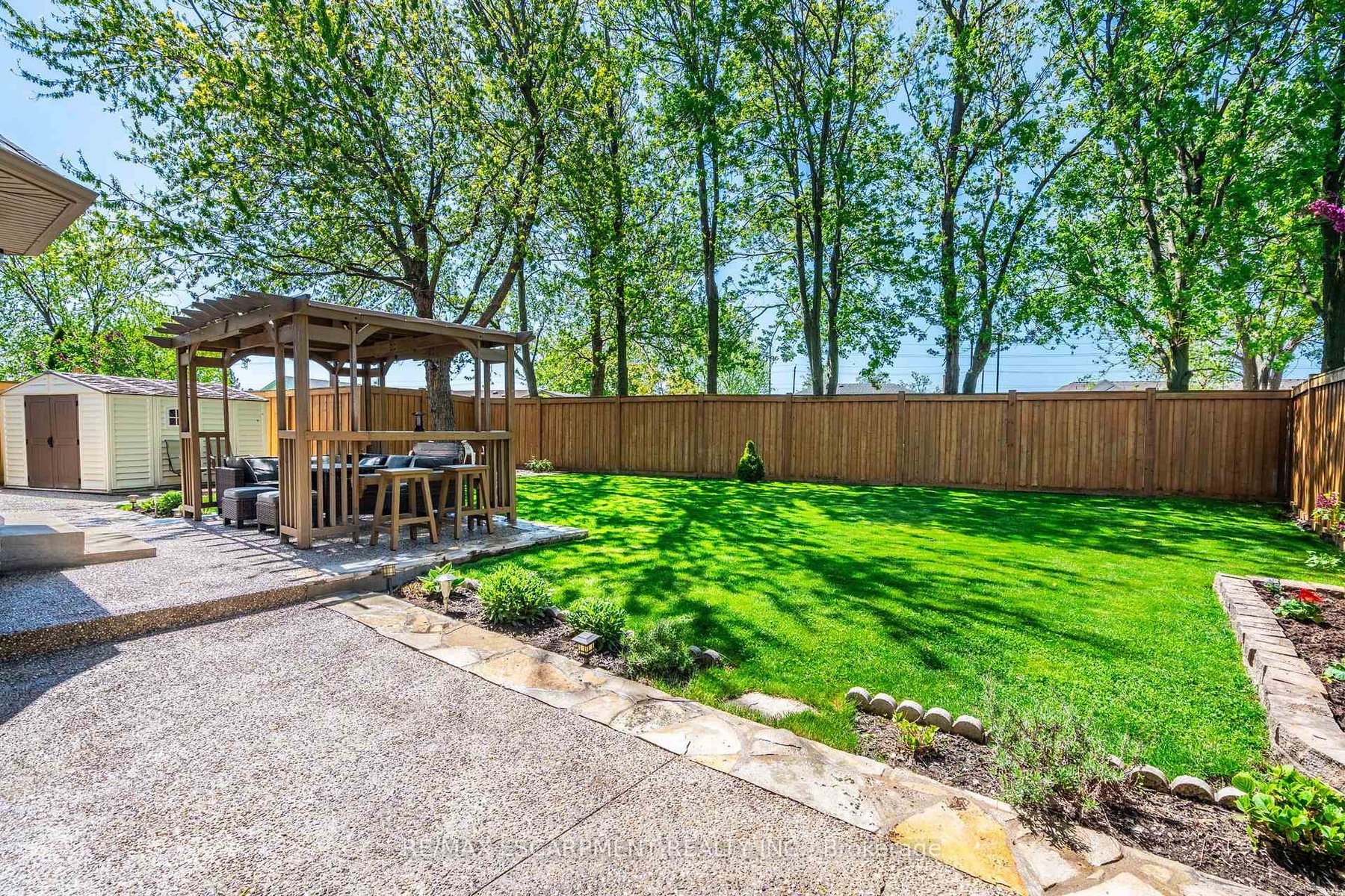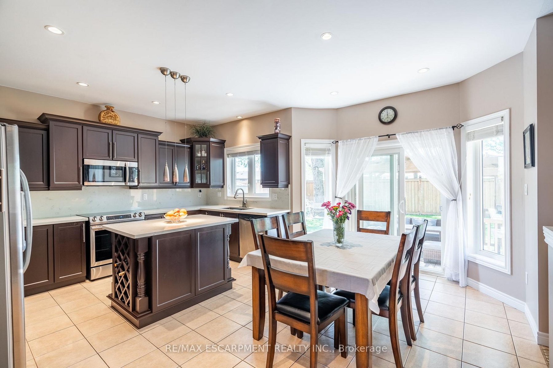 Your dream home awaits at this custom-built 2,655 square foot masterpiece nestled on a generous pie shaped lot. Enter the home to discover an abundance of natural light, with elegant chandeliers and pot lights that illuminate every corner of the home. The front entrance boasts a stunning 17-foot open vaulted ceiling, creating an airy and grand atmosphere perfect for both relaxed living and elevated entertaining. The heart of the home is a beautiful maple kitchen with quartz countertops, island, and extended pantry open to the dinette and family room, featuring a gas fireplace, built in surround sound speakers and wall-to-wall windows that invite the beauty of nature indoors, providing a serene backdrop as you cook and gather with loved ones. Head up the gorgeous open, wooden step, spiral staircase, to retreat to the luxurious primary suite complete with a lavish five-piece ensuite and 12 x 5 walk-in closet. Three additional well-appointed bedrooms and a spacious five-piece bath complete the second floor, ensuring ample space and privacy for family members or guests. The open unspoiled lookout basement offers high ceilings, four large windows, a three piece rough-in, a perfect canvas for your personal touch. Outside, your private backyard oasis awaits with stunning aggregate and stone landscaping around the whole house, lush gardens, an 8ft wooden fence, a welcoming pergola, and a charming campfire spot perfect for evenings under the stars. The 21 ft x 21 ft double car garage and 6 car driveway complete every wish list. This home combines modern comforts with thoughtful design, ensuring a lifestyle that celebrates both indoor luxury and outdoor living. This is your chance to call this exquisite property your own.