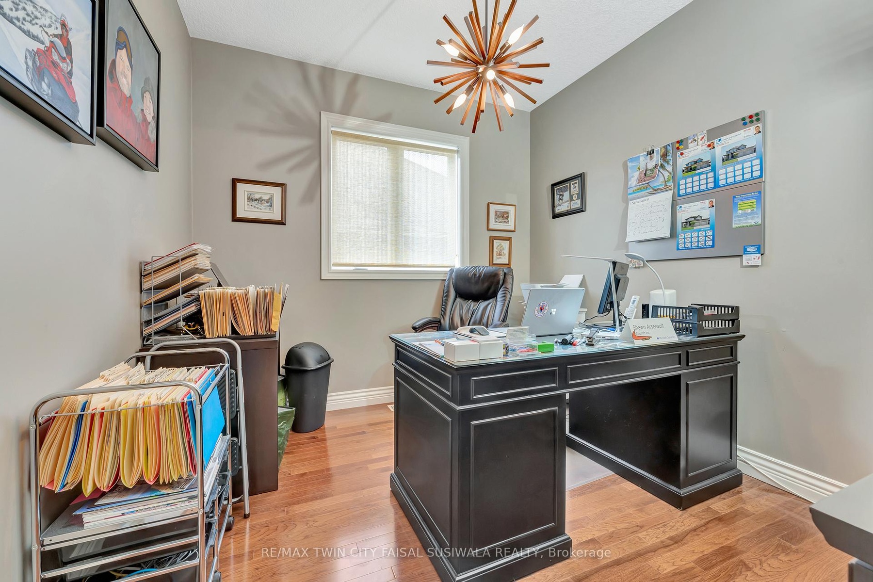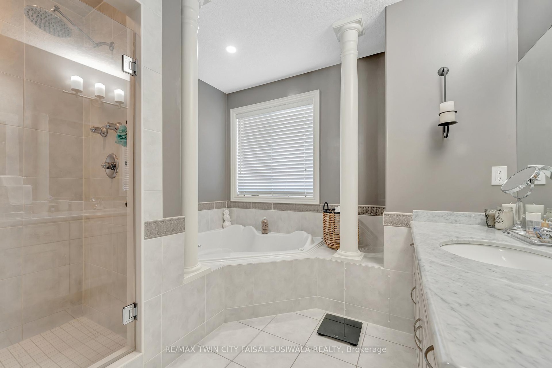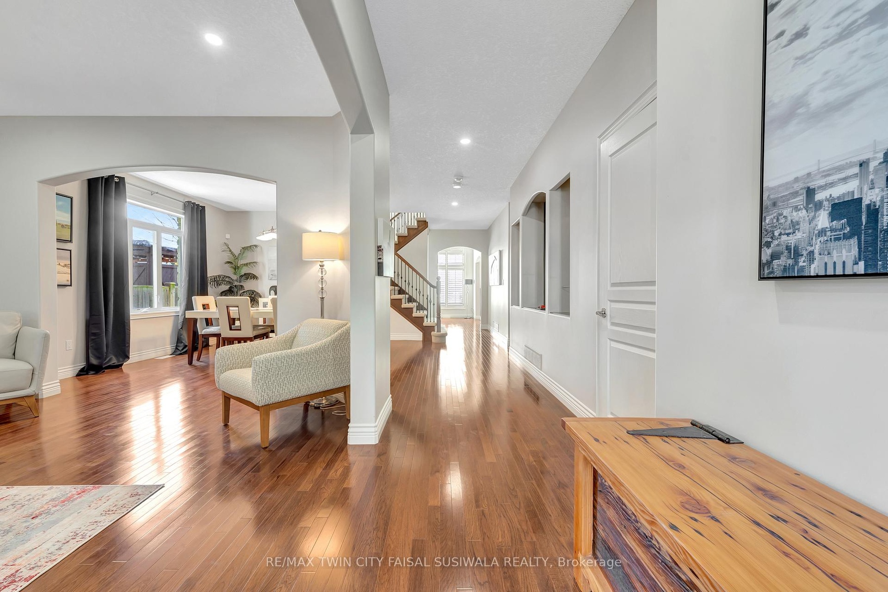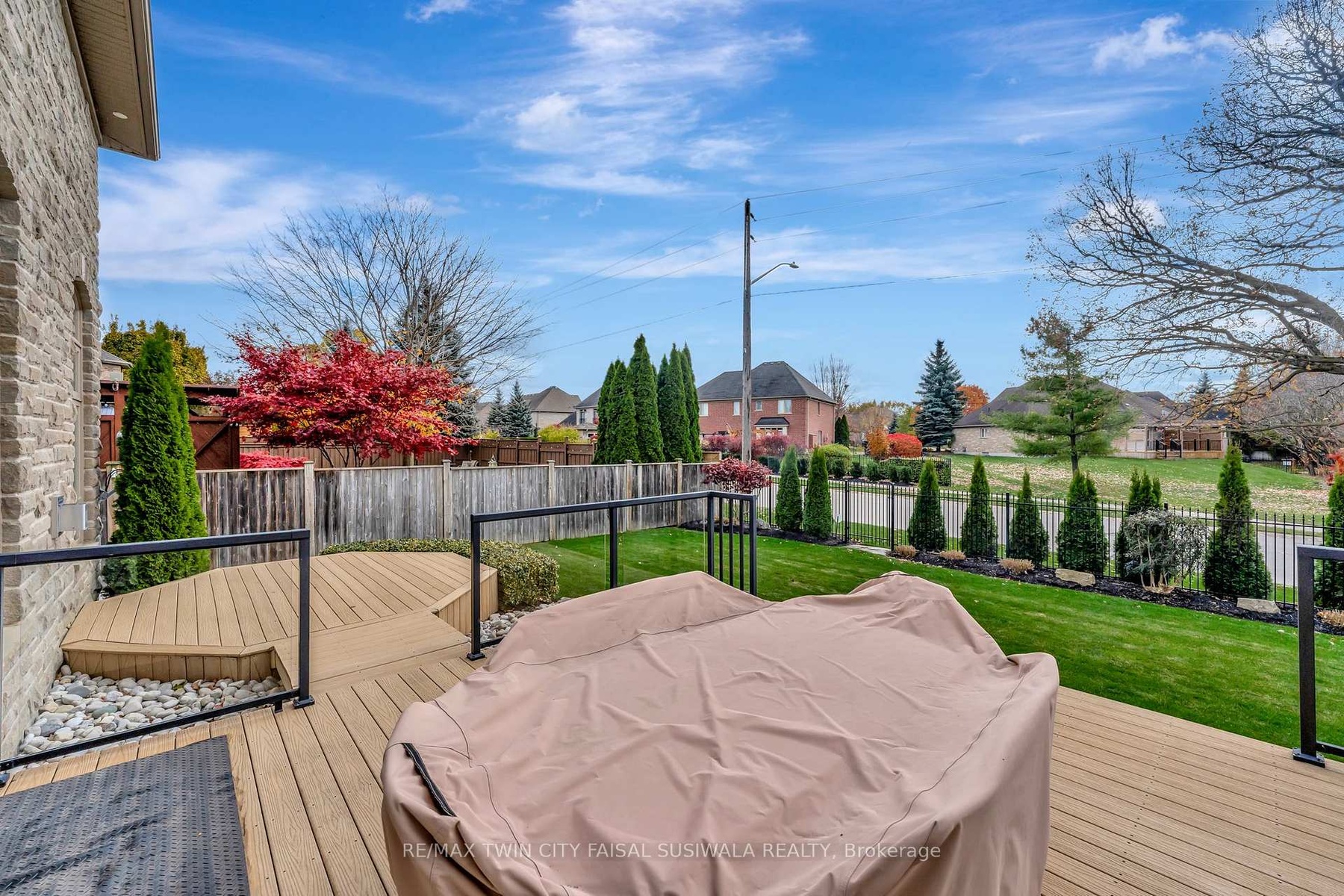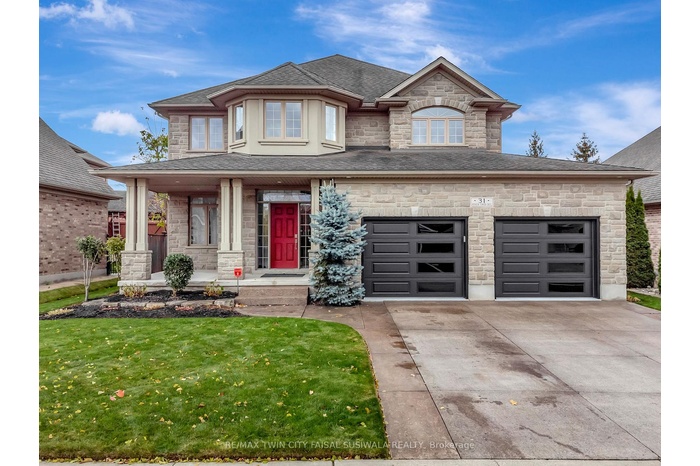 A RARE OFFERING IN DEER RIDGE ESTATES. 31 Pioneer Tower Crescent - a beautifully crafted executive residence nestled in one of Kitchener's most exclusive and sought-after neighbourhoods. This premier location places you just minutes from the 401, yet steps from serene Grand River Valley trails, Pride Stables, and the private and prestigious Deer Ridge Golf Course. Here, you truly have the best of both worlds - refined living with nature at your doorstep. This Heisler custom-built all-stone two-storey home offers exceptional craftsmanship and thoughtful design throughout. The grand foyer opens into a bright and elegant main floor, where natural light pours into the two-storey great room with soaring windows that look out over the backyard. A main floor office provides the ideal space for working from home, while the formal living and dining rooms welcome family gatherings and celebrations. The heart of the home is the spacious kitchen and oversized breakfast area, finished with granite counters and a large island with seating. The seamless walkout leads you to the expansive composite deck. Upstairs, you'll find 4 generous bedrooms, including 2 private ensuite bedrooms and a shared Jack-and-Jill bathroom for the remaining two - an ideal layout for families. A unique feature of this home is the dual staircase design - one for everyday family living and another that historically served as a nanny staircase. The fully finished lower level adds even more living space and character, with a stylish recreation area, full bar, games/entertainment zone, and a spa retreat room with a hot tub - creating an ideal place to unwind, host, or gather.