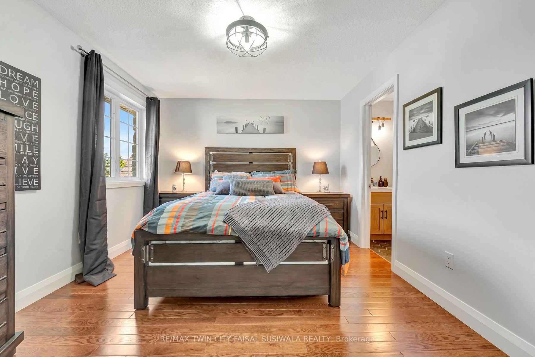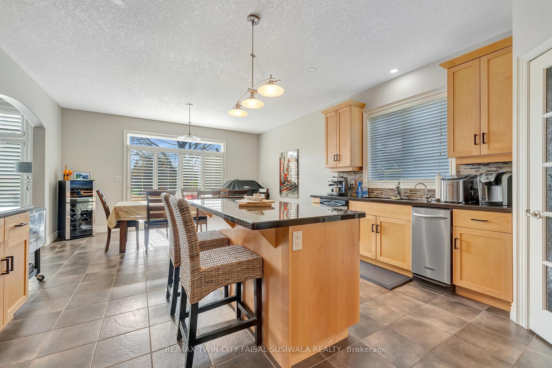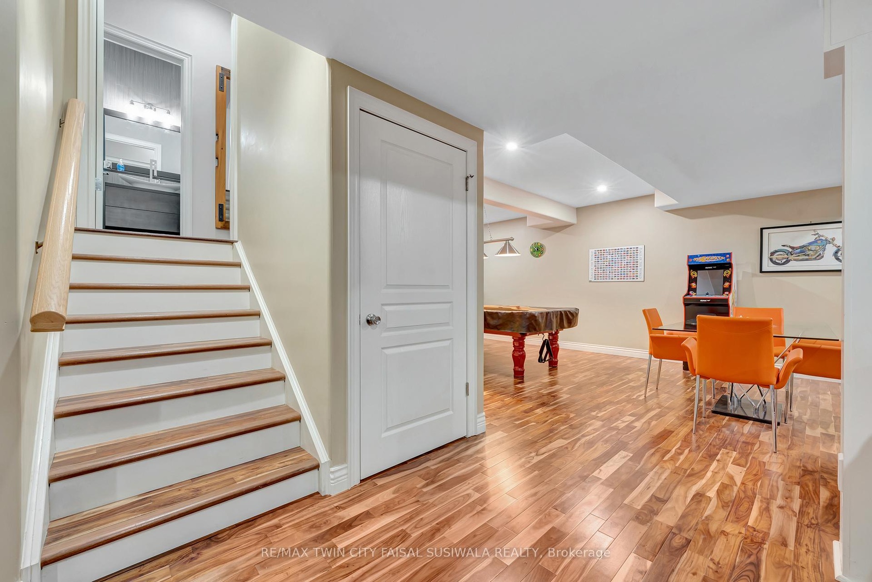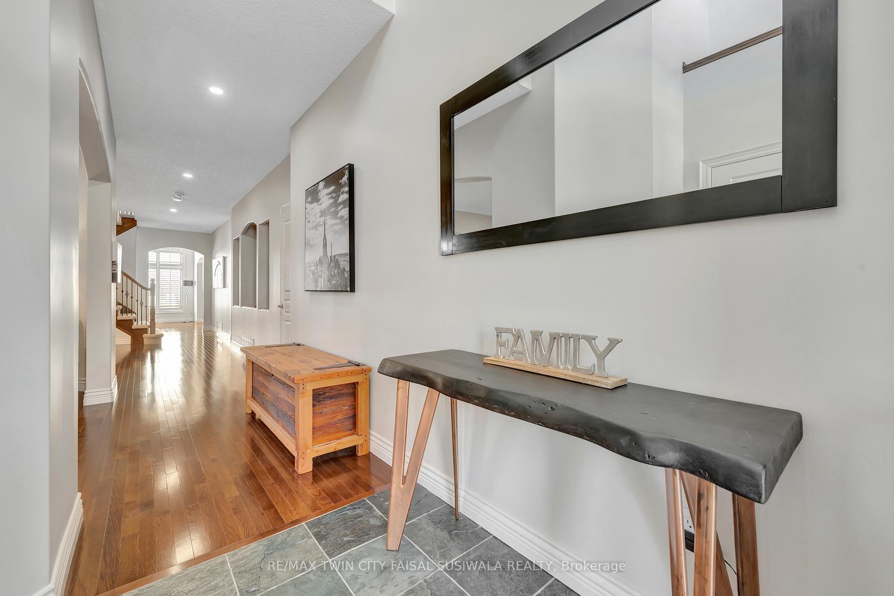 A RARE OFFERING IN DEER RIDGE ESTATES. 31 Pioneer Tower Crescent - a beautifully crafted executive residence nestled in one of Kitchener's most exclusive and sought-after neighbourhoods. This premier location places you just minutes from the 401, yet steps from serene Grand River Valley trails, Pride Stables, and the private and prestigious Deer Ridge Golf Course. Here, you truly have the best of both worlds - refined living with nature at your doorstep. This Heisler custom-built all-stone two-storey home offers exceptional craftsmanship and thoughtful design throughout. The grand foyer opens into a bright and elegant main floor, where natural light pours into the two-storey great room with soaring windows that look out over the backyard. A main floor office provides the ideal space for working from home, while the formal living and dining rooms welcome family gatherings and celebrations. The heart of the home is the spacious kitchen and oversized breakfast area, finished with granite counters and a large island with seating. The seamless walkout leads you to the expansive composite deck. Upstairs, you'll find 4 generous bedrooms, including 2 private ensuite bedrooms and a shared Jack-and-Jill bathroom for the remaining two - an ideal layout for families. A unique feature of this home is the dual staircase design - one for everyday family living and another that historically served as a nanny staircase. The fully finished lower level adds even more living space and character, with a stylish recreation area, full bar, games/entertainment zone, and a spa retreat room with a hot tub - creating an ideal place to unwind, host, or gather.