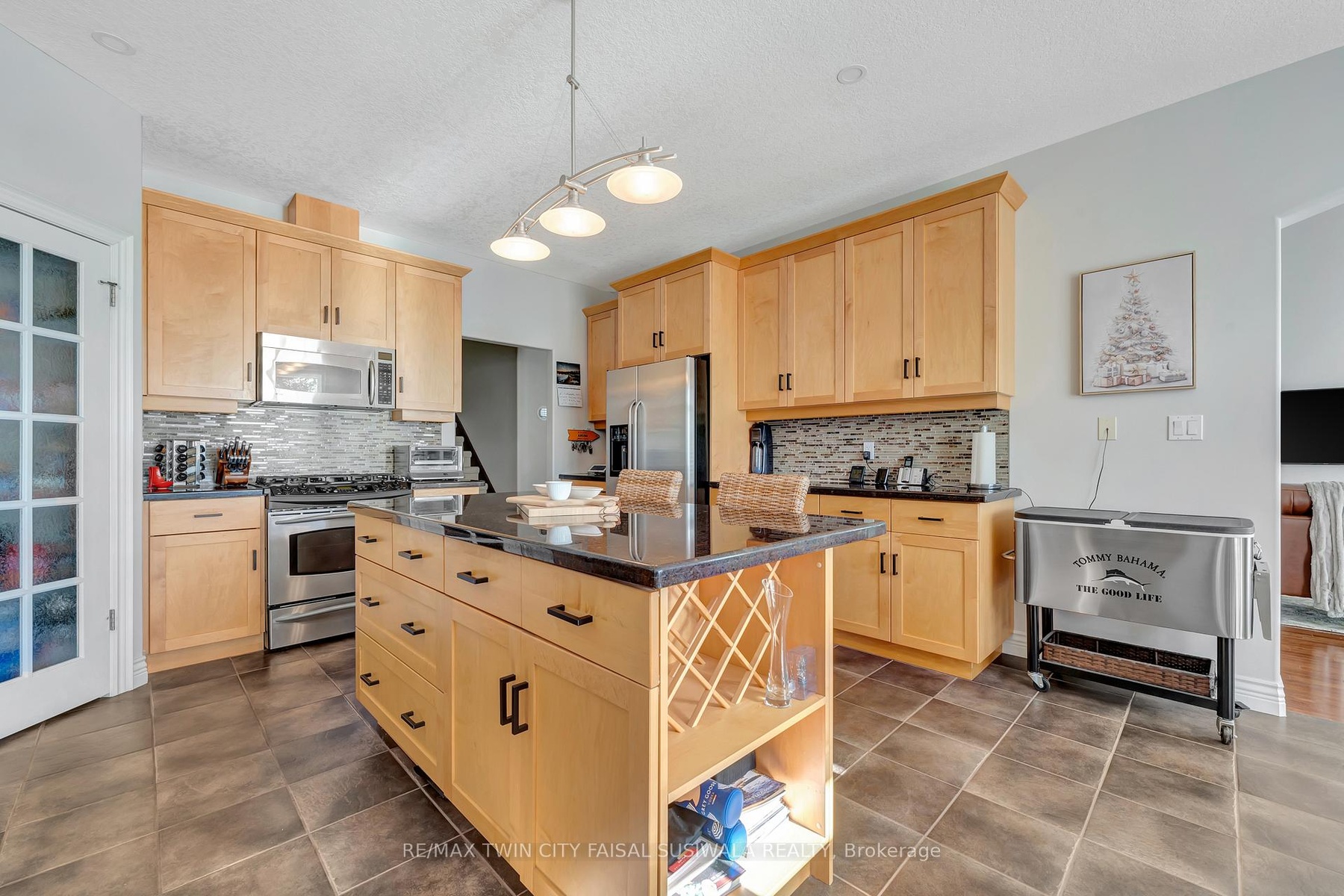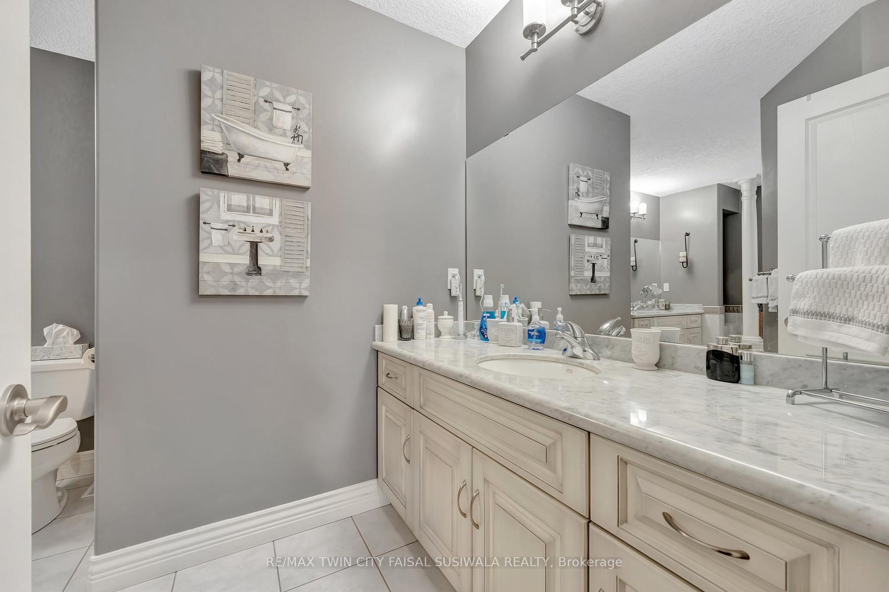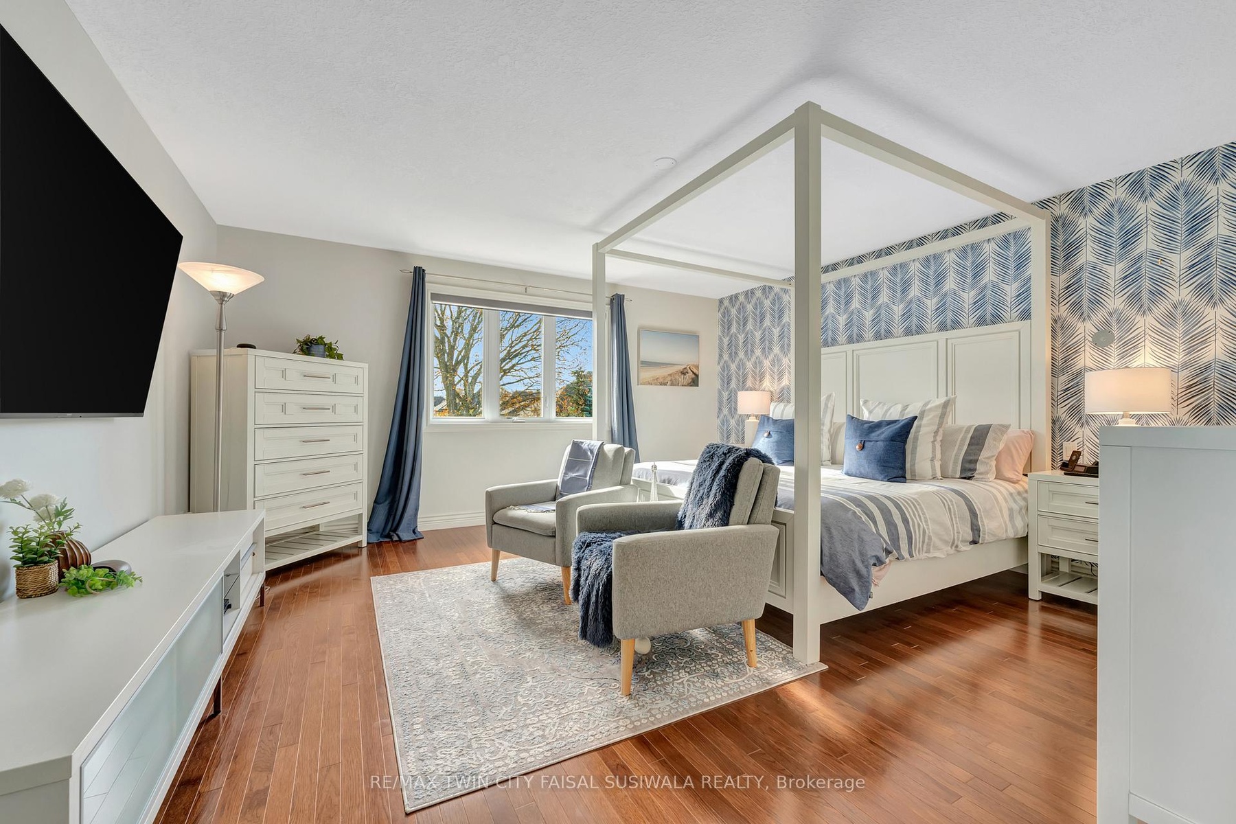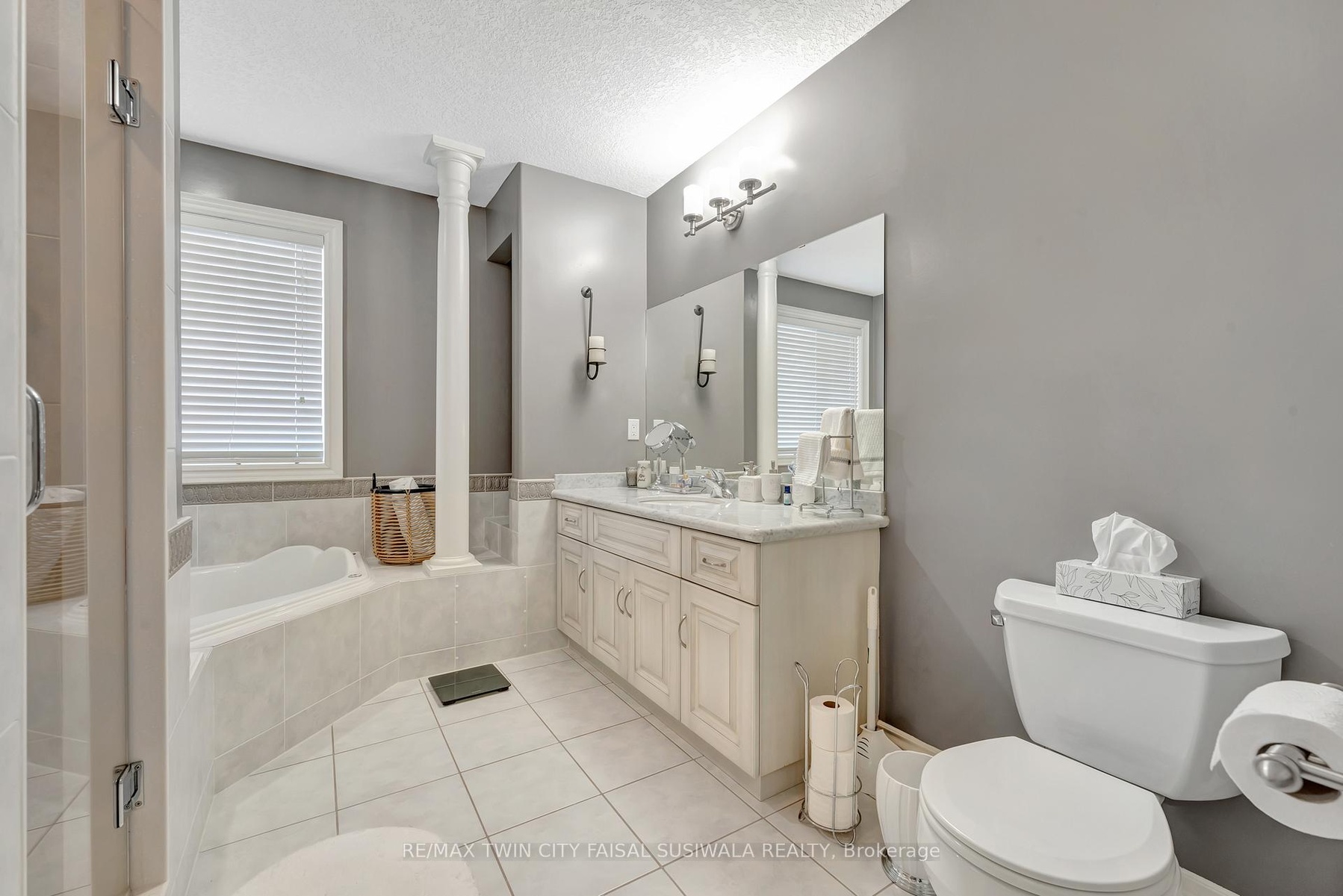 A RARE OFFERING IN DEER RIDGE ESTATES. 31 Pioneer Tower Crescent - a beautifully crafted executive residence nestled in one of Kitchener's most exclusive and sought-after neighbourhoods. This premier location places you just minutes from the 401, yet steps from serene Grand River Valley trails, Pride Stables, and the private and prestigious Deer Ridge Golf Course. Here, you truly have the best of both worlds - refined living with nature at your doorstep. This Heisler custom-built all-stone two-storey home offers exceptional craftsmanship and thoughtful design throughout. The grand foyer opens into a bright and elegant main floor, where natural light pours into the two-storey great room with soaring windows that look out over the backyard. A main floor office provides the ideal space for working from home, while the formal living and dining rooms welcome family gatherings and celebrations. The heart of the home is the spacious kitchen and oversized breakfast area, finished with granite counters and a large island with seating. The seamless walkout leads you to the expansive composite deck. Upstairs, you'll find 4 generous bedrooms, including 2 private ensuite bedrooms and a shared Jack-and-Jill bathroom for the remaining two - an ideal layout for families. A unique feature of this home is the dual staircase design - one for everyday family living and another that historically served as a nanny staircase. The fully finished lower level adds even more living space and character, with a stylish recreation area, full bar, games/entertainment zone, and a spa retreat room with a hot tub - creating an ideal place to unwind, host, or gather.