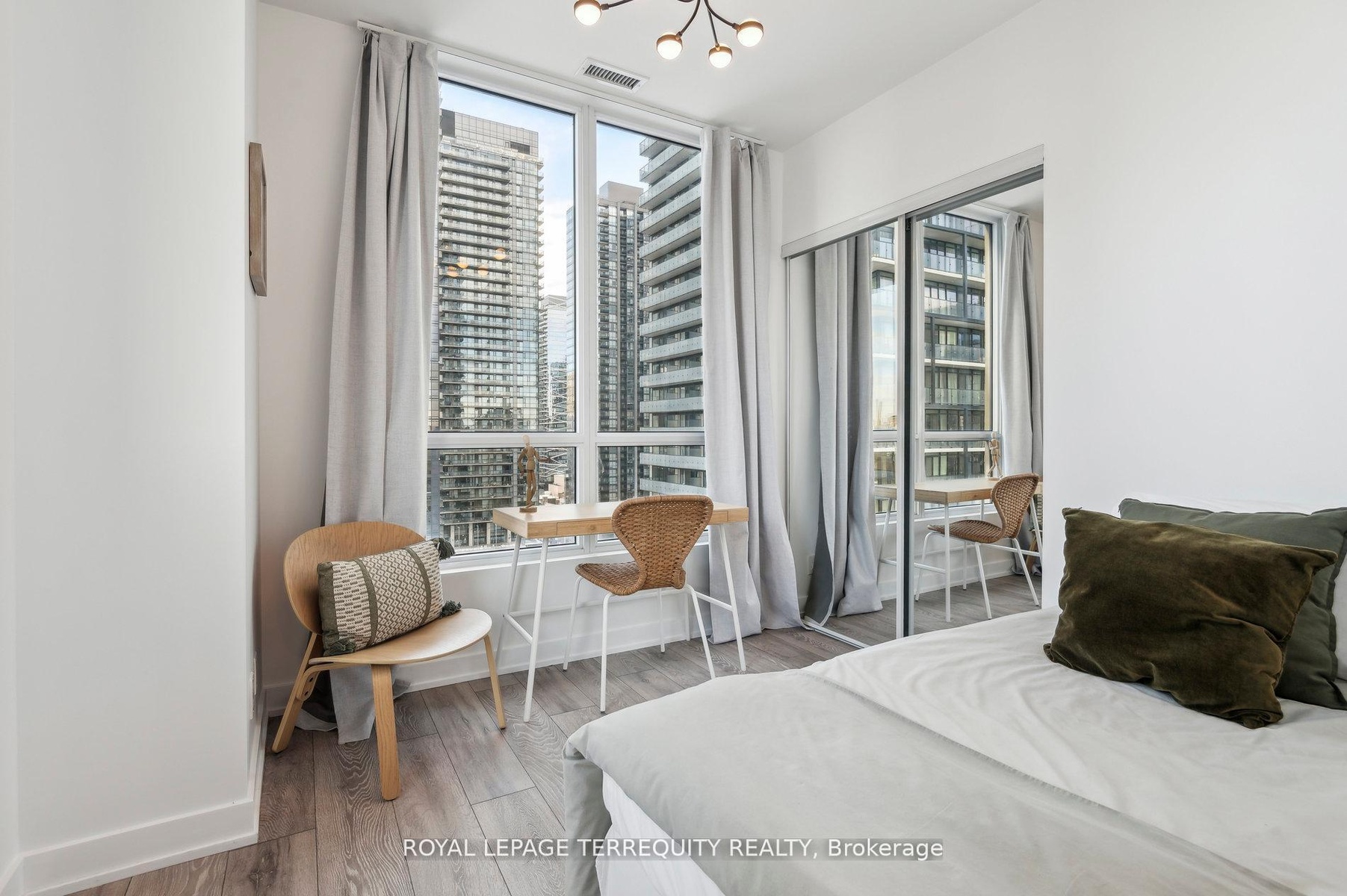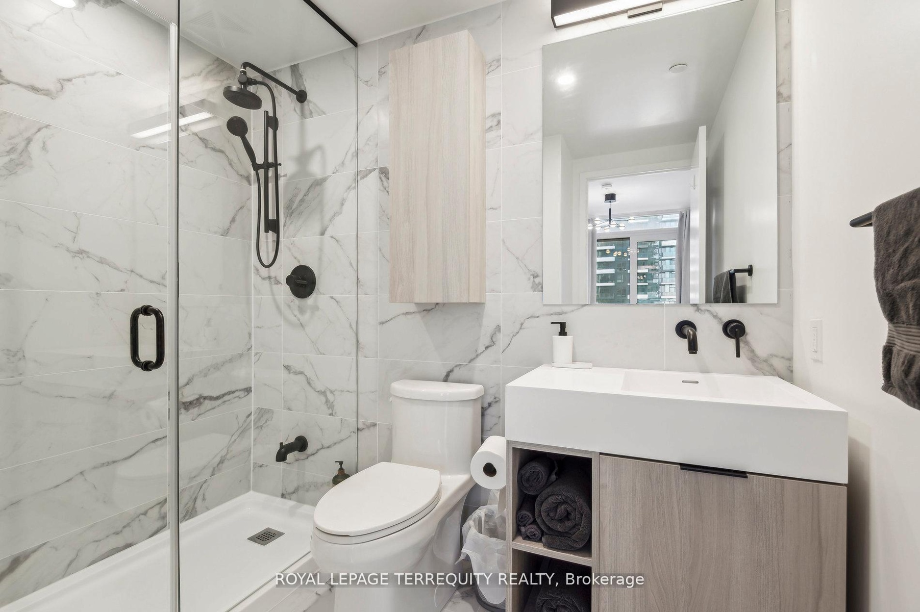 Welcome to this thoughtfully designed and upgraded 3-bedroom, 2-bathroom condo in the highly sought-after Peter & Adelaide Condos, perfectly situated in the vibrant heart of downtown. This stunning unit boasts a functional and stylish layout, featuring three spacious bedrooms, each filled with natural light from large windows and offering oversized or walk-in closets for ample storage. The primary bedroom is a private retreat with its own exclusive balcony, perfect for enjoying a quiet moment or taking in the northeast views of Toronto. The main living area opens to a second balcony, providing an additional outdoor space to soak in the city's energy. The unit has been upgraded with modern touches, including pot lights in the living area and overhead light fixtures in all bedrooms, adding both style and practicality. The bathrooms are beautifully appointed, with the master ensuite featuring a spacious walk-in shower and the second bathroom equipped with a deep soaker tub for ultimate relaxation. Located at the bustling Peter and Adelaide intersection, this condo offers unmatched convenience with a perfect 100 walk score, placing you steps away from world-class dining, shopping, and entertainment. Transit options are right at your doorstep, making it easy to explore all Toronto has to offer. The unit includes one parking spot and one locker, ensuring maximum convenience. Residents of Peter & Adelaide Condos enjoy access to premium amenities, including a rooftop pool with stunning city views, a state-of-the-art gym, and 24-hour concierge services. Renowned for its exceptional management, this building is one of Toronto's best-maintained and most desirable addresses. Whether you're a family, professional, or urban enthusiast, this condo offers the perfect blend of style, comfort, and city living. Don't miss this opportunity to make it yours!