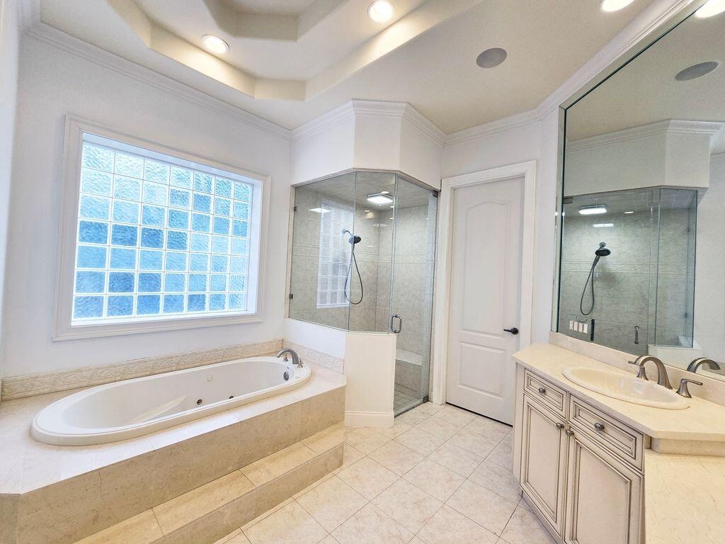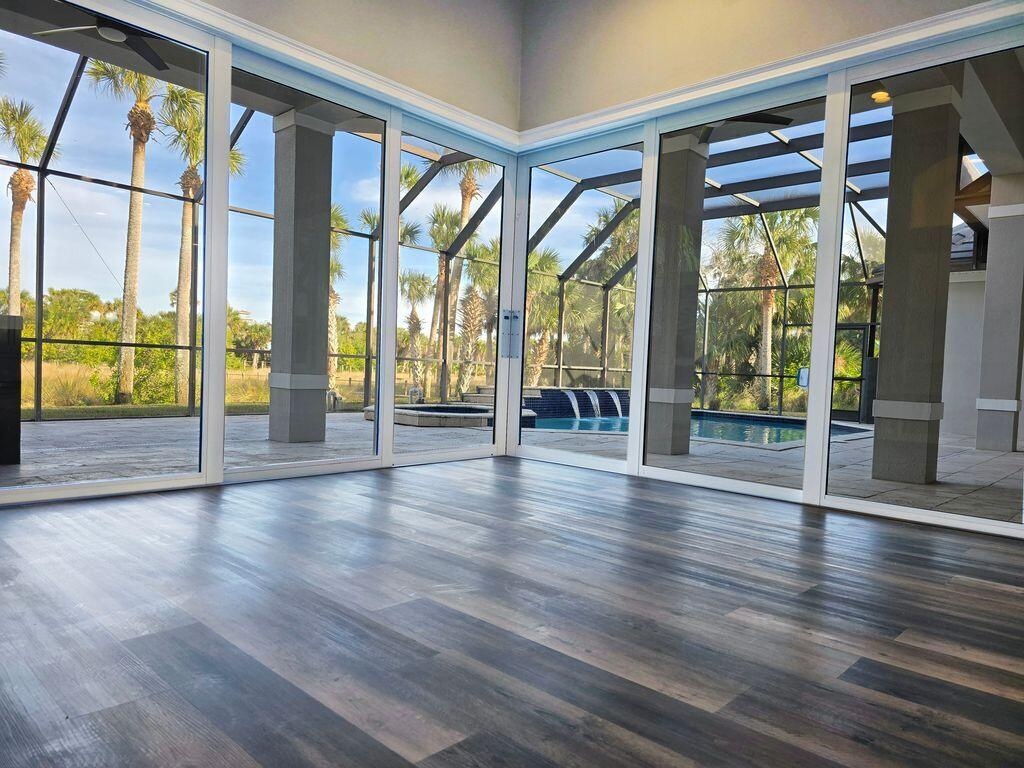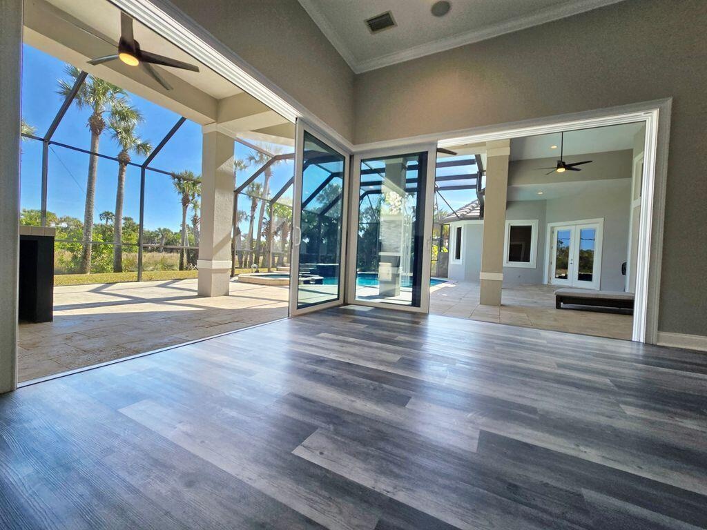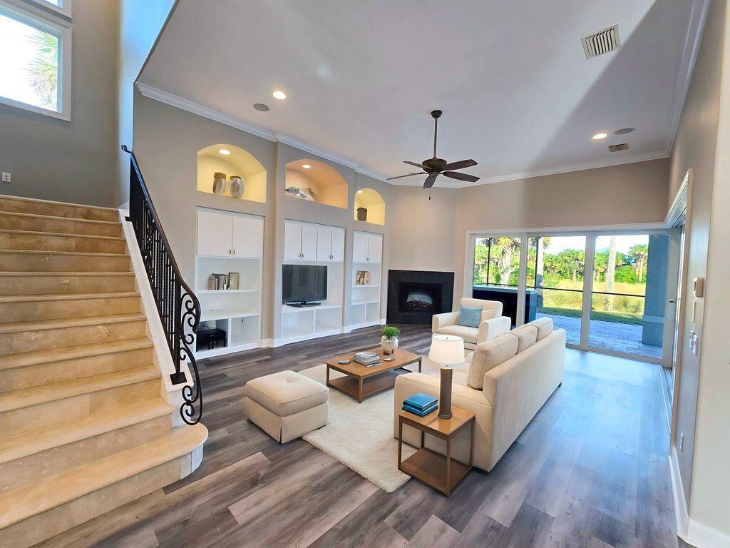 One or more photo(s) has been virtually staged. Hands down best value in Island Estates. Priced under $323/sf, materially below current listings (approx. $394-$866/sf at time of posting) despite hundreds of thousands in 2024-2025 improvements, a newer concrete tile roof, and a very favorable insurance profile. A deal too good to ignore.Layout: Grand entry with 17 ft ceilings and polished 24x24 travertine. Approx. 70 low-e windows and wide sliders open to a heated pool and spa with six waterfalls, a travertine patio, covered lanai, and summer kitchen. Concrete-block construction. Primary suite on main. Upstairs: 2 bedrooms, 2 full baths, and a dedicated theater. Downstairs: 3 bedrooms and 4 full baths plus all main living areas. Total 5 bedrooms and 6 full baths.