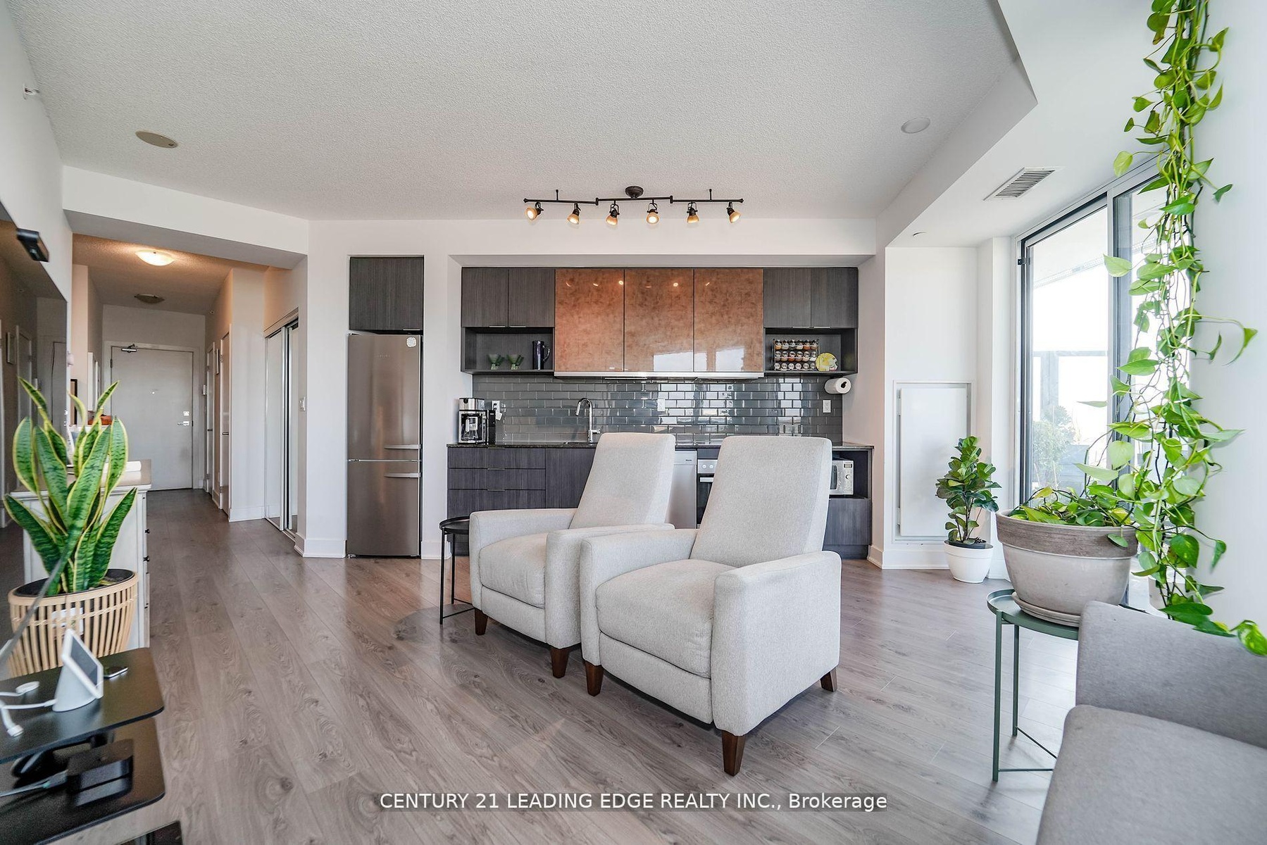 Stylish Flaire Condos Located In The Trendiest Neighbourhood Of Toronto - Shops At Don Mills! Fantastic Restaurants And Fast Food Joints, Upscale Grocery Chains Like McEwan's And Metro, And A Cineplex VIP Theatre Right In Your Backyard! Enjoy Outdoor Seating, Seasonal Pop-Up Markets, And Patios In The Charming Shops' Town Square. The Unit Features A Functional Layout With 1 Bedroom And A Large Den That Can Be Converted Into A 2nd Bedroom Or Work Space. Bright And Spacious Open Concept Living With High Ceilings, Floor-To-Ceiling Windows, And Walk-Out To A Roomy 100-Sq Ft Wraparound Balcony With Unobstructed Views. Modern And Upgraded Kitchen With Custom Cabinetry, Granite Countertops, High-End Miele Built-In Appliances, And A Glossy Backsplash. 1 Parking And 1 Locker Included. Building Amenities Include A Beautiful Barbecue And Seating Area (On The Same Floor), Pet Spa, Party Room, Theatre Room, Gymnasium, A Pool Table, Bike Storage, Visitors Parking, And A 24-Hour Concierge. TTC Bus Stop At The Doorstep. Tesla Supercharger + Free Destination Chargers As Well As Other EV Chargers At Walking Distance. Trails And Parks Close By Including Edwards Gardens. This is the Perfect Blend Of Privacy And Community, Offering Space To Unwind, Socialize, Or Entertain Guests. Explore Much More in the Virtual Tour!