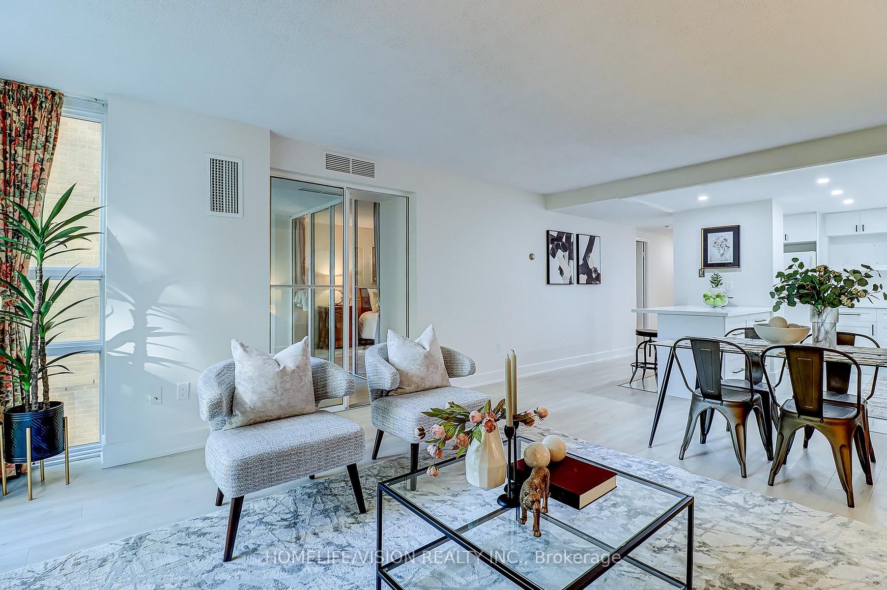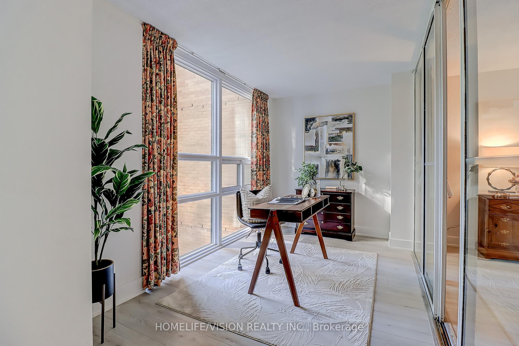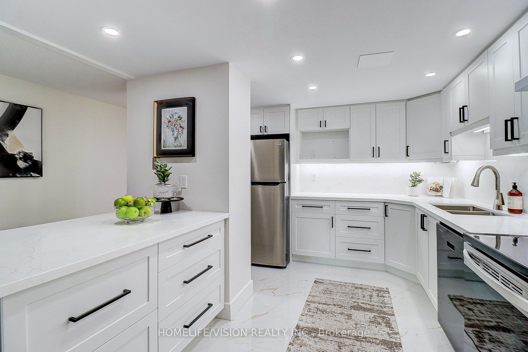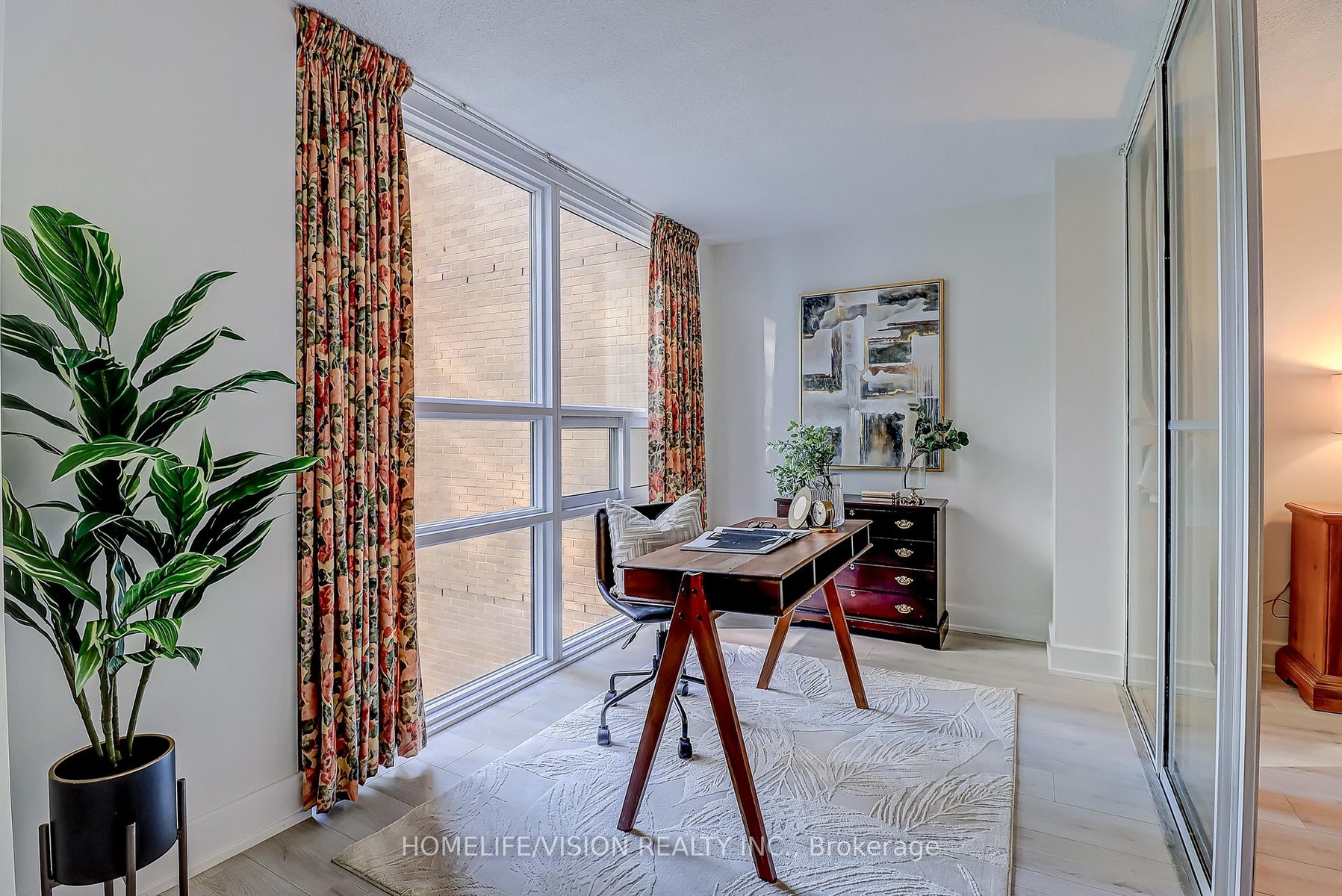 Welcome To Your Designer Dream Condo At Manhattan Place! This Upgraded 2+1 Bedroom, 2 Bath Corner Suite Offers 1,240 Sq. Ft. Of Smart, Stylish Living With A Rare Split-Bedroom Layout. The Open-Concept Living/Dining Area Is Bright And Inviting, Featuring Luxury Vinyl Flooring, Pot Lights, And Expansive Windows For Plenty Of Natural Light. The Modern Chefs Kitchen Showcases A Quartz Island With Breakfast Bar Seating, Quartz Counters & Backsplash, Integrated Stainless Steel Appliances, Built-In Fridge, And Ample Storage Perfect For Cooking And Entertaining.The Spacious Primary Bedroom Boasts A Spa-Like Ensuite And Walk-In Closet, While The Second Bedroom And Separate Den Offer Flexibility For A Guest Room, Home Office, Or Even A Third Bedroom. With Treetop Corner Views And A Warm, Modern Aesthetic, This Suite Truly Feels Like Home.Enjoy Resort-Style Amenities At Manhattan Place Including 24-Hour Concierge, Indoor Pool, Gym, Basketball Court, And Party Room. Steps To Yonge & Sheppard Subways, Whole Foods, Mel Lastman Square, Top-Rated Schools (Earl Haig SS), Shops, Cafés, Parks, And Dining. Includes 1 Parking Spot.