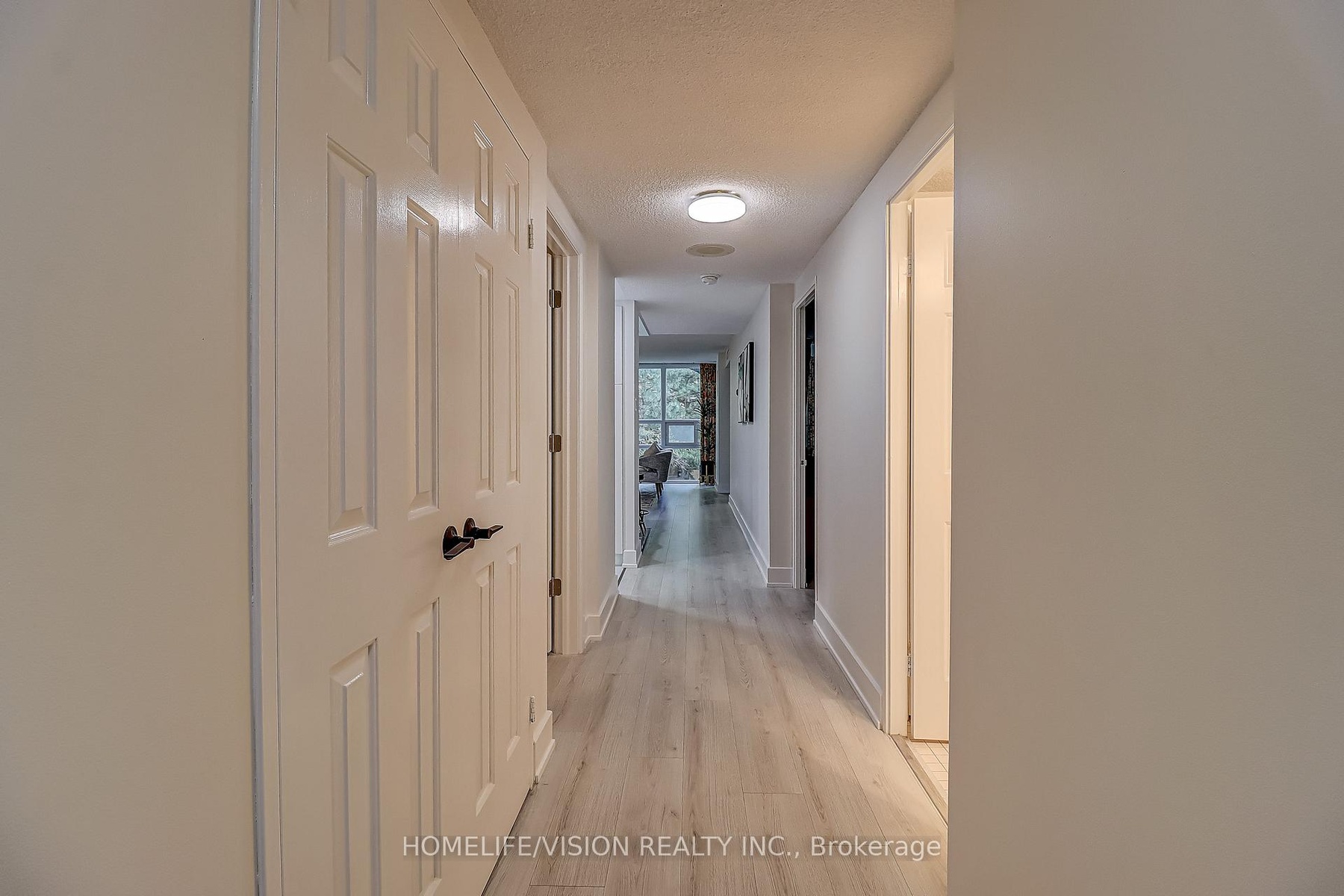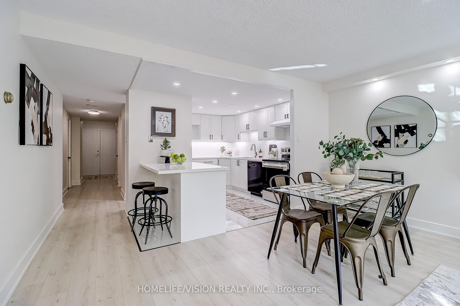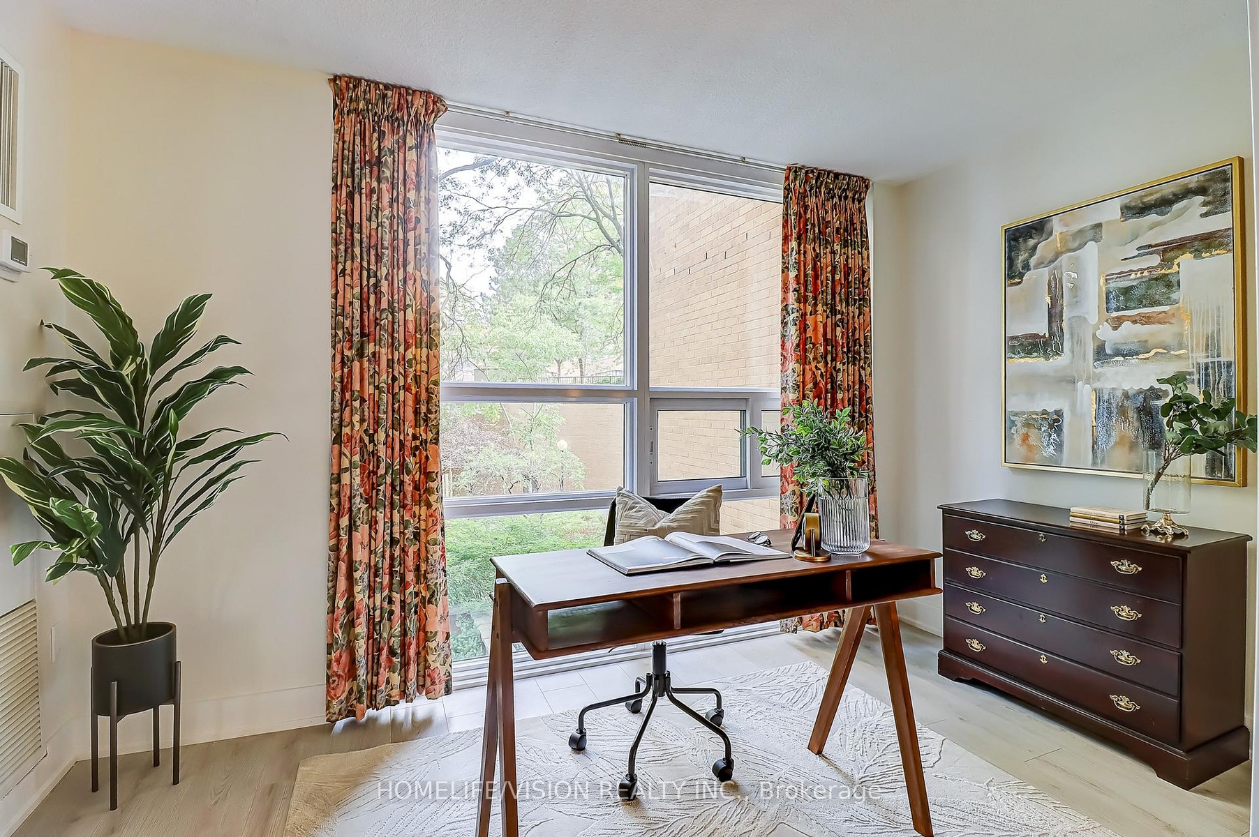 Welcome To Your Designer Dream Condo At Manhattan Place! This Upgraded 2+1 Bedroom, 2 Bath Corner Suite Offers 1,240 Sq. Ft. Of Smart, Stylish Living With A Rare Split-Bedroom Layout. The Open-Concept Living/Dining Area Is Bright And Inviting, Featuring Luxury Vinyl Flooring, Pot Lights, And Expansive Windows For Plenty Of Natural Light. The Modern Chefs Kitchen Showcases A Quartz Island With Breakfast Bar Seating, Quartz Counters & Backsplash, Integrated Stainless Steel Appliances, Built-In Fridge, And Ample Storage Perfect For Cooking And Entertaining.The Spacious Primary Bedroom Boasts A Spa-Like Ensuite And Walk-In Closet, While The Second Bedroom And Separate Den Offer Flexibility For A Guest Room, Home Office, Or Even A Third Bedroom. With Treetop Corner Views And A Warm, Modern Aesthetic, This Suite Truly Feels Like Home.Enjoy Resort-Style Amenities At Manhattan Place Including 24-Hour Concierge, Indoor Pool, Gym, Basketball Court, And Party Room. Steps To Yonge & Sheppard Subways, Whole Foods, Mel Lastman Square, Top-Rated Schools (Earl Haig SS), Shops, Cafés, Parks, And Dining. Includes 1 Parking Spot.