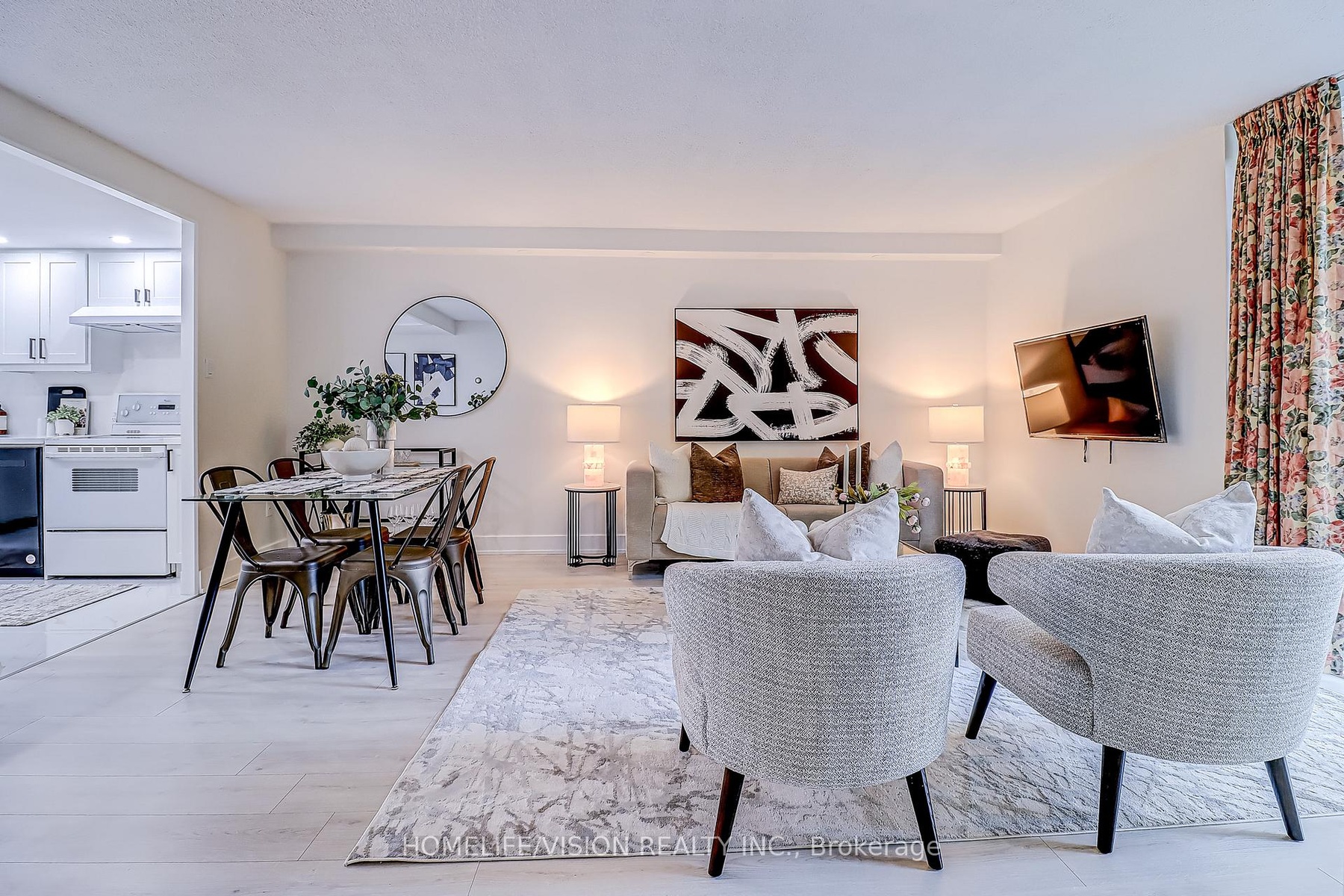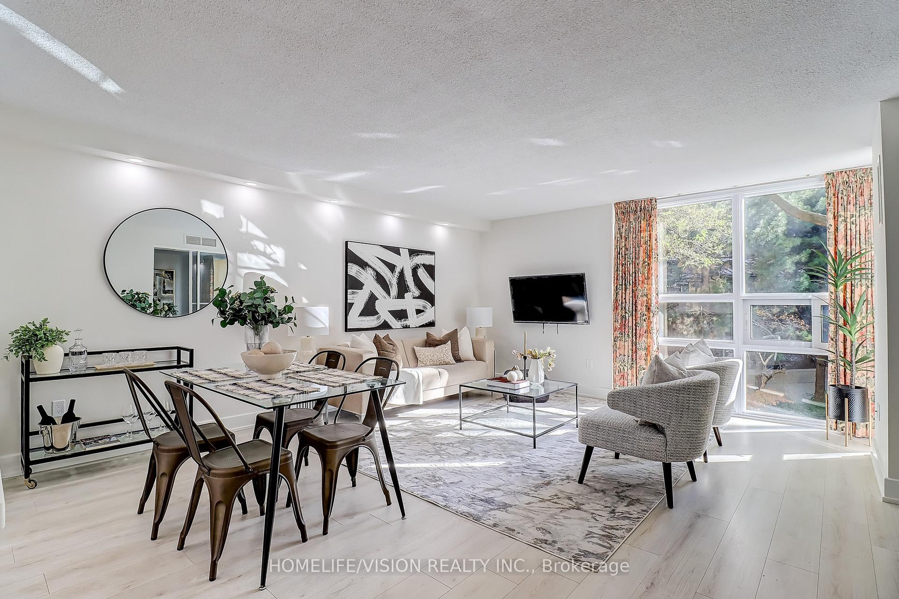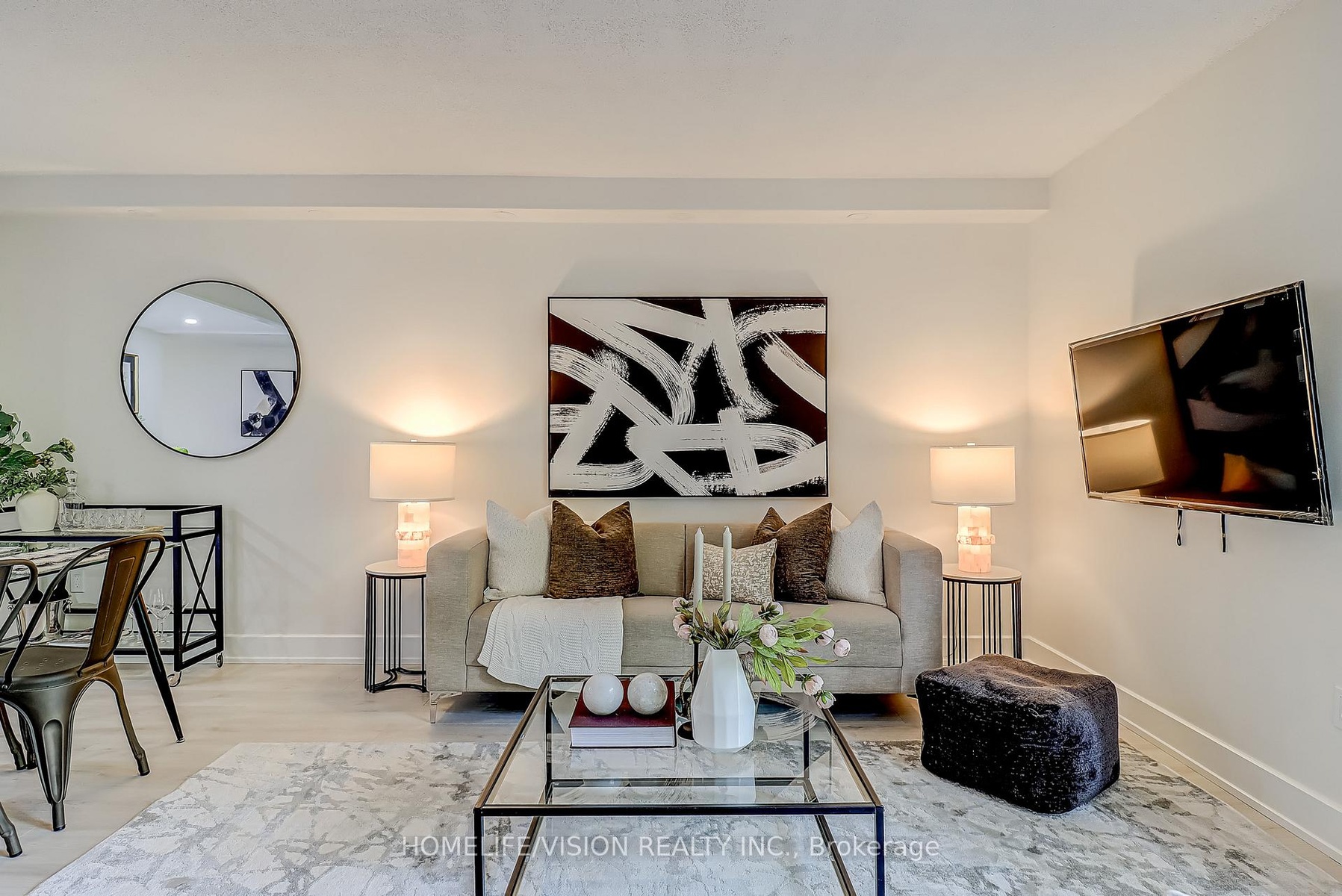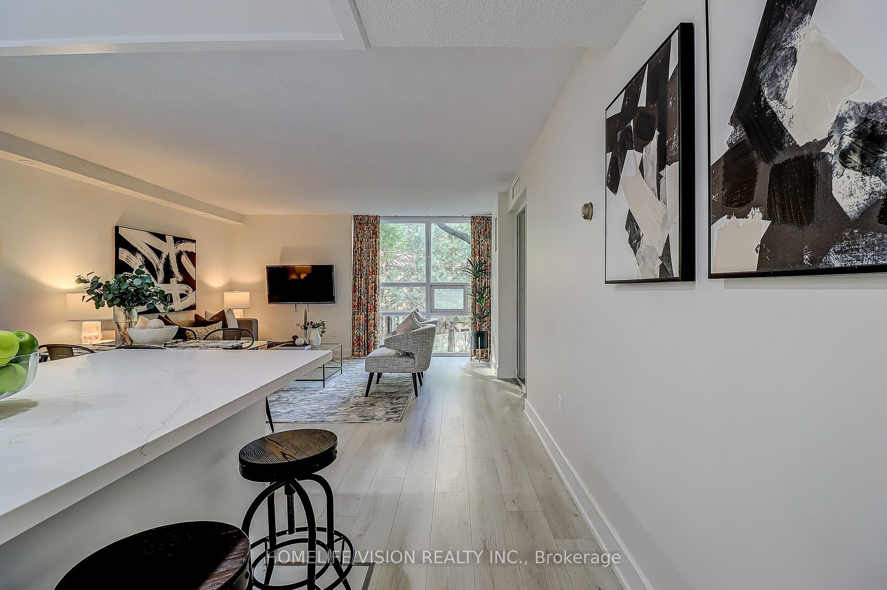 Welcome To Your Designer Dream Condo At Manhattan Place! This Upgraded 2+1 Bedroom, 2 Bath Corner Suite Offers 1,240 Sq. Ft. Of Smart, Stylish Living With A Rare Split-Bedroom Layout. The Open-Concept Living/Dining Area Is Bright And Inviting, Featuring Luxury Vinyl Flooring, Pot Lights, And Expansive Windows For Plenty Of Natural Light. The Modern Chefs Kitchen Showcases A Quartz Island With Breakfast Bar Seating, Quartz Counters & Backsplash, Integrated Stainless Steel Appliances, Built-In Fridge, And Ample Storage Perfect For Cooking And Entertaining.The Spacious Primary Bedroom Boasts A Spa-Like Ensuite And Walk-In Closet, While The Second Bedroom And Separate Den Offer Flexibility For A Guest Room, Home Office, Or Even A Third Bedroom. With Treetop Corner Views And A Warm, Modern Aesthetic, This Suite Truly Feels Like Home.Enjoy Resort-Style Amenities At Manhattan Place Including 24-Hour Concierge, Indoor Pool, Gym, Basketball Court, And Party Room. Steps To Yonge & Sheppard Subways, Whole Foods, Mel Lastman Square, Top-Rated Schools (Earl Haig SS), Shops, Cafés, Parks, And Dining. Includes 1 Parking Spot.