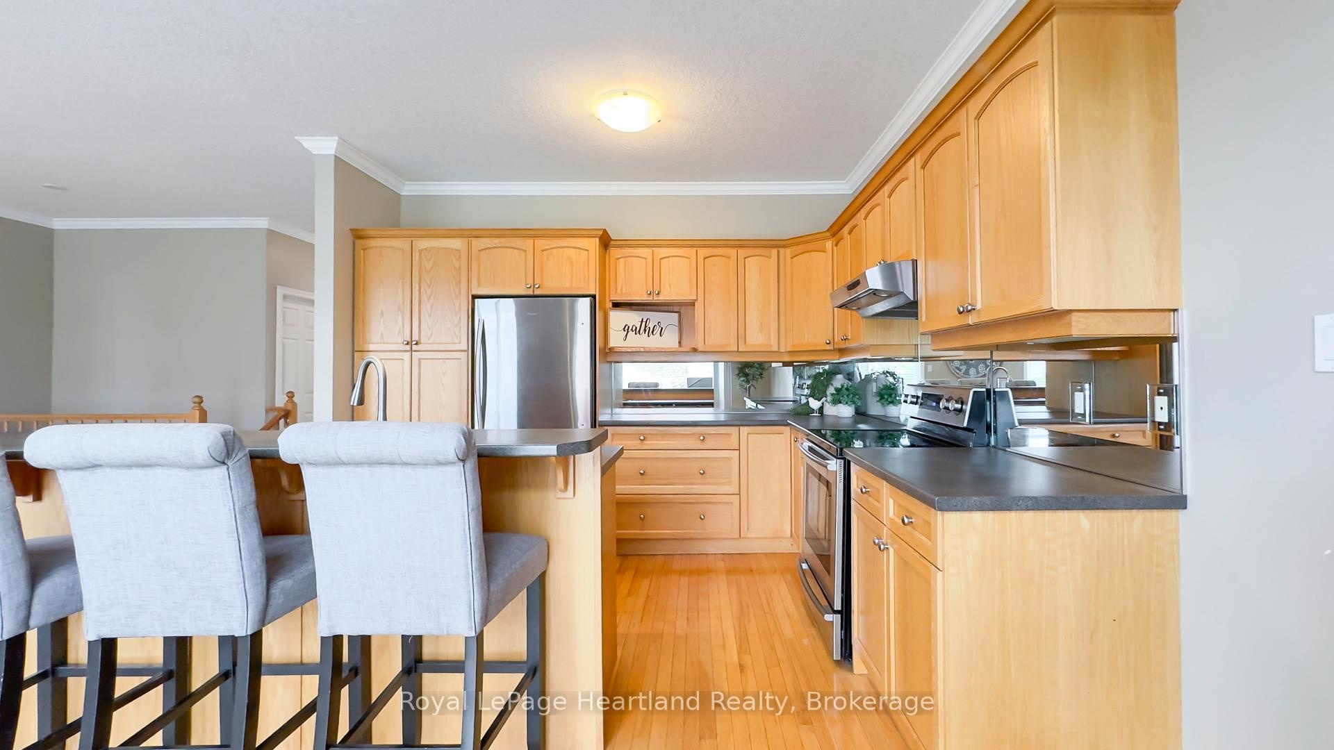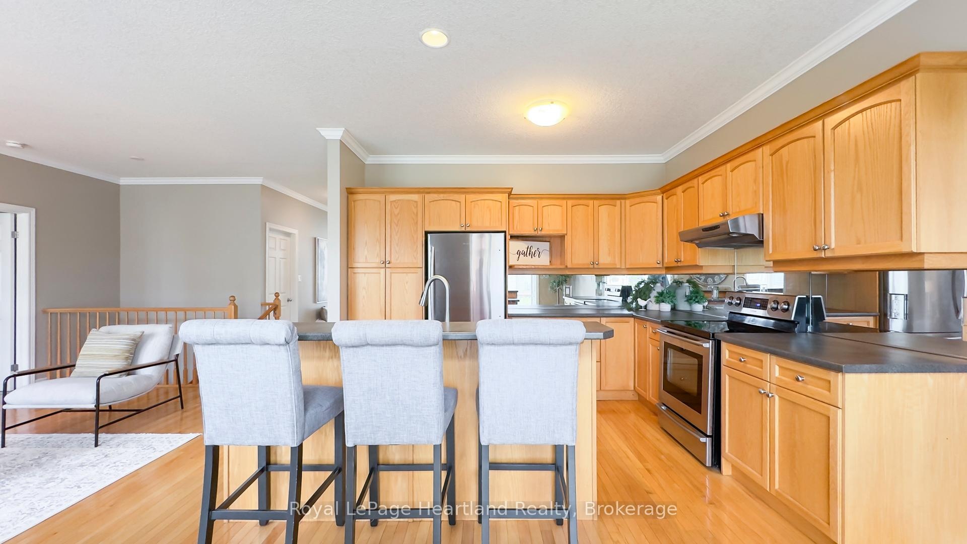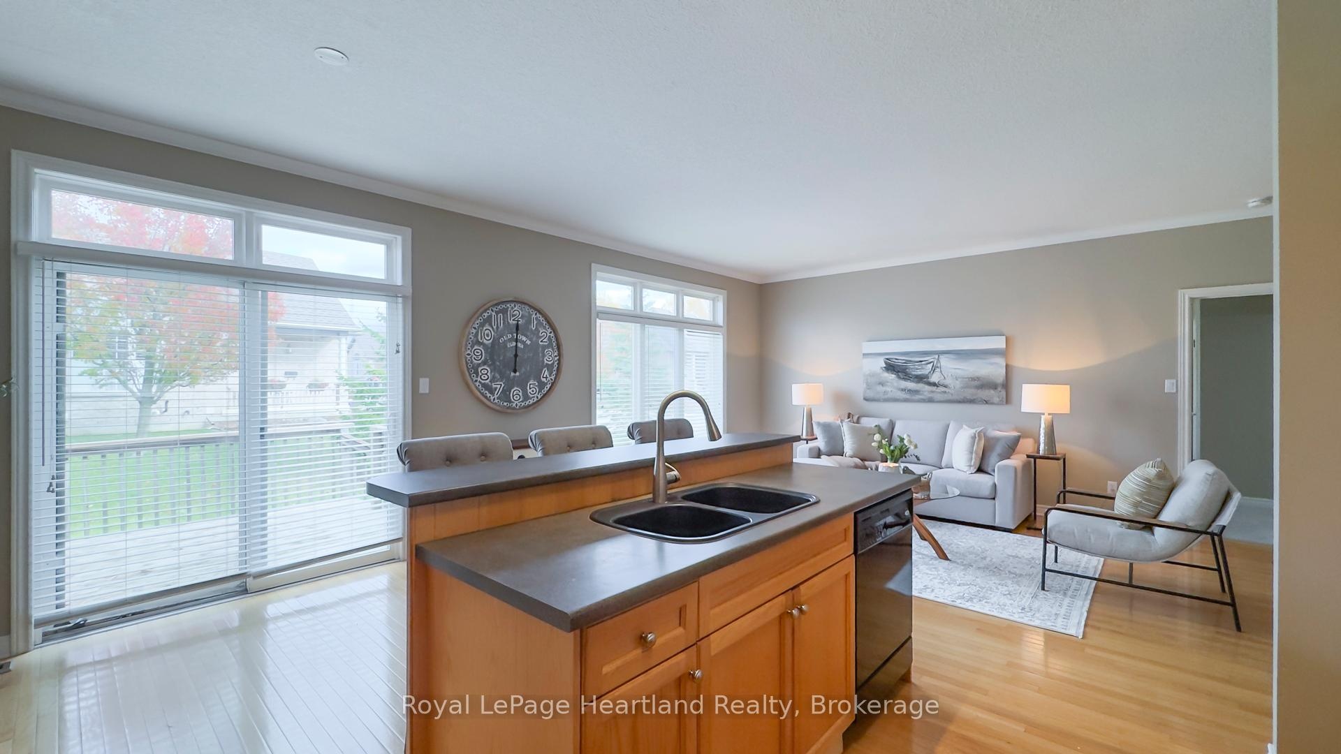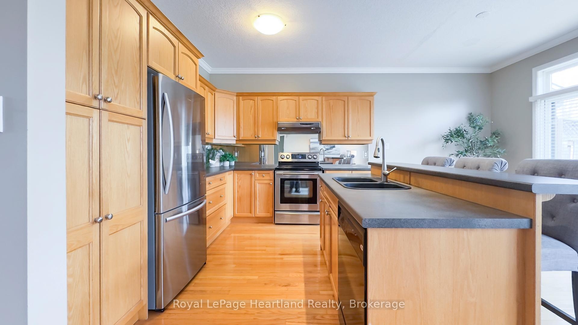 Easy Condo Living in North London's Prestigious Meadows of Sunningdale! Experience the ease of one-floor living in this bright and inviting middle-unit townhome, located in one of North London's most desirable communities. Offering over 2,900 sq. ft. of finished living space, this home blends comfort, functionality, and timeless design. The open-concept main floor features 9-ft ceilings, hardwood floors, and abundant natural light-ideal for entertaining or relaxing at home. The kitchen boasts warm maple cabinetry, stainless steel appliances (dishwasher & stove 2023, refrigerator 2021), and a large island with seating for three. From the kitchen, step out to your private deck surrounded by mature trees-perfect for morning coffee or evening BBQs. The spacious primary bedroom includes a walk-in closet and ensuite, while the second bedroom is conveniently located near a full bath. A main-floor pantry includes a second laundry hook-up, giving you flexible options for convenience. The fully finished lower level expands your living space with a cozy family room, full bathroom, additional bedroom, and a versatile bonus room currently used as a gym-easily converted into a fourth bedroom or home office. There's another laundry hook-up downstairs, plus generous storage space in the utility room. Perfectly situated close to University Hospital, Masonville Place, transit, parks, and walking trails, this home offers the ideal combination of luxury, lifestyle, and low-maintenance living. Don't miss your chance to call The Meadows of Sunningdale home-where convenience meets sophistication.