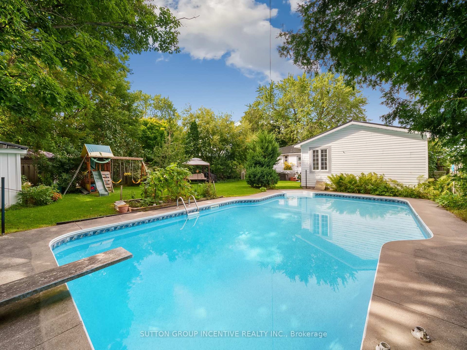 2 Derby Street is a well-kept bungalow in Orillia's established North Ward, a peaceful area known for mature trees, larger lots, and a strong community feel. The home offers three bedrooms on the main level and a fourth bedroom in the finished basement, creating a flexible layout that supports comfortable living, guest space, or work-from-home needs. The backyard is a major highlight-the in-ground pool has been thoughtfully maintained over the years and is ready for enjoyment. It's an inviting and private setting designed for outdoor enjoyment, summer gatherings, and relaxed afternoons by the water. Inside, the finished basement adds a full bathroom and a rec room with newer vinyl flooring. Recent care to the home includes roof repairs completed in 2025 and fresh interior paint that brightens the main living spaces. The detached one-and-a-half-car garage, built in the early 2000s, provides excellent storage, hobby space, or secure parking. The location adds meaningful value-Orchard Park Public School, Park Street Collegiate (Orillia Secondary School), Patrick Fogarty Catholic Secondary School, and École Samuel-de-Champlain (the local French-language school) are all within easy reach. Food Basics, Zehrs, and other daily conveniences are only minutes away. Highway 11 access is close for commuting, and Lake Couchiching and Couchiching Beach Park offer swimming, walking paths, and year-round recreation just a short distance from the property. This is a comfortable, cared-for home in a well-established neighbourhood, offering a great yard, an inviting pool area, and the everyday convenience that makes North Ward living so appealing.