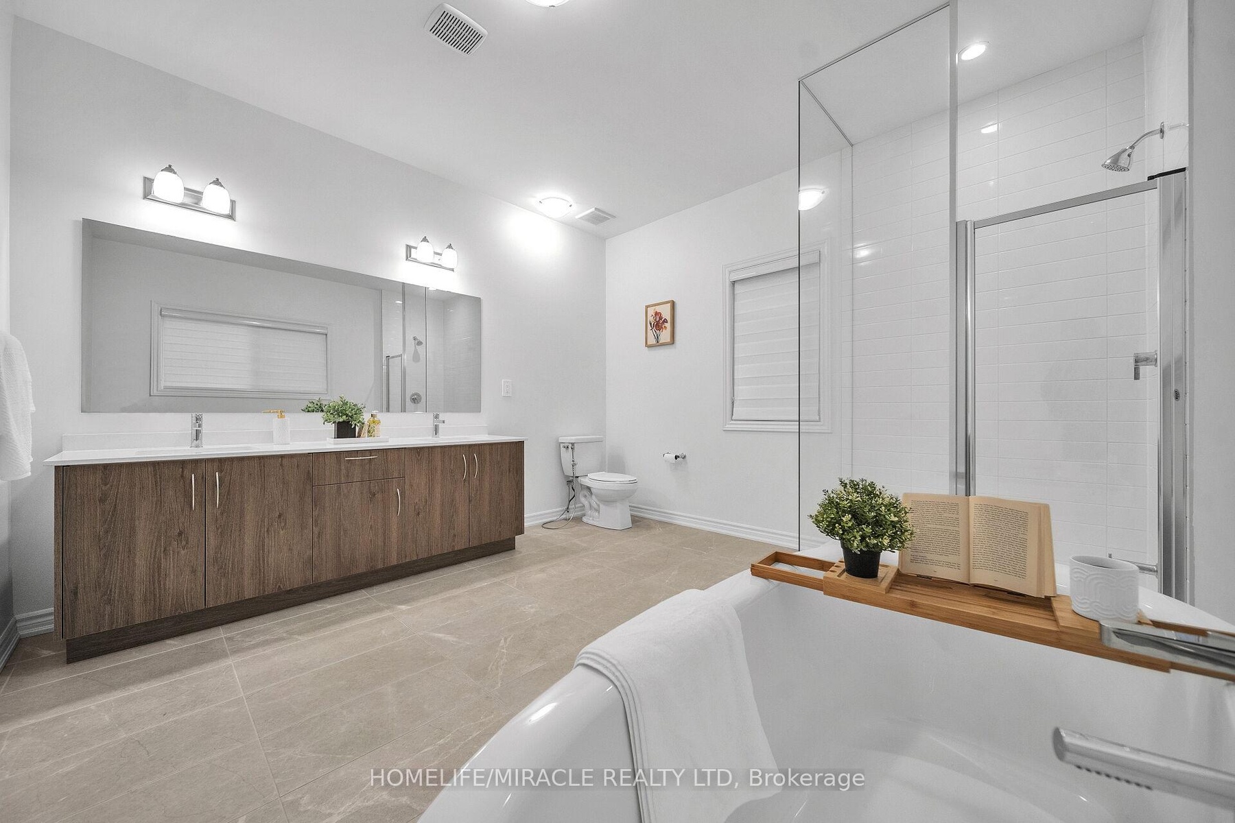 Absolutely Stunning, Brand New, Never-Lived-In Detached Home in One of Milton's Most Desirable Communities! This Premium 45 Ft Lot Boasts 3400 Sq Ft of Thoughtfully Designed Living Space Featuring 4 Spacious Bedrooms plus Den, 3.5 Bathrooms, and a Versatile Loft That Can Be Converted Into a 5th Bedroom or Home Office. Enjoy 9-Foot Ceilings on Both Floors, Separate Living and Dining Areas, and a Bright, Open-Concept Family Room Perfect for Entertaining. The Gourmet Kitchen is Equipped with Built-In Stainless Steel Appliances and Elegant Quartz Countertops. The Primary Suite Offers His and Her Walk-In Closets and a Luxurious Ensuite. An Additional Bedroom Also Includes a Walk-In Closet for Added Convenience. Premium Hardwood Flooring Throughout No Carpet in the Entire Home. Main Floor Laundry and Builder-Finished Side Entrance Provide Excellent Future Potential for a Basement Apartment or In-Law Suite. No Sidewalk Park Up to 4 Cars on the Driveway Plus 2 in the Garage. Surrounded by Upscale Homes and Located Close to Top-Rated Schools, Parks, Milton GO, Sherwood Community Centre, Hospital, Shopping, and Easy Access to Hwy 401 & 407. This Home Truly Combines Luxury, Space, and Location A Must See!