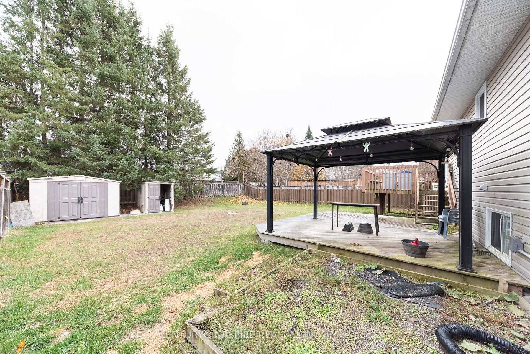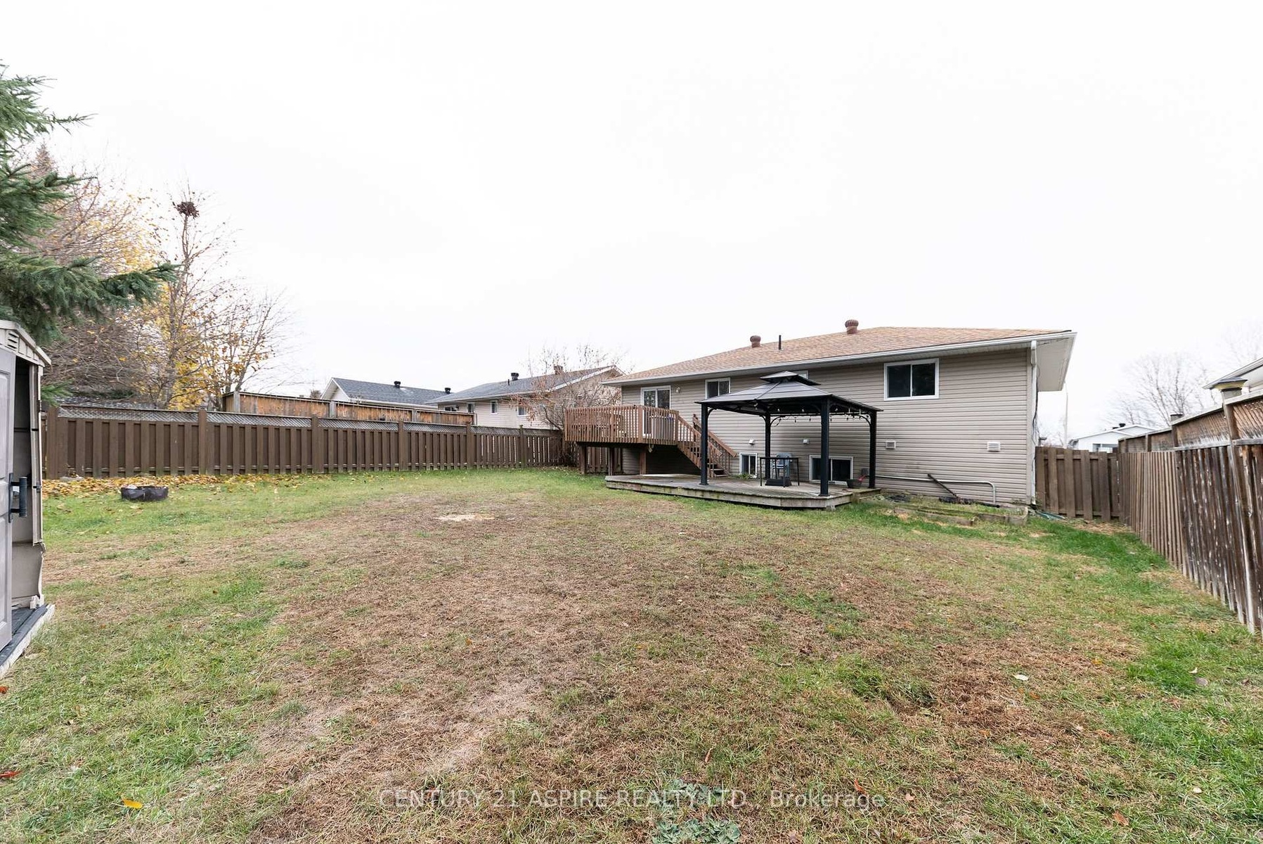 Quick closing available!Well appointed 3+1 bedroom, 2 bathroom Hi Ranch home in a family friendly neighbourhood. This home has a newer roof, updated flooring in the basement, open concept kitchen dining and living room. Kitchen features stainless steel appliances, movable island and backsplash. Dining leads out to an oversized 2 tier deck overlooking the fully fenced back yard. 3 bedrooms on the main level including the master bedroom with cheater door to the full 4 piece bathroom. Downstairs is a generous L shaped recroom, 3 piece bathroom, under the stairs storage, 4th bedroom, PLUS a bonus 8 X 10 room currently set up as a walk in wardrobe with built in closet organizers and shoe racks. Large laundry/ storage room with built in cabinetry. Freshly painted throughoutt, newr light fixtures. Natural gas heat and central air. Located in the heart of Petawawa and directly across from a Briar Patch park