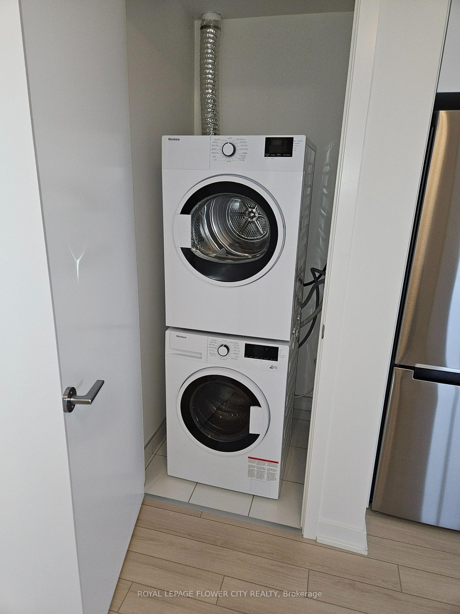 Be the first to live in this stunning, brand-new 10th-floor corner suite at the prestigious North Oak Condos! This bright, southeast-facing 1+1 bedroom and 1 bath home is filled with natural light all day and features breathtaking, unobstructed pond views from its floor-to-ceiling windows.The modern, open-concept design boasts 9-foot ceilings and elegant laminate flooring throughout. The kitchen is a chef's delight with quartz countertops, full-size stainless steel appliances, and a convenient double closet. Enjoy the versatility of a Den with a large window, easily converted into a second bedroom. Your private walk-out balcony is perfect for your morning coffee, offering a serene outdoor retreat.This smart home includes brand new front-load en-suite laundry, complimentary high-speed internet, and Smartone app entry. As a resident, you'll have access to incredible resort-style amenities: a full gym, yoga room, sauna, party room, BBQ terrace, and more. Your lease includes one underground parking space. Prime Oakville location at Trafalgar & Dundas, close to transit, trails, and shopping. Ready for immediate move-in.