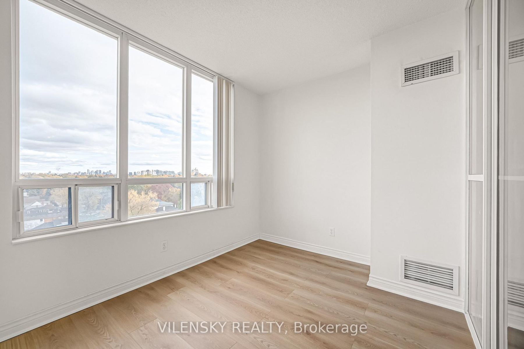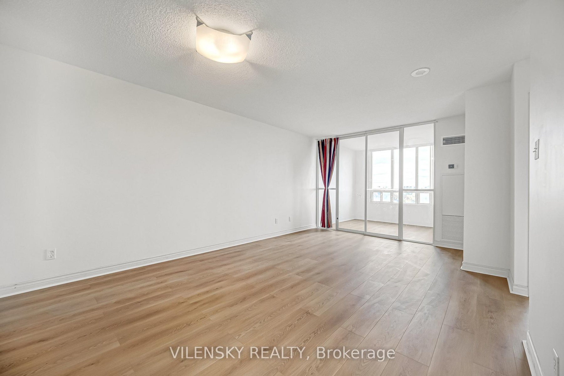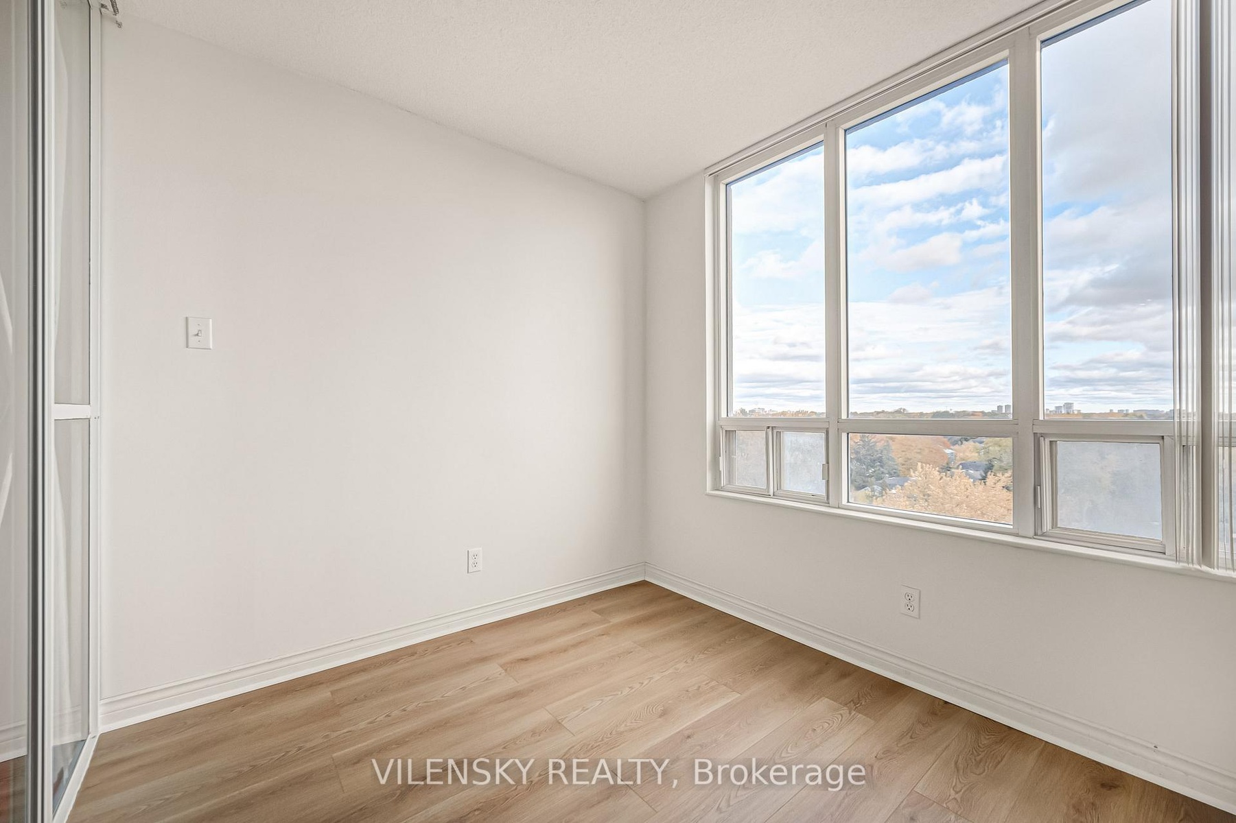 Freshly painted and upgraded with brand new laminate flooring throughout! Bright and spacious layout with east exposure, bringing in abundant natural light. The large den features a full-size window and sliding door, making it perfect as a second bedroom, home office, or study area. A move-in ready unit offering comfort, style, and functionality. Prime Location In North York, Close To Subway, Shops, Theatre, Groceries, Library, top-ranked Schools( McKee PS and Earl Haig SS); water, hydro and heat are included in the rent.