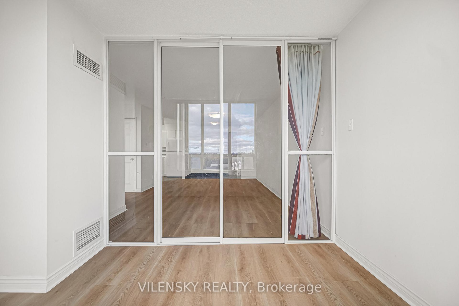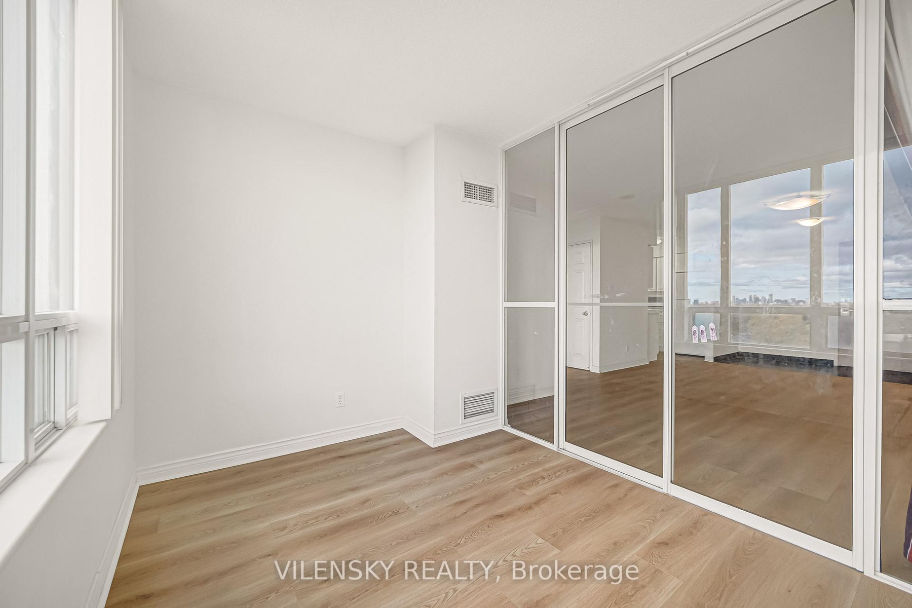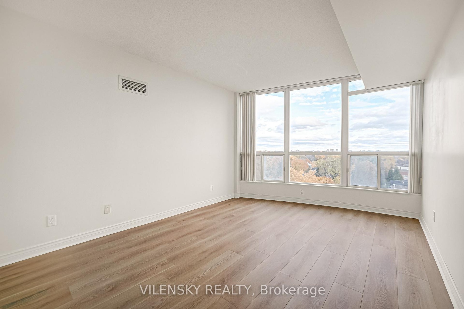Freshly painted and upgraded with brand new laminate flooring throughout! Bright and spacious layout with east exposure, bringing in abundant natural light. The large den features a full-size window and sliding door, making it perfect as a second bedroom, home office, or study area. A move-in ready unit offering comfort, style, and functionality. Prime Location In North York, Close To Subway, Shops, Theatre, Groceries, Library, top-ranked Schools( McKee PS and Earl Haig SS); water, hydro and heat are included in the rent.