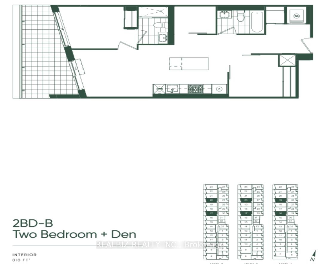 Brand New 2-Bedroom + Den (Office) Condo + EV Parking + Locker - 1 Min Walk to upcoming LRT - West-Facing Balcony at Leaside Common.Welcome to Leaside Common, a brand new residence in Toronto's highly sought-after Mount Pleasant East neighbourhood! This never-lived-in 2-bedroom + den, 2-bathroom suite (Unit 416) offers a bright, functional open-concept layout with 9-foot ceilings, exposed concrete details, and floor-to-ceiling windows that flood the space with natural light.Enjoy a modern kitchen With quartz countertops, a gas cooktop, premium built-in appliances, and a large island with breakfast bar seating, perfect for entertaining. The unit features premium hardwood floors, modern bathrooms with tub and glass shower enclosure, plus a spacious den ideal for a home office.Step out onto your large west-facing balcony, equipped with a gas line for BBQ, offering all-day sunlight and a relaxing outdoor retreat.Includes one EV-ready parking space and a locker for added convenience.Located in the heart of the Leaside Common development (1720 Bayview Ave), just a 1-minute walk to the upcoming Leaside Station (Eglinton Crosstown LRT) with direct connections to TTC Line 1, Line 2, UP Express, and GO Transit. Steps to Summerhill Market, Sophie's, Piano Piano, Mayrik, Whole Foods, and minutes to Loblaws, Longo's, LCBO, and Canadian Tire. Close to Toronto French School, Crescent School, Sunnybrook Hospital, and Ontario Science Centre.Experience modern luxury and unbeatable convenience in one of Toronto's most desirable neighbourhoods!