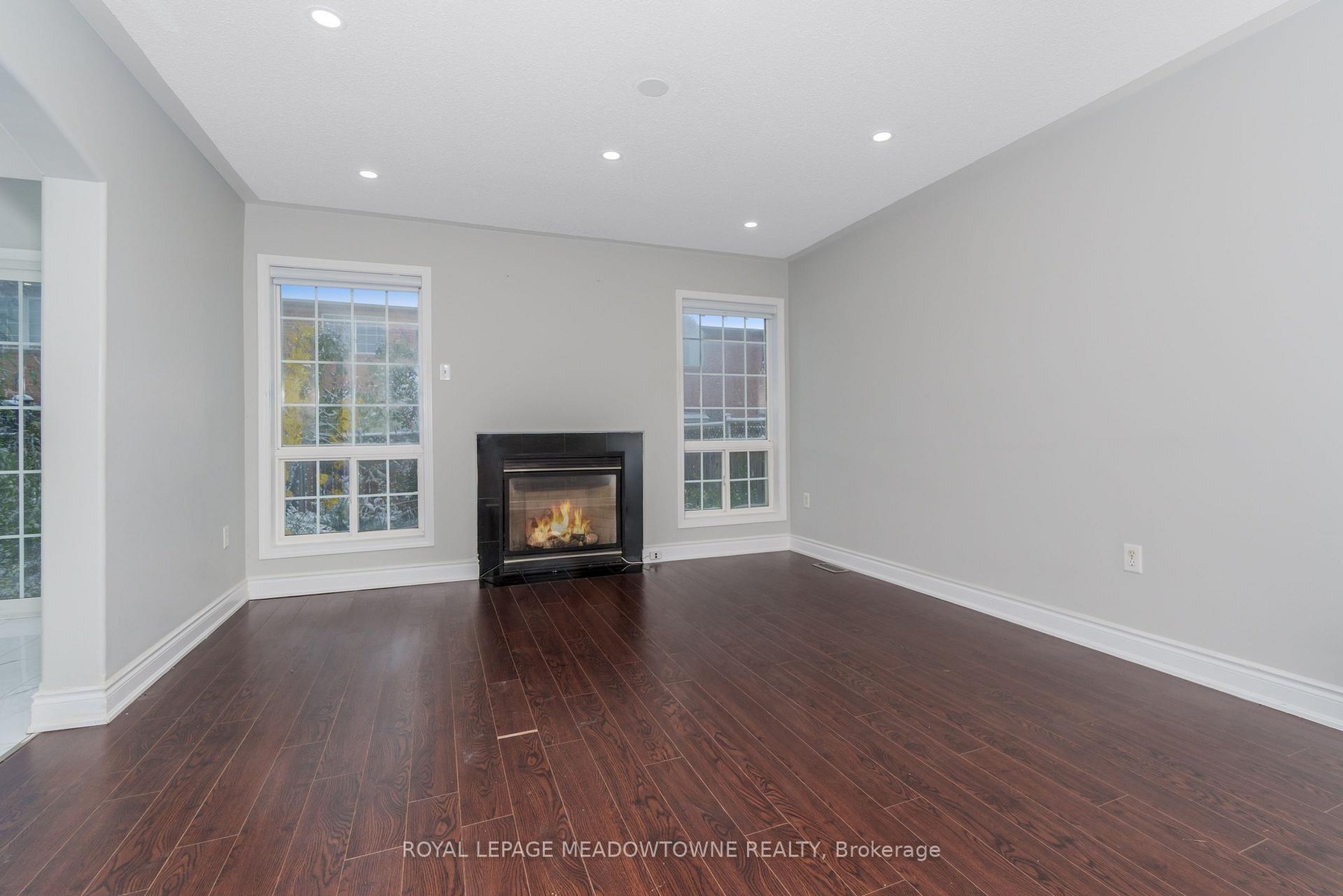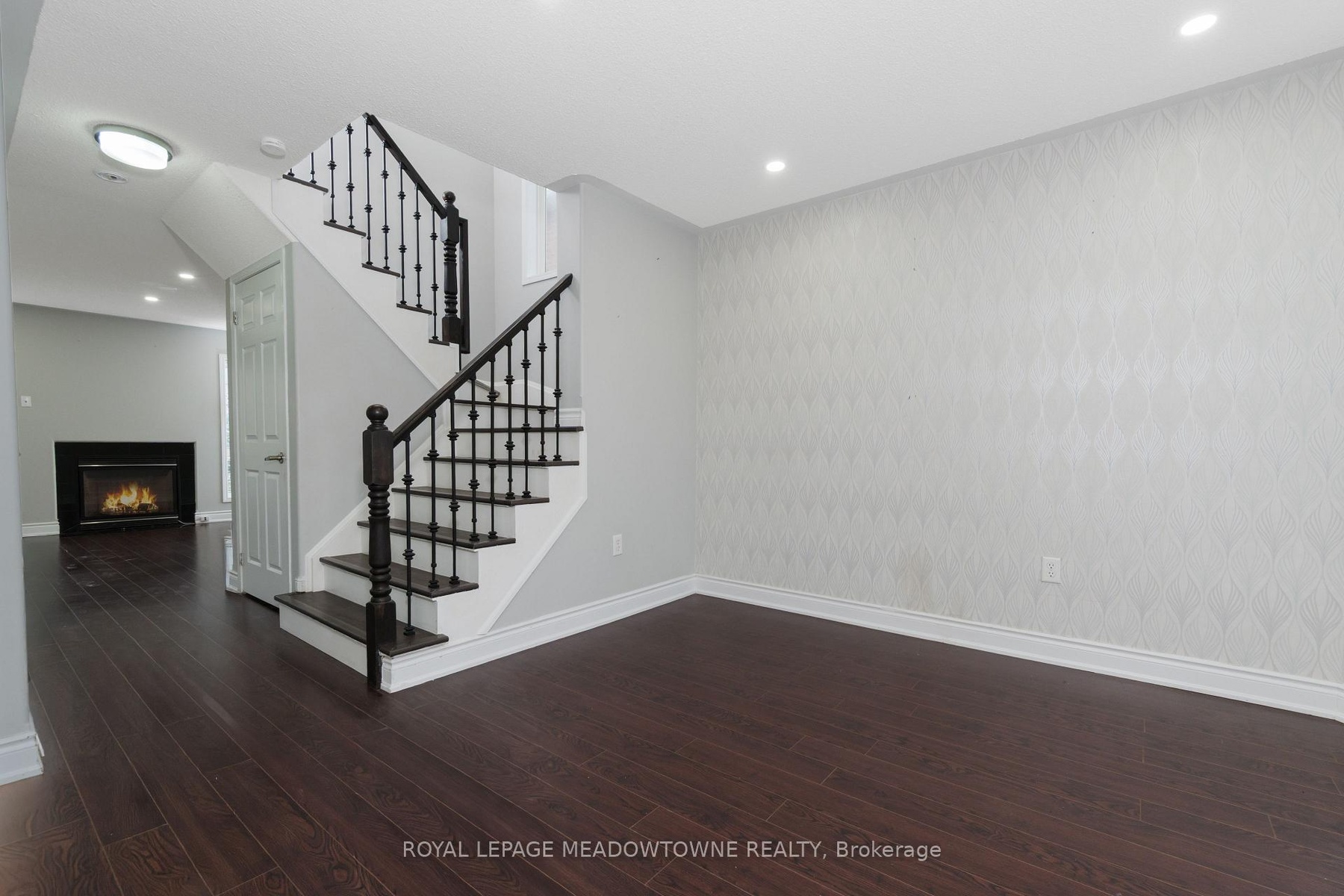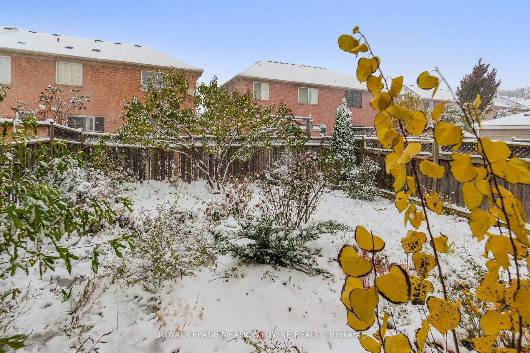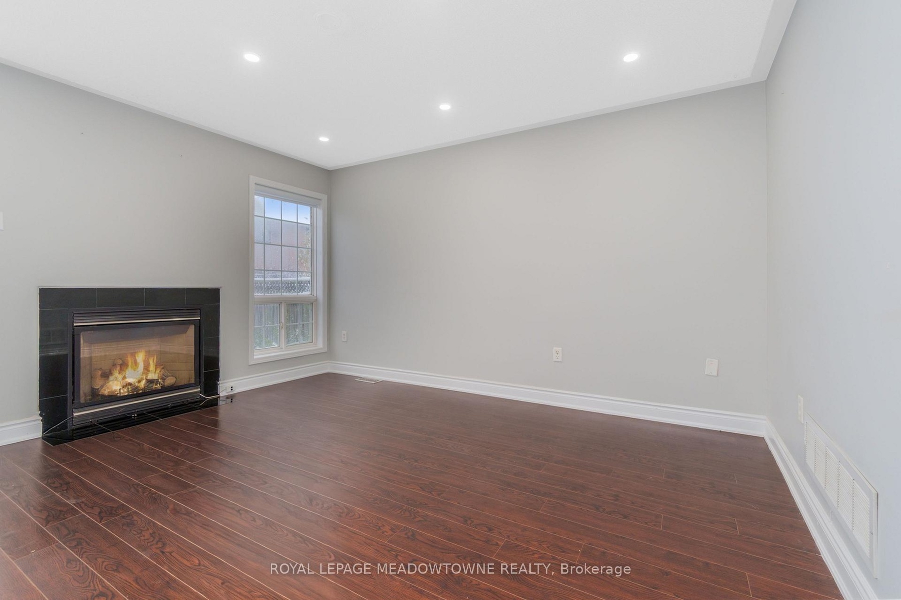 Welcome to this 3-bedroom, 3-bathroom semi-detached home in Milton's highly sought-after Beaty neighbourhood. Perfectly situated within walking distance to schools, parks, shopping, restaurants, and the Beaty Library, with quick access to major highways for an easy commute. A covered porch welcomes you to the home. Inside, the spacious formal living and dining area at the front features a large bright window, pot lights, and stylish laminate flooring. The layout flows seamlessly into the cozy family room, highlighted by a gas fireplace and two windows overlooking the fenced backyard. The updated eat-in kitchen overlooks the family room and showcases modern white cabinetry, granite countertops, tile backsplash and convenient access to both the garage and backyard. An updated powder room completes the main level. Upstairs, the bright staircase with wrought iron spindles leads to three generous bedrooms and two full bathrooms. The primary suite offers laminate flooring, a walk-in closet, and a 4-piece ensuite complete with a large granite-topped vanity, separate shower, and deep soaker tub. The additional bedrooms feature laminate floors and ample closet space, while the main 4-piece bathroom includes an oversized vanity with granite counter and a tub/shower combo. The unfinished basement provides a great layout, a rough-in for a future bathroom, and endless possibilities to create the perfect space for your family. With a single-car garage and parking for 2-3 more vehicles on the driveway, this home truly combines comfort, convenience, and value in one of Milton's most desirable areas.