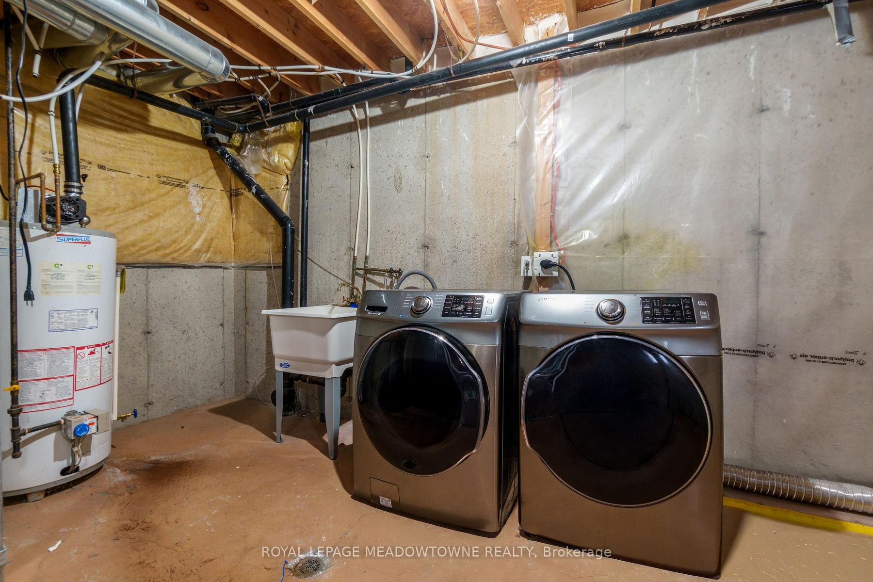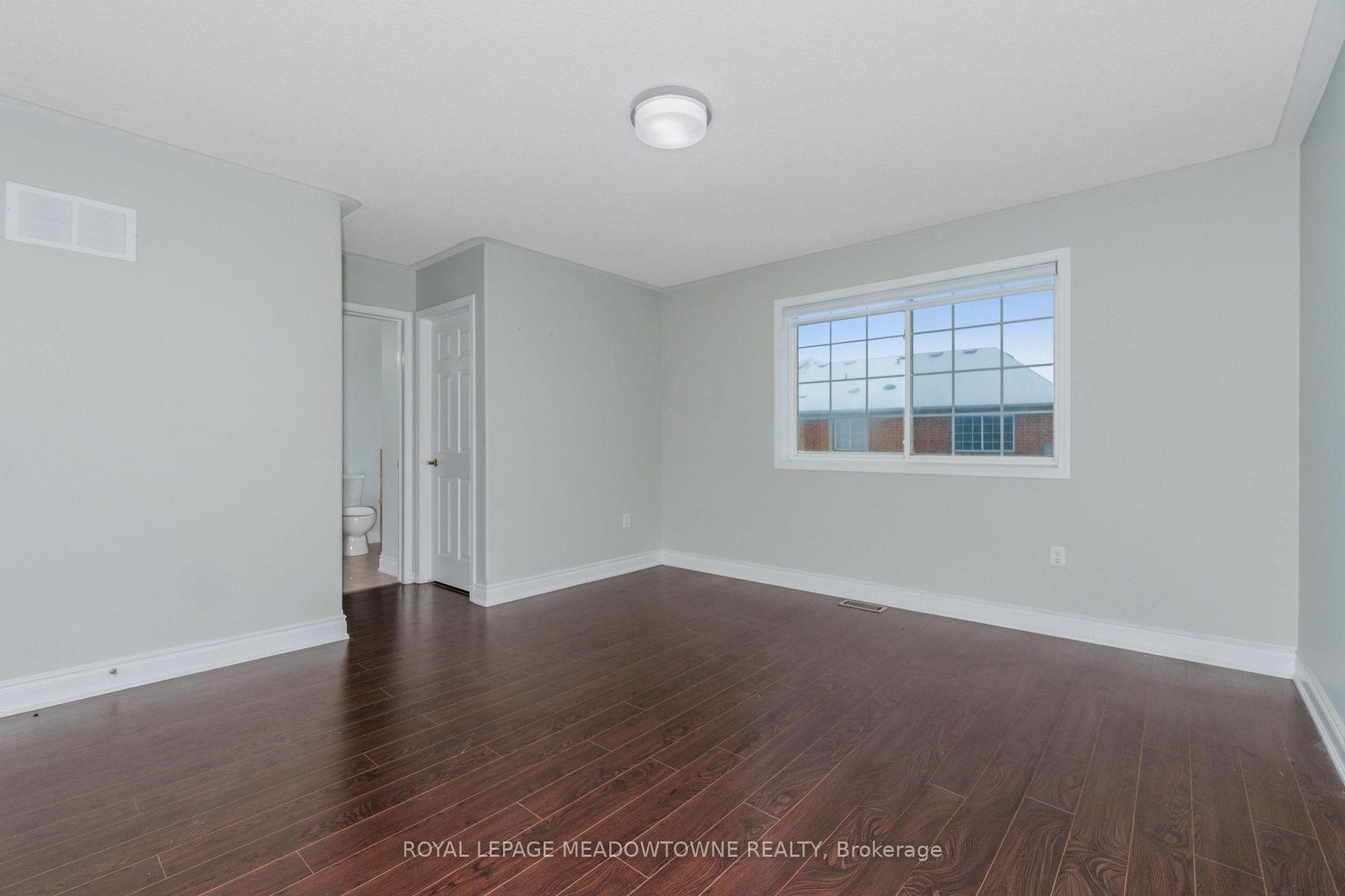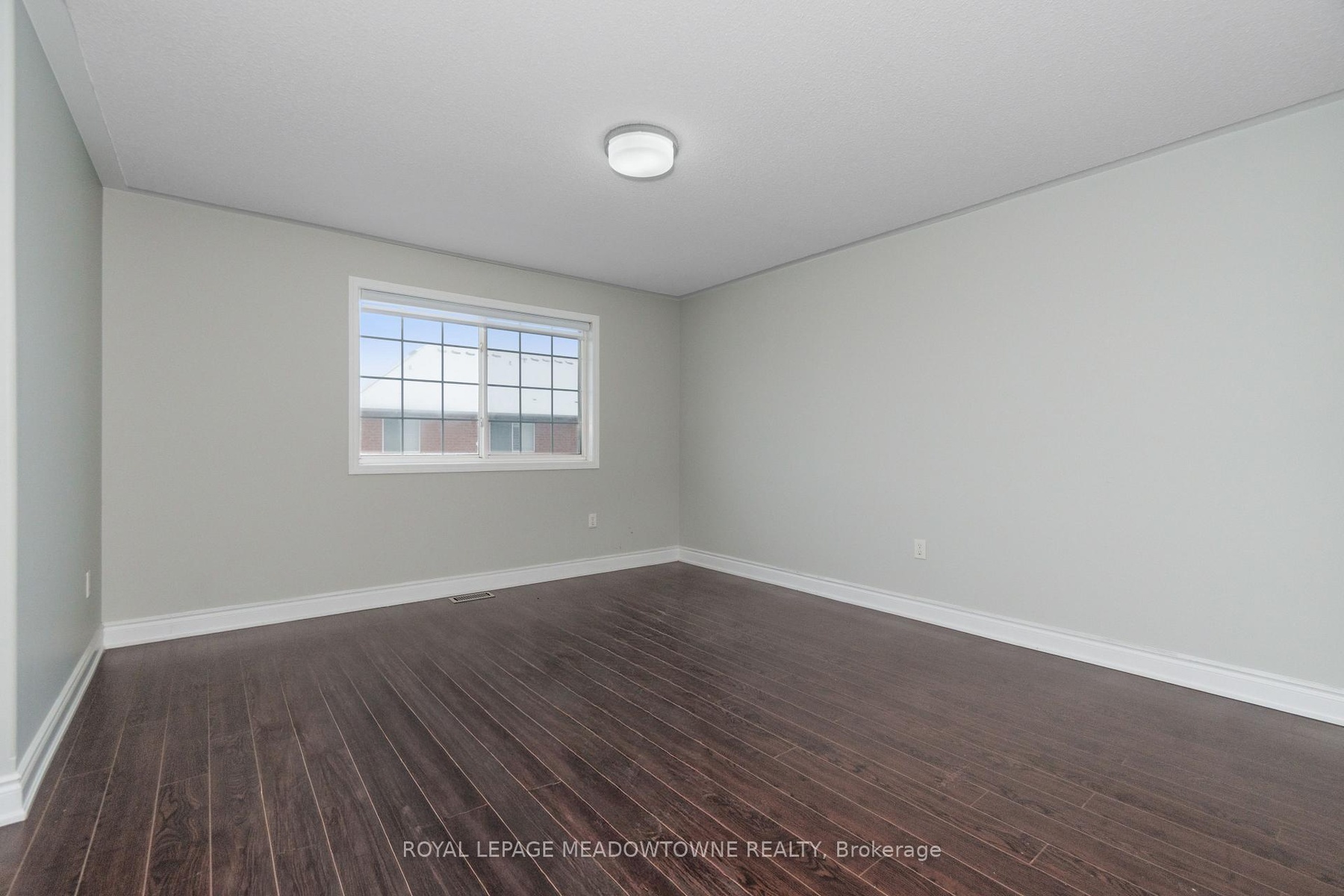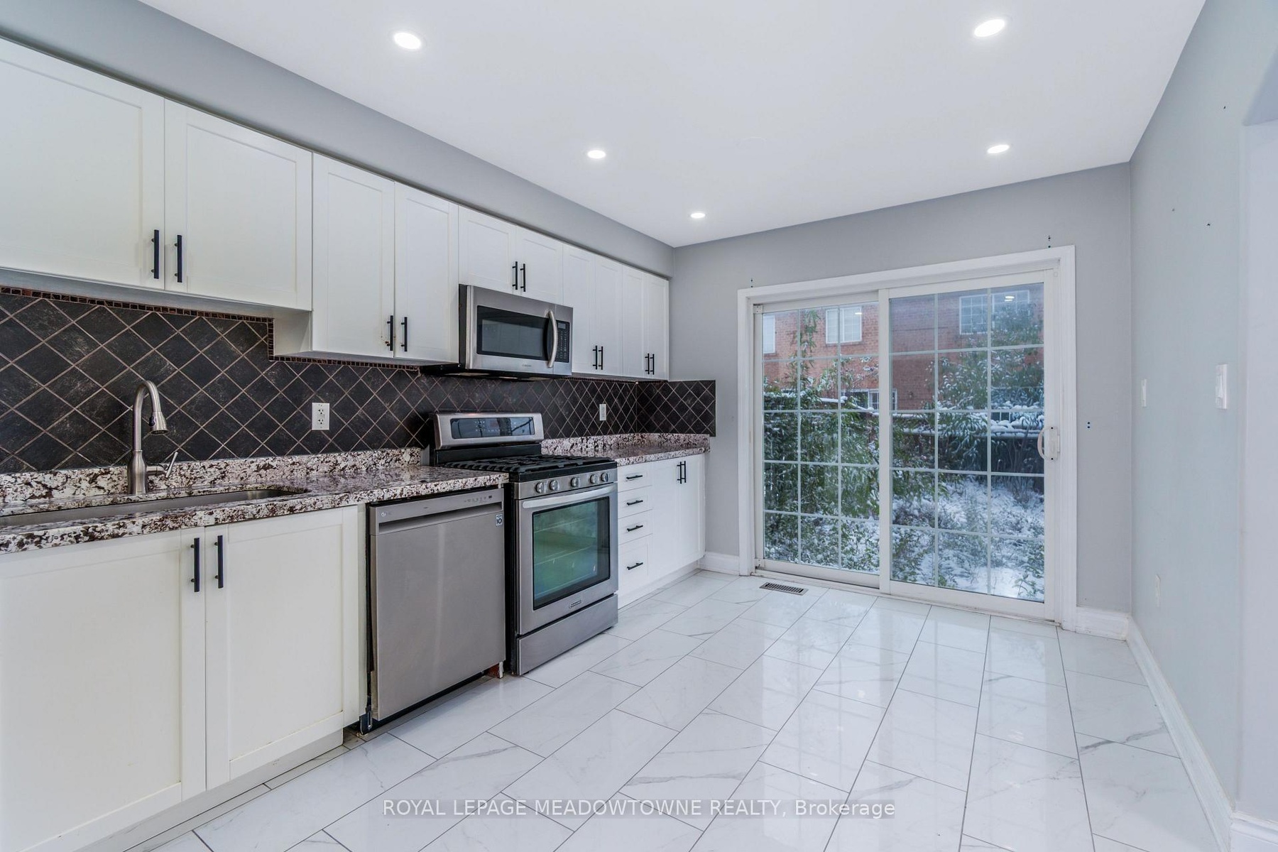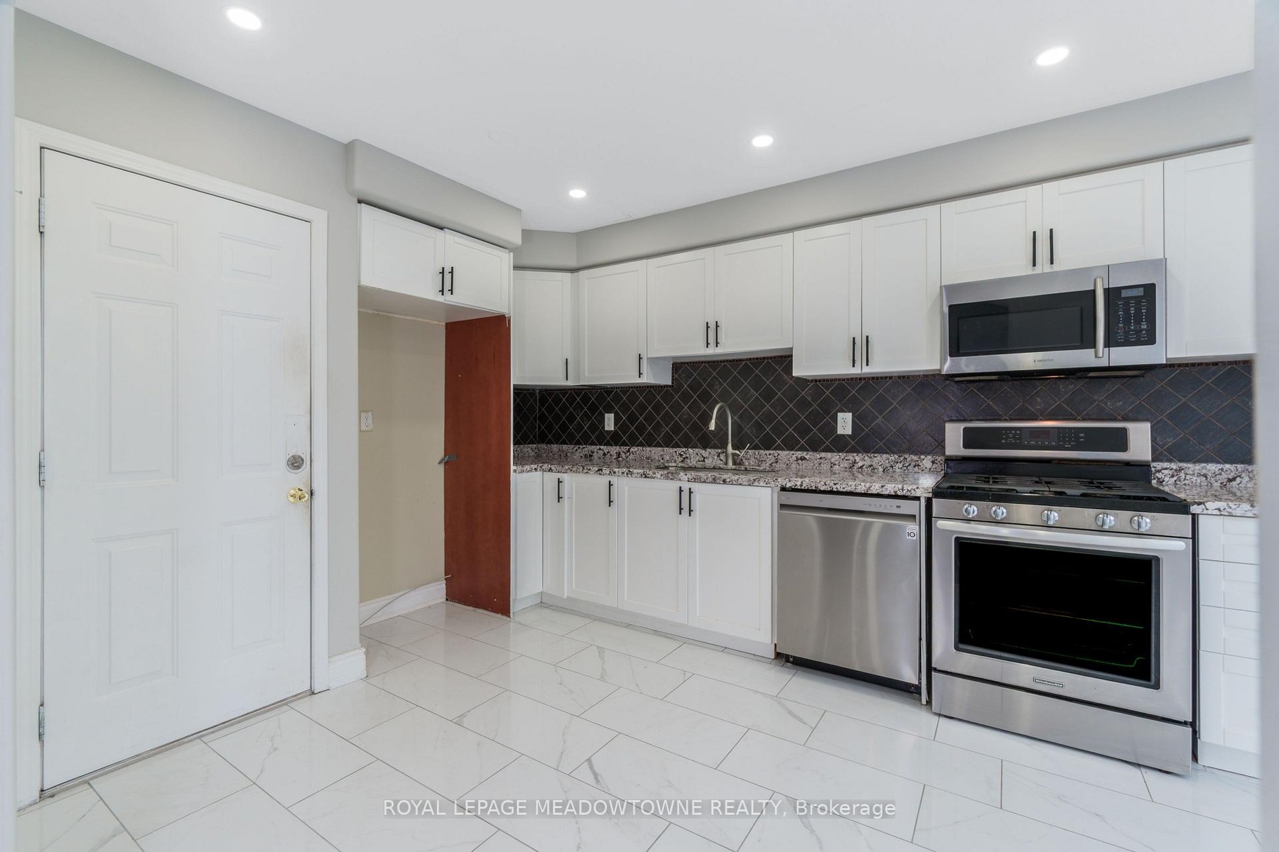 Welcome to this 3-bedroom, 3-bathroom semi-detached home in Milton's highly sought-after Beaty neighbourhood. Perfectly situated within walking distance to schools, parks, shopping, restaurants, and the Beaty Library, with quick access to major highways for an easy commute. A covered porch welcomes you to the home. Inside, the spacious formal living and dining area at the front features a large bright window, pot lights, and stylish laminate flooring. The layout flows seamlessly into the cozy family room, highlighted by a gas fireplace and two windows overlooking the fenced backyard. The updated eat-in kitchen overlooks the family room and showcases modern white cabinetry, granite countertops, tile backsplash and convenient access to both the garage and backyard. An updated powder room completes the main level. Upstairs, the bright staircase with wrought iron spindles leads to three generous bedrooms and two full bathrooms. The primary suite offers laminate flooring, a walk-in closet, and a 4-piece ensuite complete with a large granite-topped vanity, separate shower, and deep soaker tub. The additional bedrooms feature laminate floors and ample closet space, while the main 4-piece bathroom includes an oversized vanity with granite counter and a tub/shower combo. The unfinished basement provides a great layout, a rough-in for a future bathroom, and endless possibilities to create the perfect space for your family. With a single-car garage and parking for 2-3 more vehicles on the driveway, this home truly combines comfort, convenience, and value in one of Milton's most desirable areas.