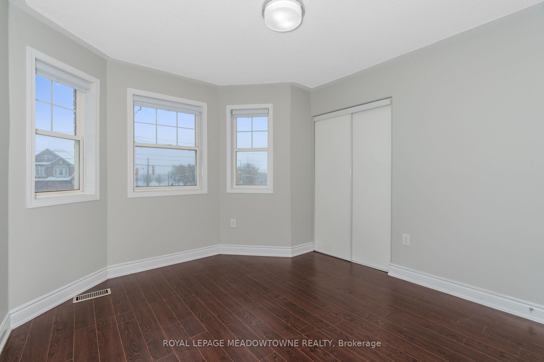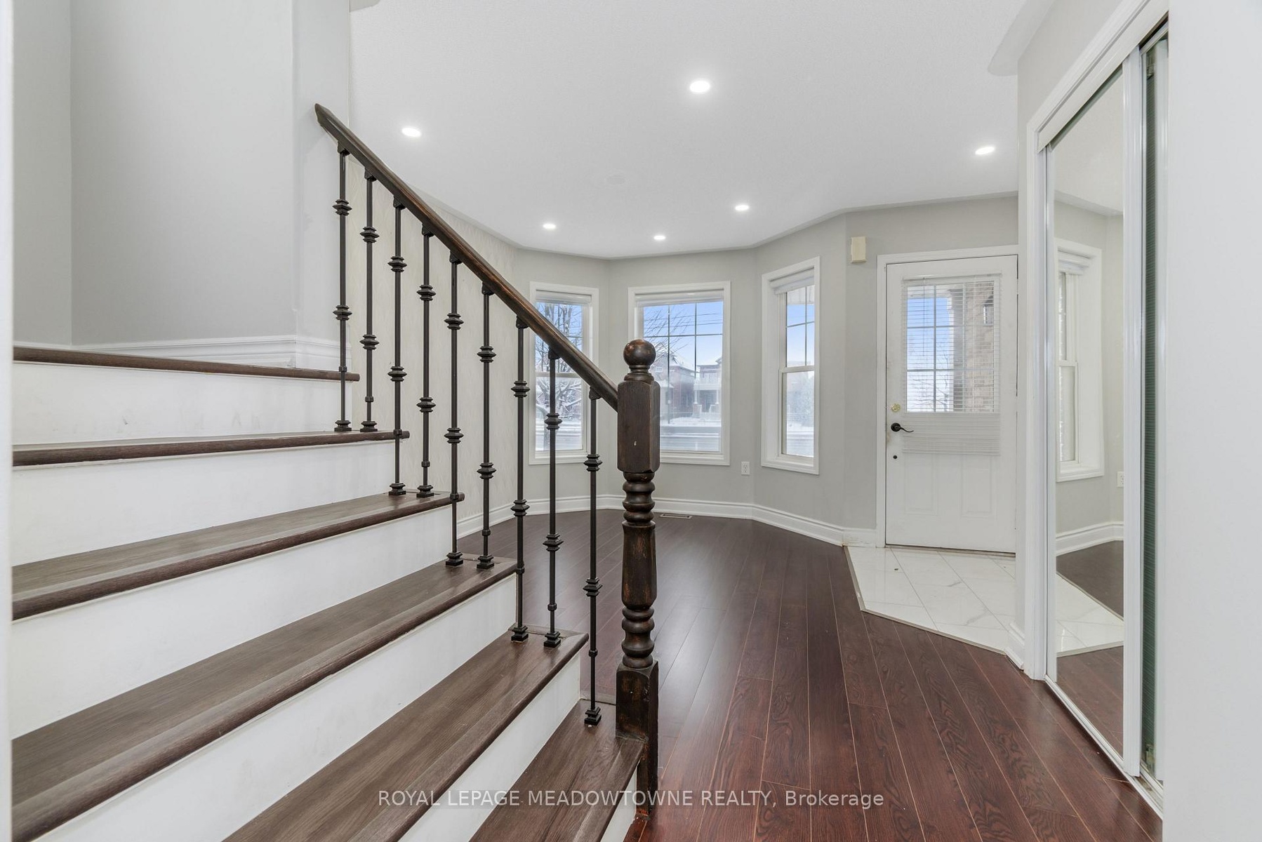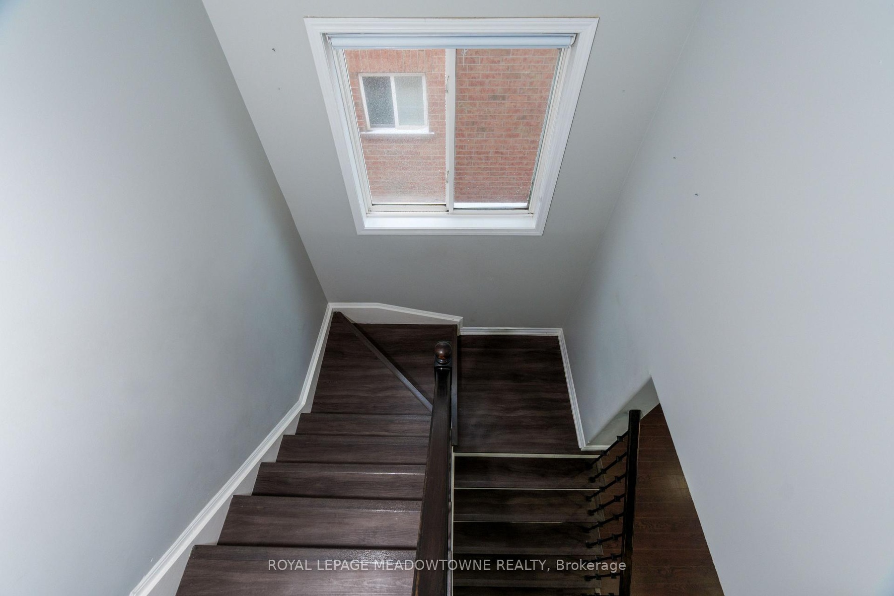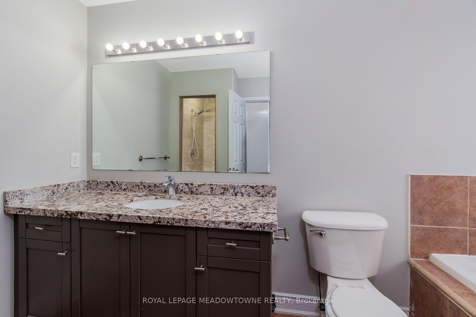 Welcome to this 3-bedroom, 3-bathroom semi-detached home in Milton's highly sought-after Beaty neighbourhood. Perfectly situated within walking distance to schools, parks, shopping, restaurants, and the Beaty Library, with quick access to major highways for an easy commute. A covered porch welcomes you to the home. Inside, the spacious formal living and dining area at the front features a large bright window, pot lights, and stylish laminate flooring. The layout flows seamlessly into the cozy family room, highlighted by a gas fireplace and two windows overlooking the fenced backyard. The updated eat-in kitchen overlooks the family room and showcases modern white cabinetry, granite countertops, tile backsplash and convenient access to both the garage and backyard. An updated powder room completes the main level. Upstairs, the bright staircase with wrought iron spindles leads to three generous bedrooms and two full bathrooms. The primary suite offers laminate flooring, a walk-in closet, and a 4-piece ensuite complete with a large granite-topped vanity, separate shower, and deep soaker tub. The additional bedrooms feature laminate floors and ample closet space, while the main 4-piece bathroom includes an oversized vanity with granite counter and a tub/shower combo. The unfinished basement provides a great layout, a rough-in for a future bathroom, and endless possibilities to create the perfect space for your family. With a single-car garage and parking for 2-3 more vehicles on the driveway, this home truly combines comfort, convenience, and value in one of Milton's most desirable areas.
