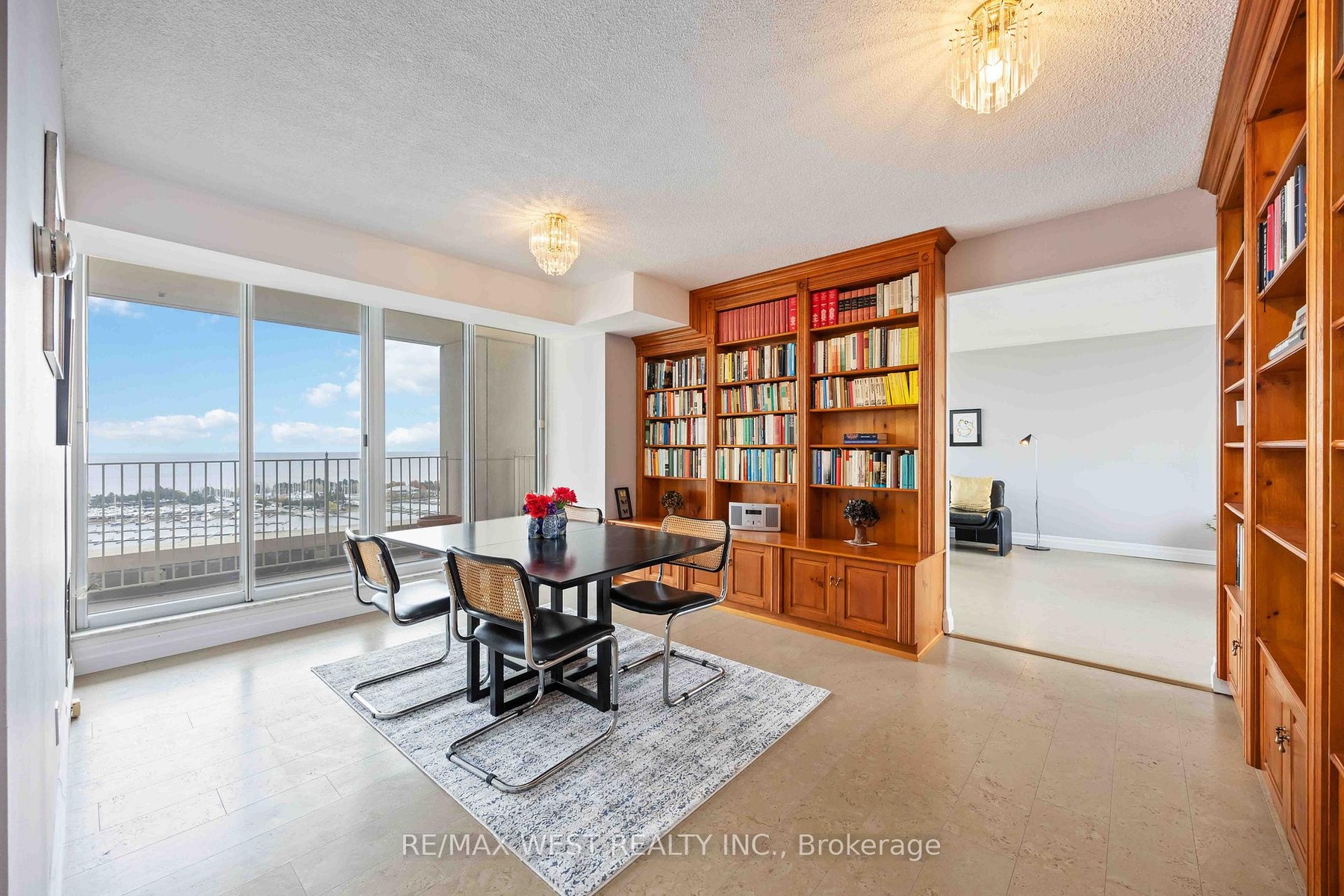 Ever wonder what its like to live in the iconic *ARCH* of Grand Harbour? This is your chance to own one of the most distinctive and rarely available suites in the building offered for the very first time! This spacious 2-bedroom, 3-bathroom residence offers over 1,500 sq ft of thoughtfully designed living space, with both north and south exposures for stunning sunsets and peaceful marina views. The living and dining areas enjoy complete privacy, natural light, and picturesque views in both directions. A dedicated home office with custom built-in bookcases overlooks the marina ideal for reading, hobbies, or working from home.The generous kitchen features a walk-in pantry, built-in cabinetry, and an eat-in area facing the lake. A convenient pass-through to the hallway adds ease for groceries and daily living. Both bedrooms have their own private ensuites and enjoy serene north-facing views. The primary suite includes a luxurious soaker tub, separate shower, and a spacious walk-in closet, while the second bedroom features its own full bath and large closets. Additional highlights include warm cork flooring throughout and a dedicated in-suite storage room. Two parking spots and one locker are included. **Maintenance fees cover ALL UTILITIES including cable, and internet for worry-free living** Grand Harbour offers a true resort-style lifestyle with 24-hour concierge, pool, gym, sauna, party room, and guest suites. Just steps to the lake, marinas, Martin Goodman Trail, restaurants, shops, and transit. Easy access to the Gardiner, QEW, 427, airport, downtown, and the vibrant Humber Bay Shores. If you've been waiting for a one-of-a-kind waterfront home in a well-managed, welcoming community this is the one.