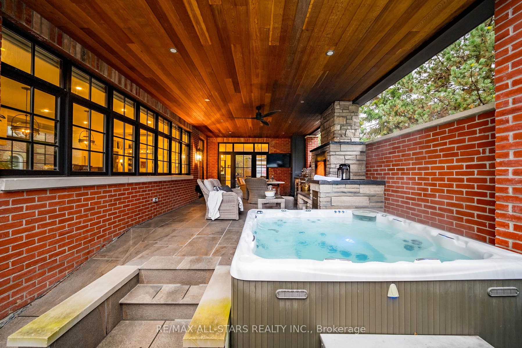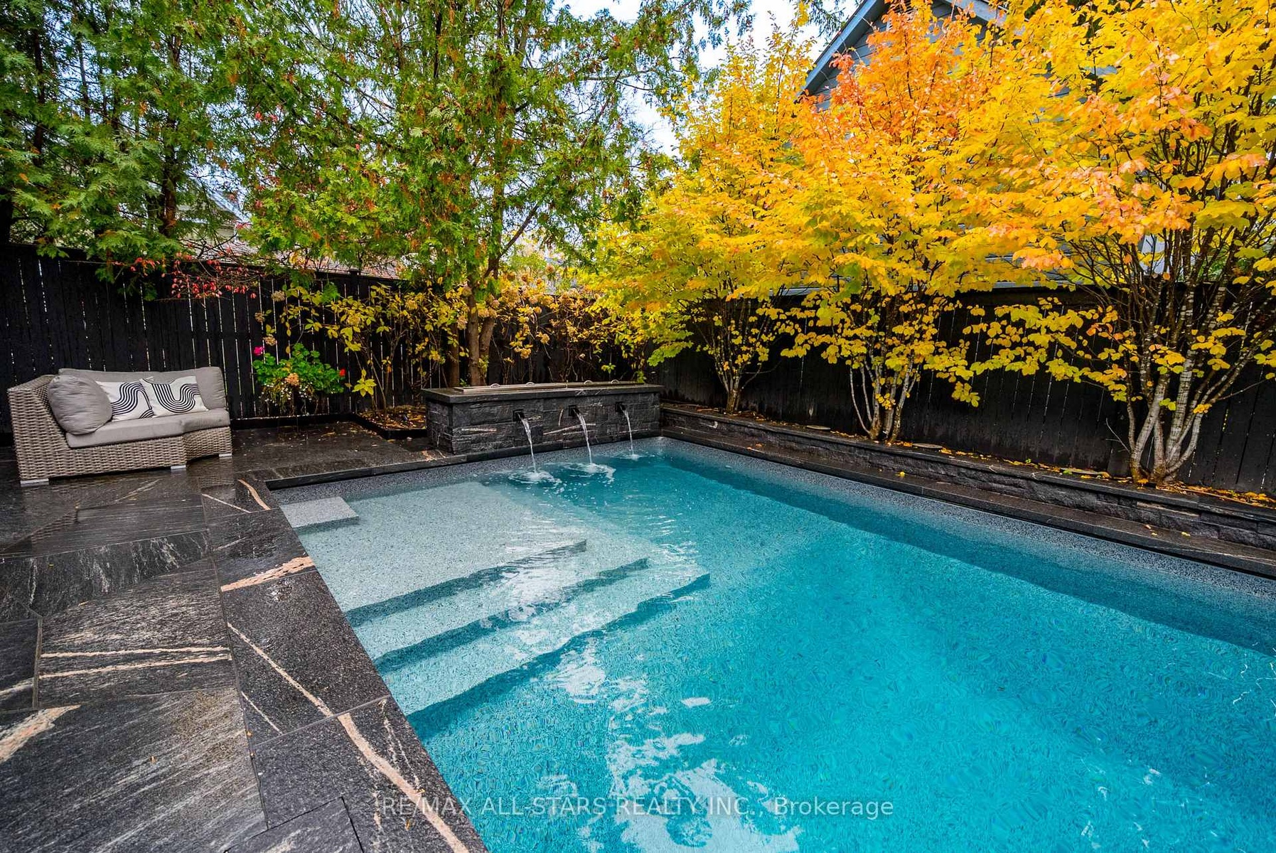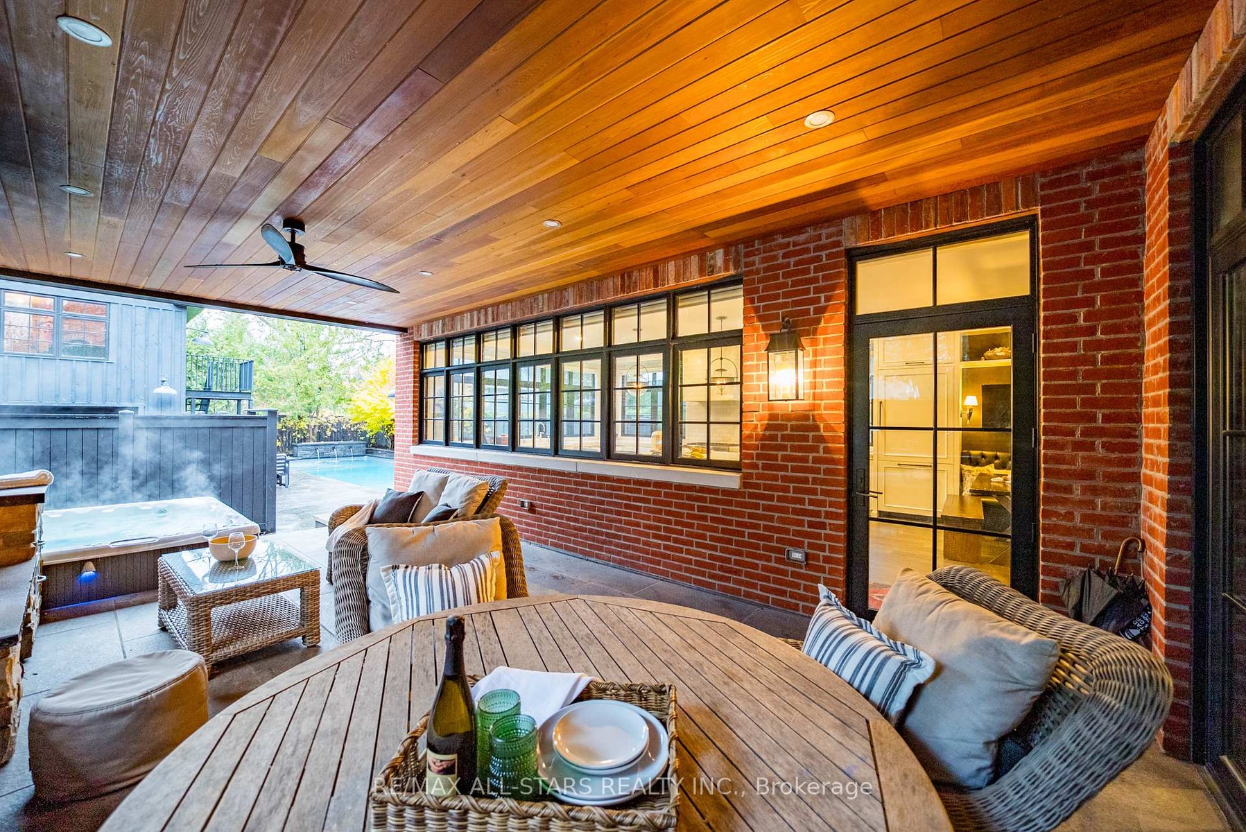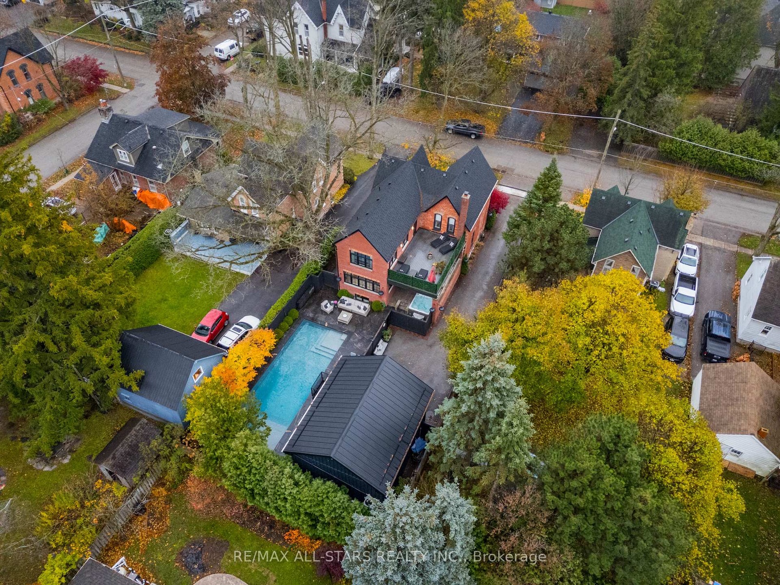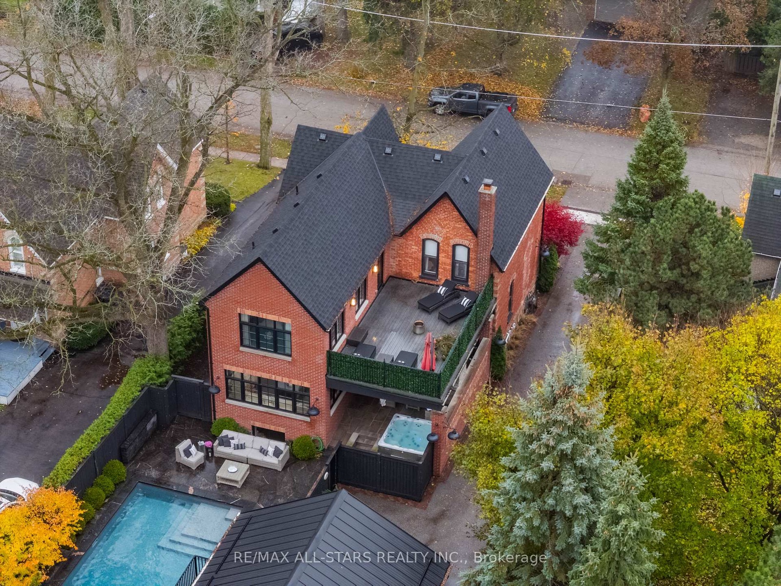 *Open House Sat & Sun Nov 15&16 2-4pm*Completely renovated & expanded w/ a 2-storey (plus basement) addition in 2016 + 2 storey, 2 car garage, pool, hot tub + more. All new roof, electrical, insulation, plumbing, furnace, AC-everything! This home blends timeless character with luxurious contemporary design, offering a lifestyle that's both sophisticated & inviting. Outdoor spaces are just as impressive w/ in-ground saltwater pool (2021) w/ 2 shallow ends, water + fire features and Muskoka granite patio w/ landscape lighting & built-in sprinkler system as well as two private terraces. Inside, wide-plank herringbone oak floors, plaster crown molding, & a stone wood-burning fireplace create warmth and elegance. French doors open to a covered terrace w/ heated floors, a gas fireplace, built-in BBQ, & hot tub - a true four-season retreat.The spacious eat-in kitchen is the heart of the home, featuring a 10-foot island with double-sided storage, Thermador & Bosch appliances, a handcrafted Shaws sink, and brass accents. Wall-to-wall windows overlook the backyard & covered terrace. A built-in banquette nook offers a cozy space for everyday living. The custom mudroom & laundry area incl. cabinetry & bench seating, while the chic powder room shines with Perrin & Rowe fixtures & a hammered nickel sink.Upstairs, the primary suite feels like a boutique hotel w/ a walk-through wardrobe, double vanity, deep soaker tub & oversized rainfall shower. Two additional bedrooms feature custom closets and elegant lighting. The second-floor terrace offers a private place to unwind.The finished basement includes heated floors, large windows, & a wet bar - perfect for movie nights or entertaining. There is even a laundry chute! A rare bonus - the detached, heated two-storey garage (2020) with loft, pine floors, large window, bathroom rough-in, & full-height basement - ideal for a studio, home office, or guest suite. Too many features to list - see attached feature sheet & watch virtual tour!