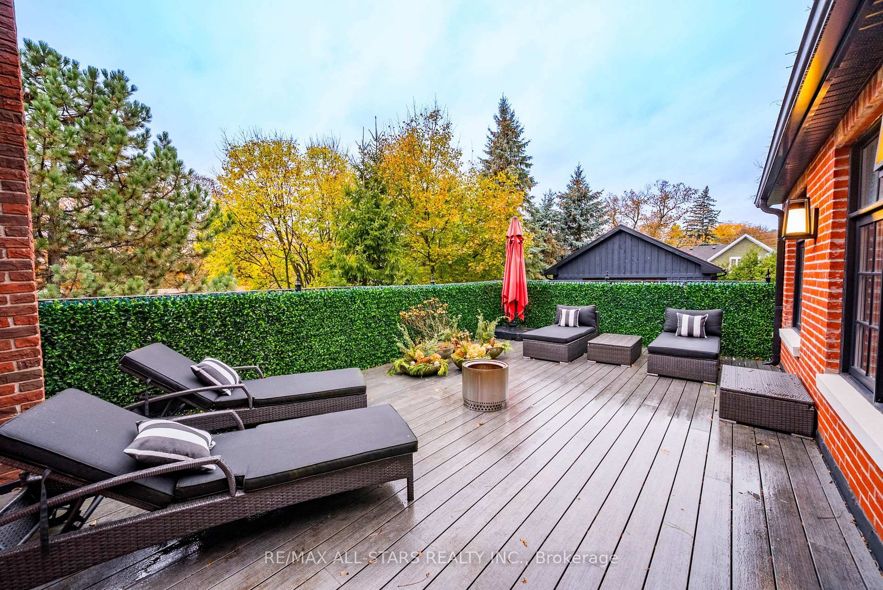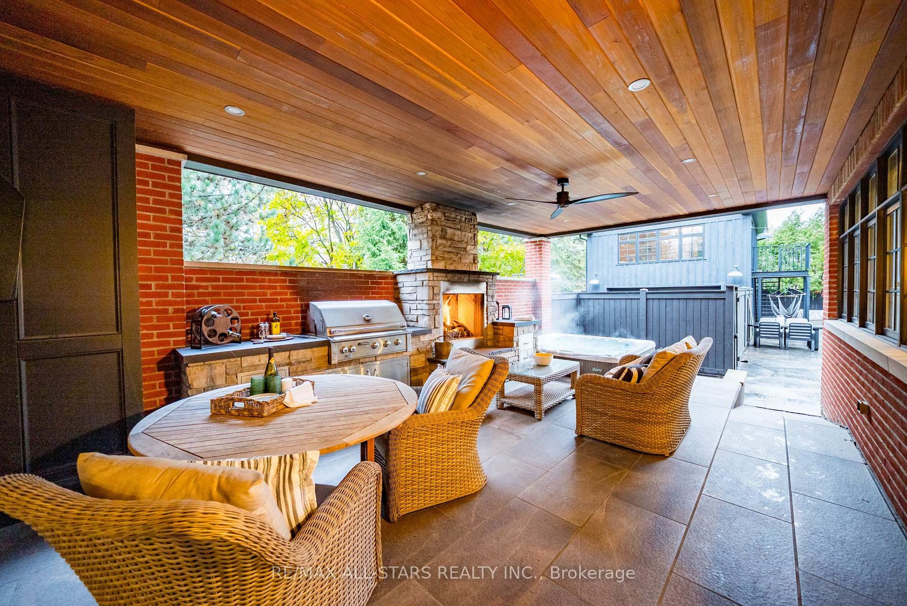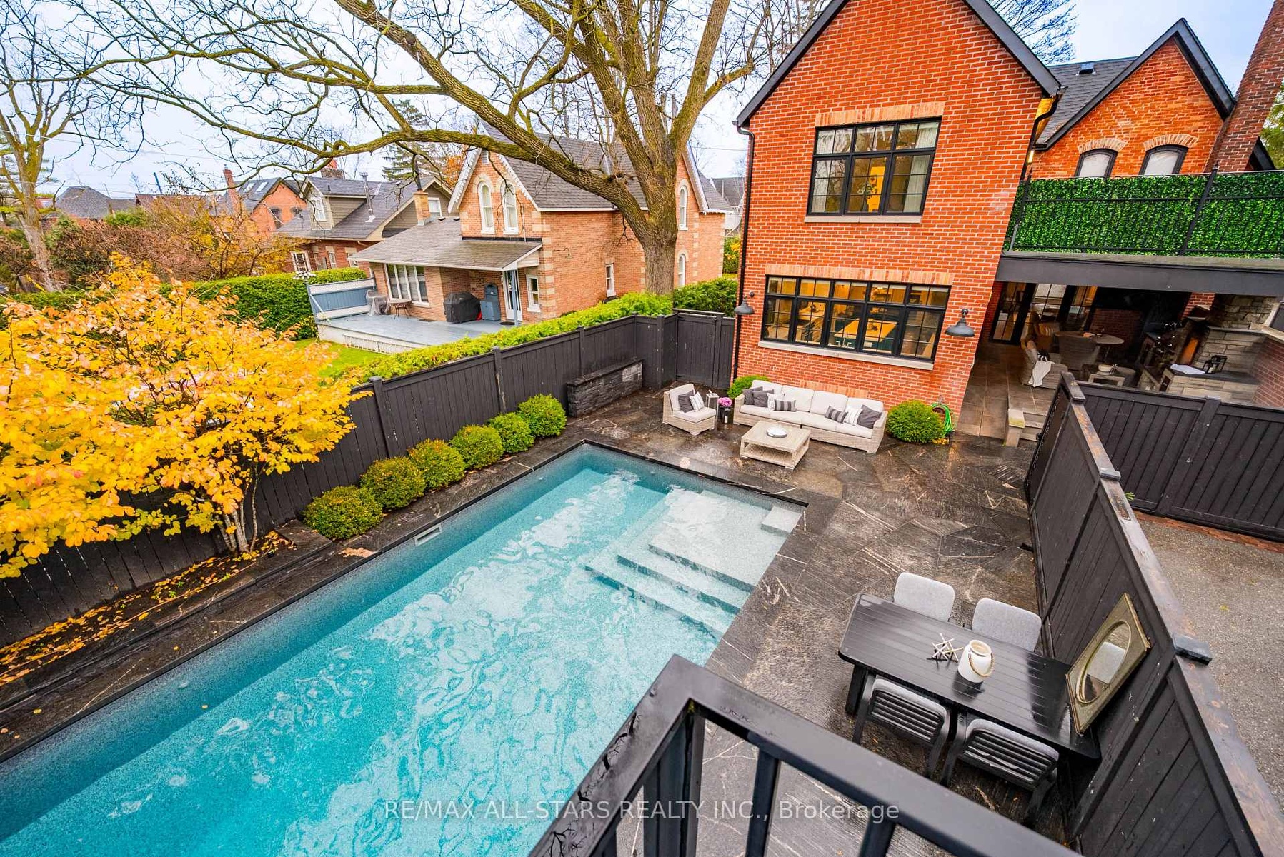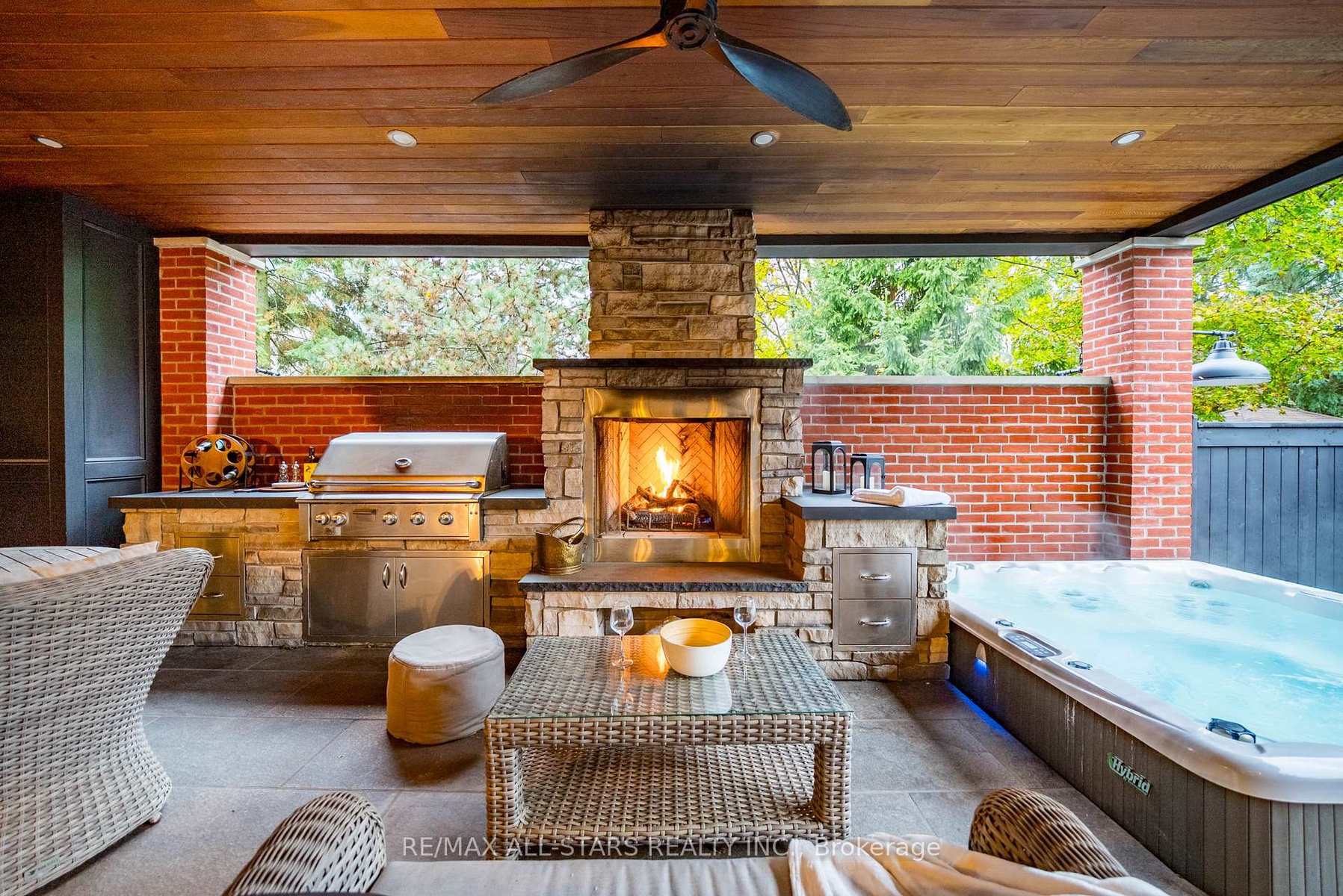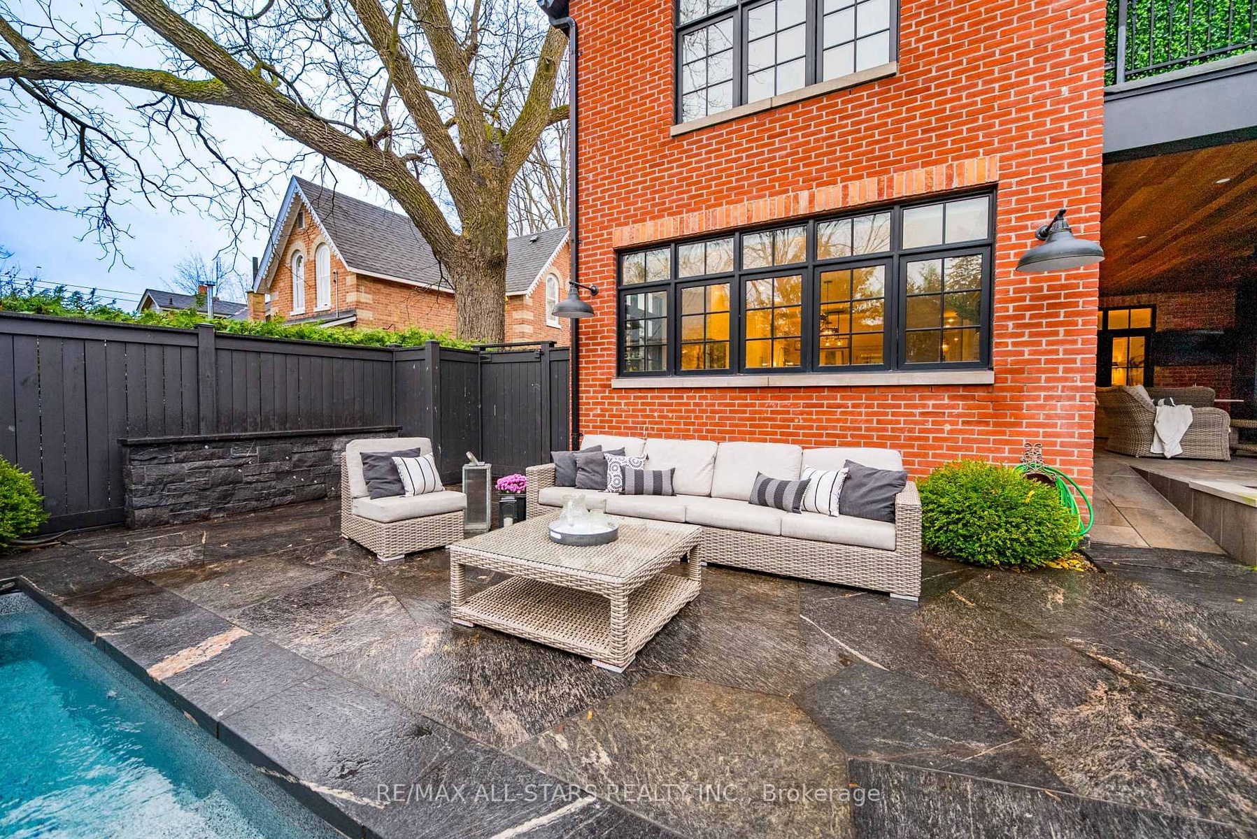 *Open House Sat & Sun Nov 15&16 2-4pm*Completely renovated & expanded w/ a 2-storey (plus basement) addition in 2016 + 2 storey, 2 car garage, pool, hot tub + more. All new roof, electrical, insulation, plumbing, furnace, AC-everything! This home blends timeless character with luxurious contemporary design, offering a lifestyle that's both sophisticated & inviting. Outdoor spaces are just as impressive w/ in-ground saltwater pool (2021) w/ 2 shallow ends, water + fire features and Muskoka granite patio w/ landscape lighting & built-in sprinkler system as well as two private terraces. Inside, wide-plank herringbone oak floors, plaster crown molding, & a stone wood-burning fireplace create warmth and elegance. French doors open to a covered terrace w/ heated floors, a gas fireplace, built-in BBQ, & hot tub - a true four-season retreat.The spacious eat-in kitchen is the heart of the home, featuring a 10-foot island with double-sided storage, Thermador & Bosch appliances, a handcrafted Shaws sink, and brass accents. Wall-to-wall windows overlook the backyard & covered terrace. A built-in banquette nook offers a cozy space for everyday living. The custom mudroom & laundry area incl. cabinetry & bench seating, while the chic powder room shines with Perrin & Rowe fixtures & a hammered nickel sink.Upstairs, the primary suite feels like a boutique hotel w/ a walk-through wardrobe, double vanity, deep soaker tub & oversized rainfall shower. Two additional bedrooms feature custom closets and elegant lighting. The second-floor terrace offers a private place to unwind.The finished basement includes heated floors, large windows, & a wet bar - perfect for movie nights or entertaining. There is even a laundry chute! A rare bonus - the detached, heated two-storey garage (2020) with loft, pine floors, large window, bathroom rough-in, & full-height basement - ideal for a studio, home office, or guest suite. Too many features to list - see attached feature sheet & watch virtual tour!
