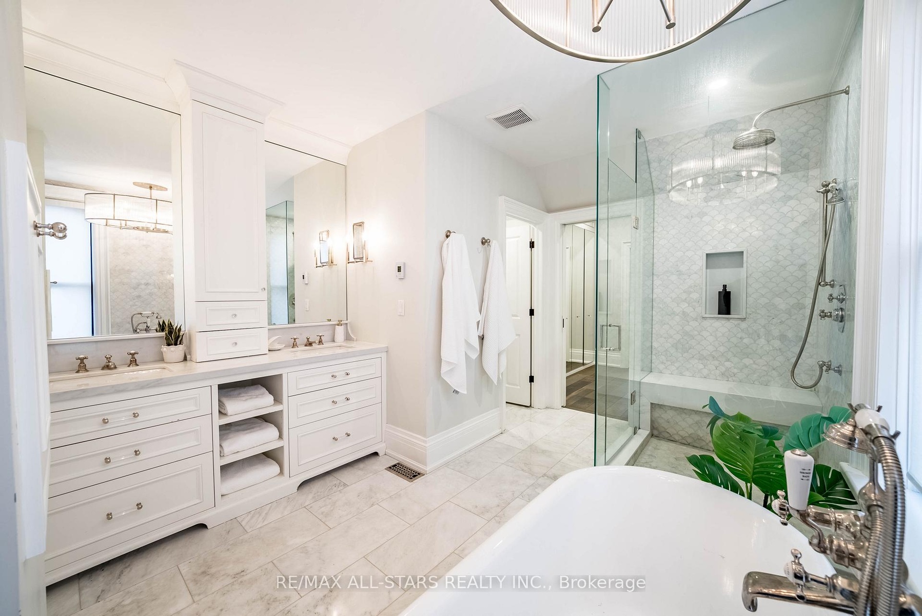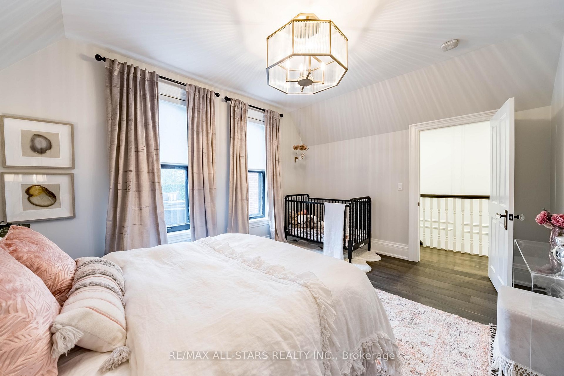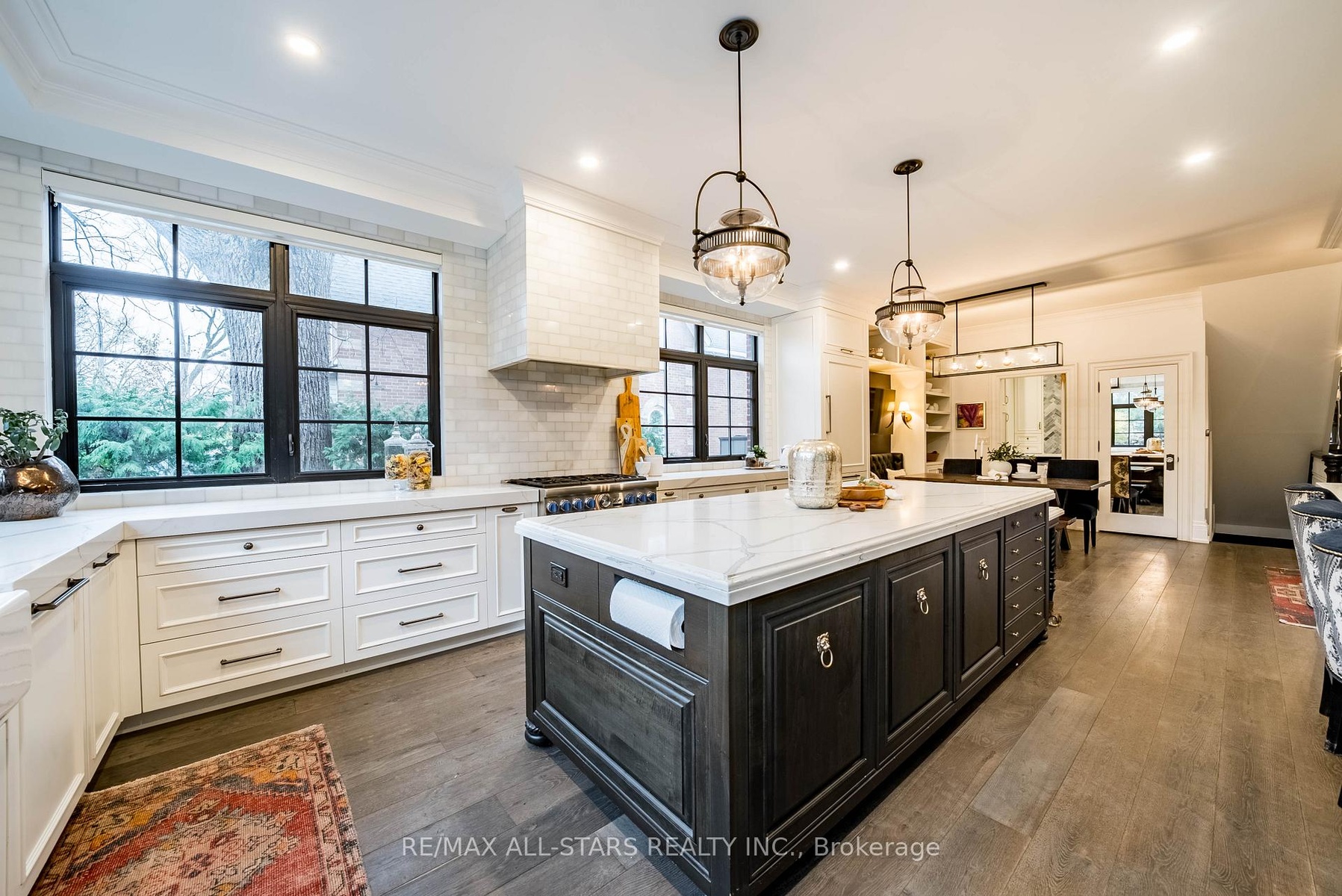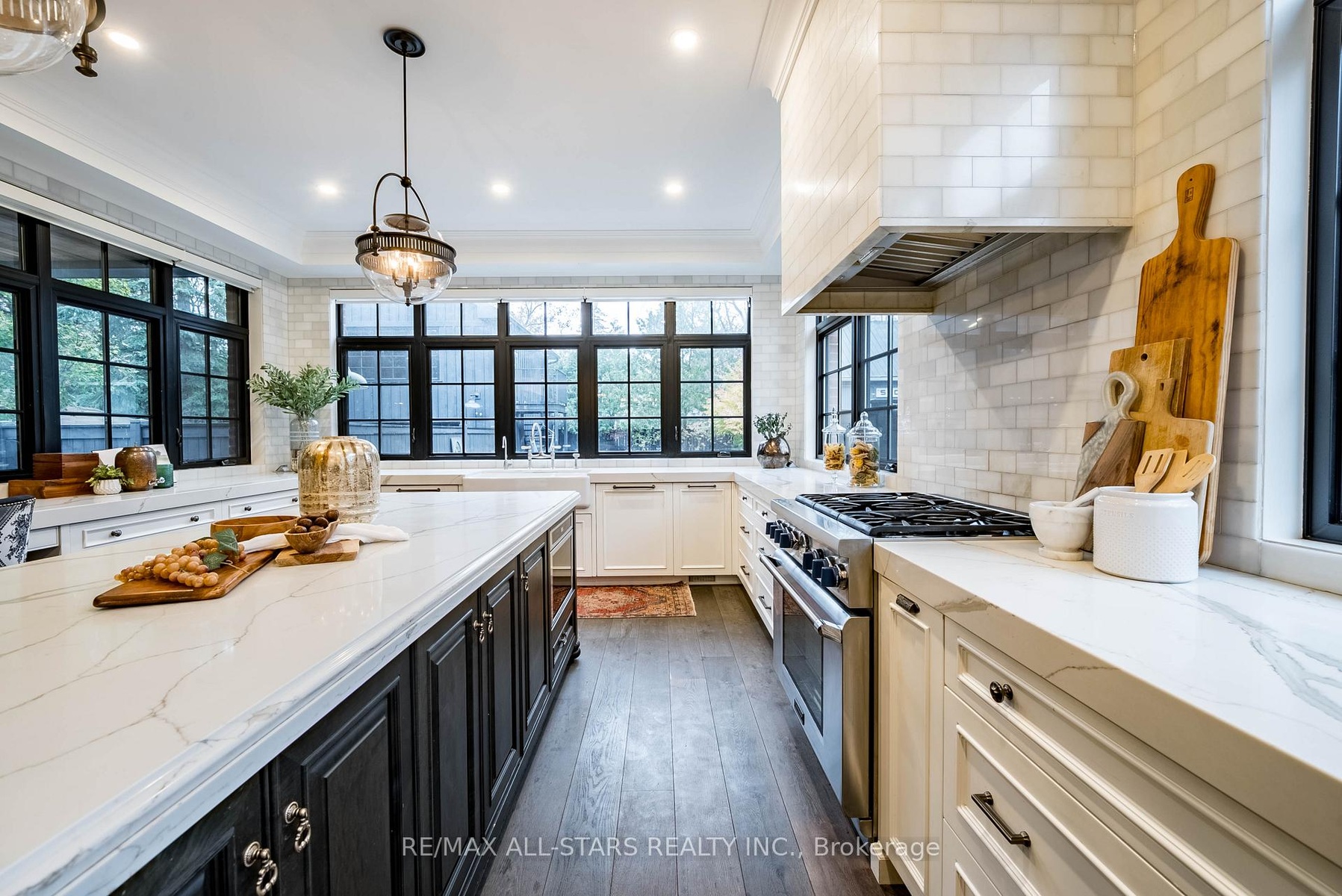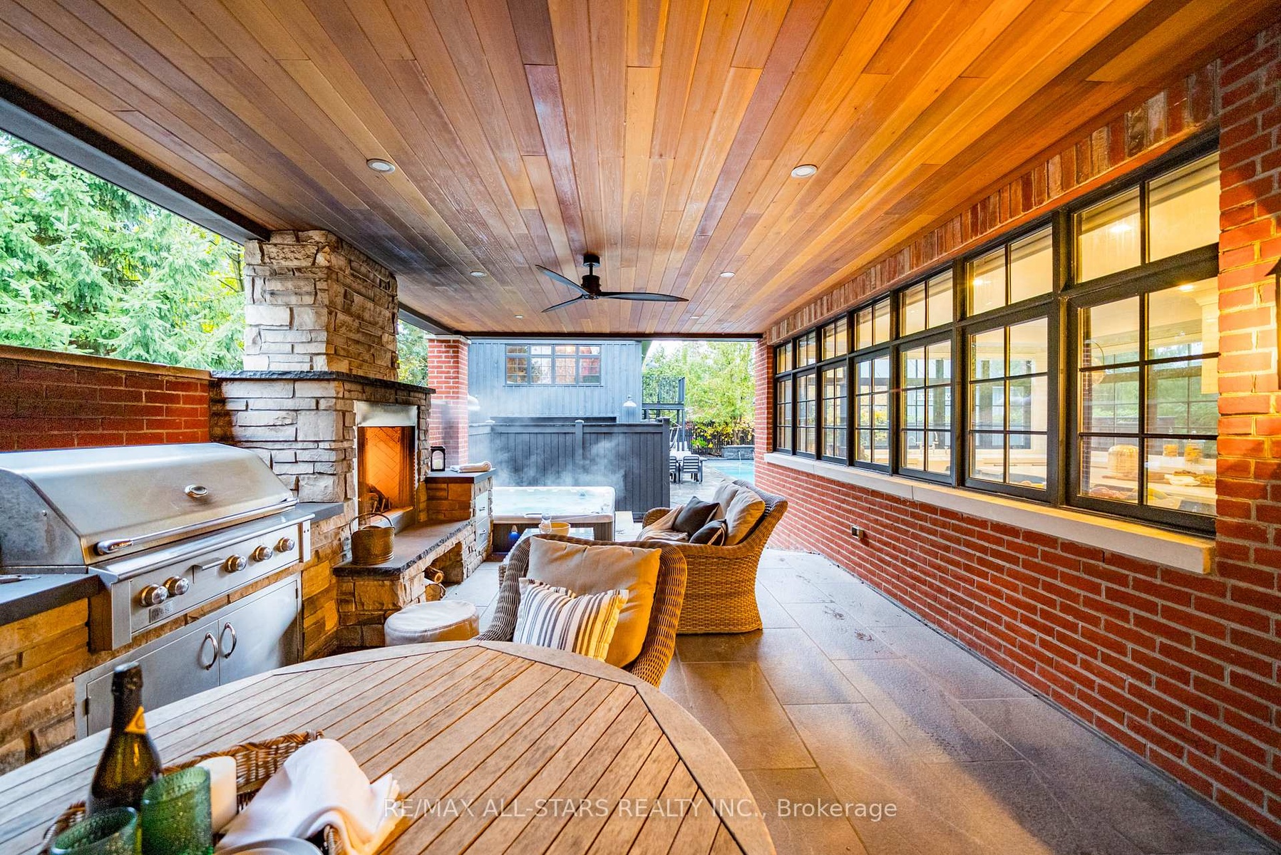 *Open House Sat & Sun Nov 15&16 2-4pm*Completely renovated & expanded w/ a 2-storey (plus basement) addition in 2016 + 2 storey, 2 car garage, pool, hot tub + more. All new roof, electrical, insulation, plumbing, furnace, AC-everything! This home blends timeless character with luxurious contemporary design, offering a lifestyle that's both sophisticated & inviting. Outdoor spaces are just as impressive w/ in-ground saltwater pool (2021) w/ 2 shallow ends, water + fire features and Muskoka granite patio w/ landscape lighting & built-in sprinkler system as well as two private terraces. Inside, wide-plank herringbone oak floors, plaster crown molding, & a stone wood-burning fireplace create warmth and elegance. French doors open to a covered terrace w/ heated floors, a gas fireplace, built-in BBQ, & hot tub - a true four-season retreat.The spacious eat-in kitchen is the heart of the home, featuring a 10-foot island with double-sided storage, Thermador & Bosch appliances, a handcrafted Shaws sink, and brass accents. Wall-to-wall windows overlook the backyard & covered terrace. A built-in banquette nook offers a cozy space for everyday living. The custom mudroom & laundry area incl. cabinetry & bench seating, while the chic powder room shines with Perrin & Rowe fixtures & a hammered nickel sink.Upstairs, the primary suite feels like a boutique hotel w/ a walk-through wardrobe, double vanity, deep soaker tub & oversized rainfall shower. Two additional bedrooms feature custom closets and elegant lighting. The second-floor terrace offers a private place to unwind.The finished basement includes heated floors, large windows, & a wet bar - perfect for movie nights or entertaining. There is even a laundry chute! A rare bonus - the detached, heated two-storey garage (2020) with loft, pine floors, large window, bathroom rough-in, & full-height basement - ideal for a studio, home office, or guest suite. Too many features to list - see attached feature sheet & watch virtual tour!