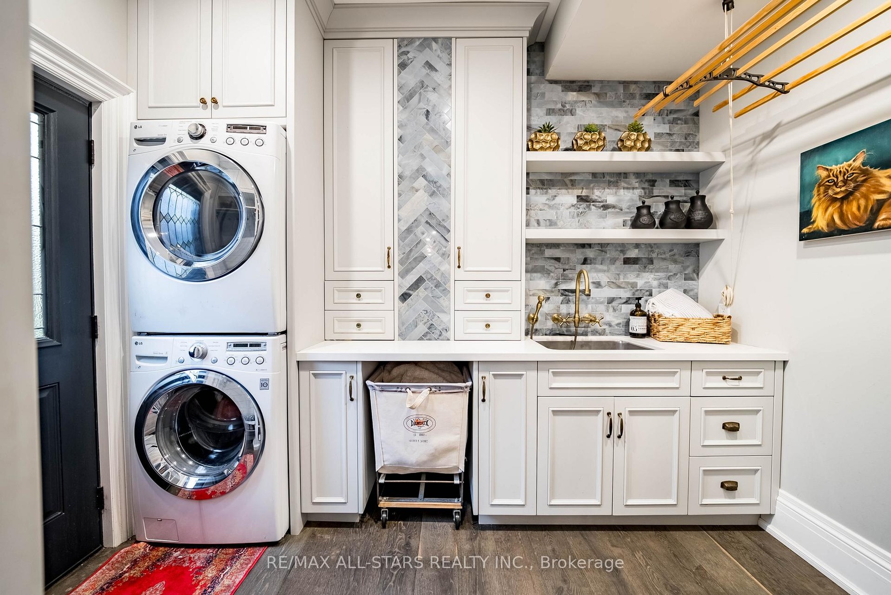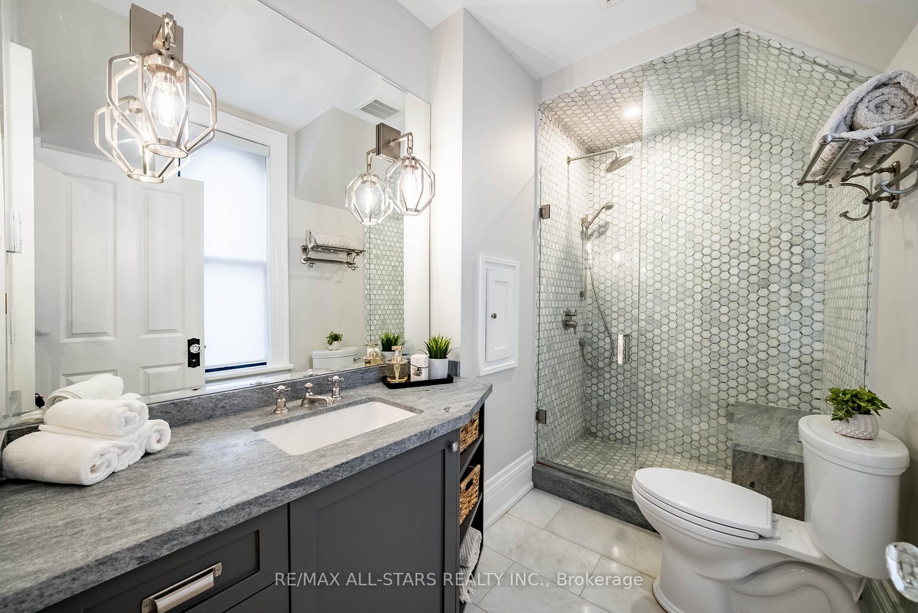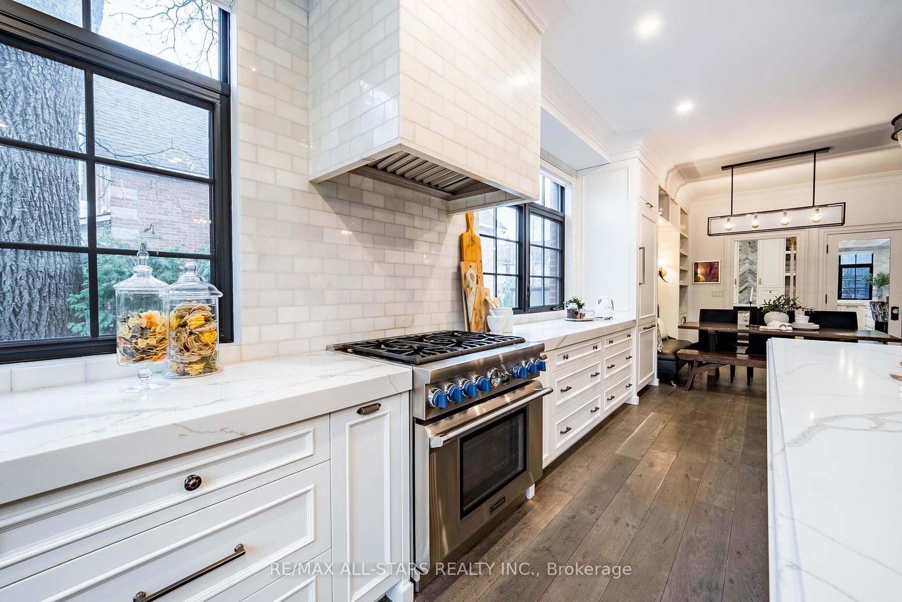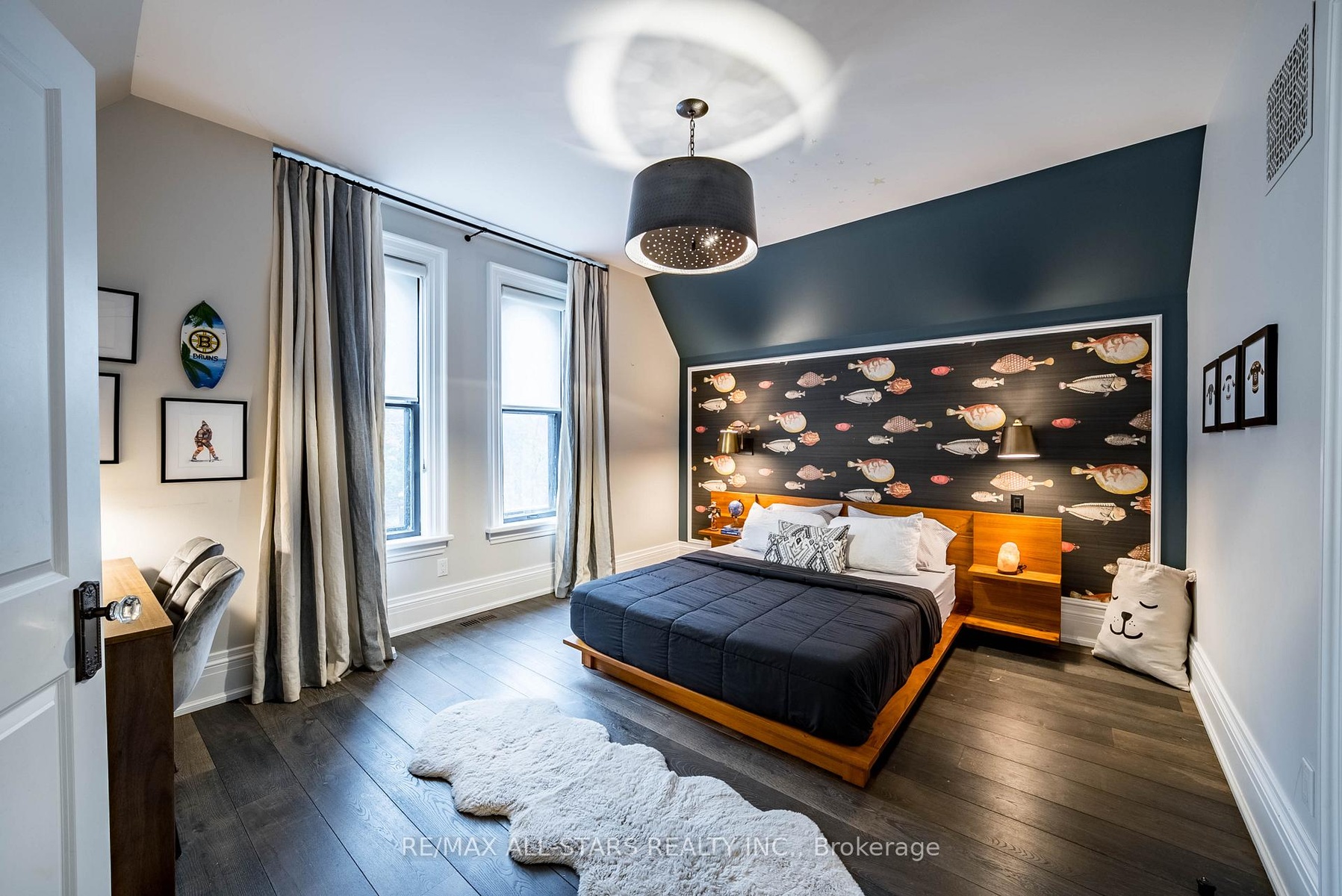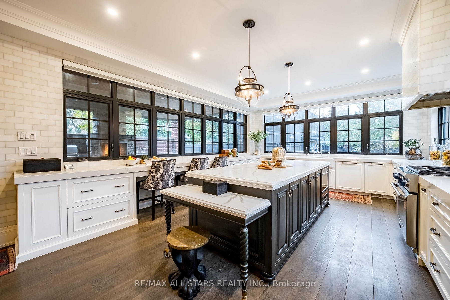 *Open House Sat & Sun Nov 15&16 2-4pm*Completely renovated & expanded w/ a 2-storey (plus basement) addition in 2016 + 2 storey, 2 car garage, pool, hot tub + more. All new roof, electrical, insulation, plumbing, furnace, AC-everything! This home blends timeless character with luxurious contemporary design, offering a lifestyle that's both sophisticated & inviting. Outdoor spaces are just as impressive w/ in-ground saltwater pool (2021) w/ 2 shallow ends, water + fire features and Muskoka granite patio w/ landscape lighting & built-in sprinkler system as well as two private terraces. Inside, wide-plank herringbone oak floors, plaster crown molding, & a stone wood-burning fireplace create warmth and elegance. French doors open to a covered terrace w/ heated floors, a gas fireplace, built-in BBQ, & hot tub - a true four-season retreat.The spacious eat-in kitchen is the heart of the home, featuring a 10-foot island with double-sided storage, Thermador & Bosch appliances, a handcrafted Shaws sink, and brass accents. Wall-to-wall windows overlook the backyard & covered terrace. A built-in banquette nook offers a cozy space for everyday living. The custom mudroom & laundry area incl. cabinetry & bench seating, while the chic powder room shines with Perrin & Rowe fixtures & a hammered nickel sink.Upstairs, the primary suite feels like a boutique hotel w/ a walk-through wardrobe, double vanity, deep soaker tub & oversized rainfall shower. Two additional bedrooms feature custom closets and elegant lighting. The second-floor terrace offers a private place to unwind.The finished basement includes heated floors, large windows, & a wet bar - perfect for movie nights or entertaining. There is even a laundry chute! A rare bonus - the detached, heated two-storey garage (2020) with loft, pine floors, large window, bathroom rough-in, & full-height basement - ideal for a studio, home office, or guest suite. Too many features to list - see attached feature sheet & watch virtual tour!